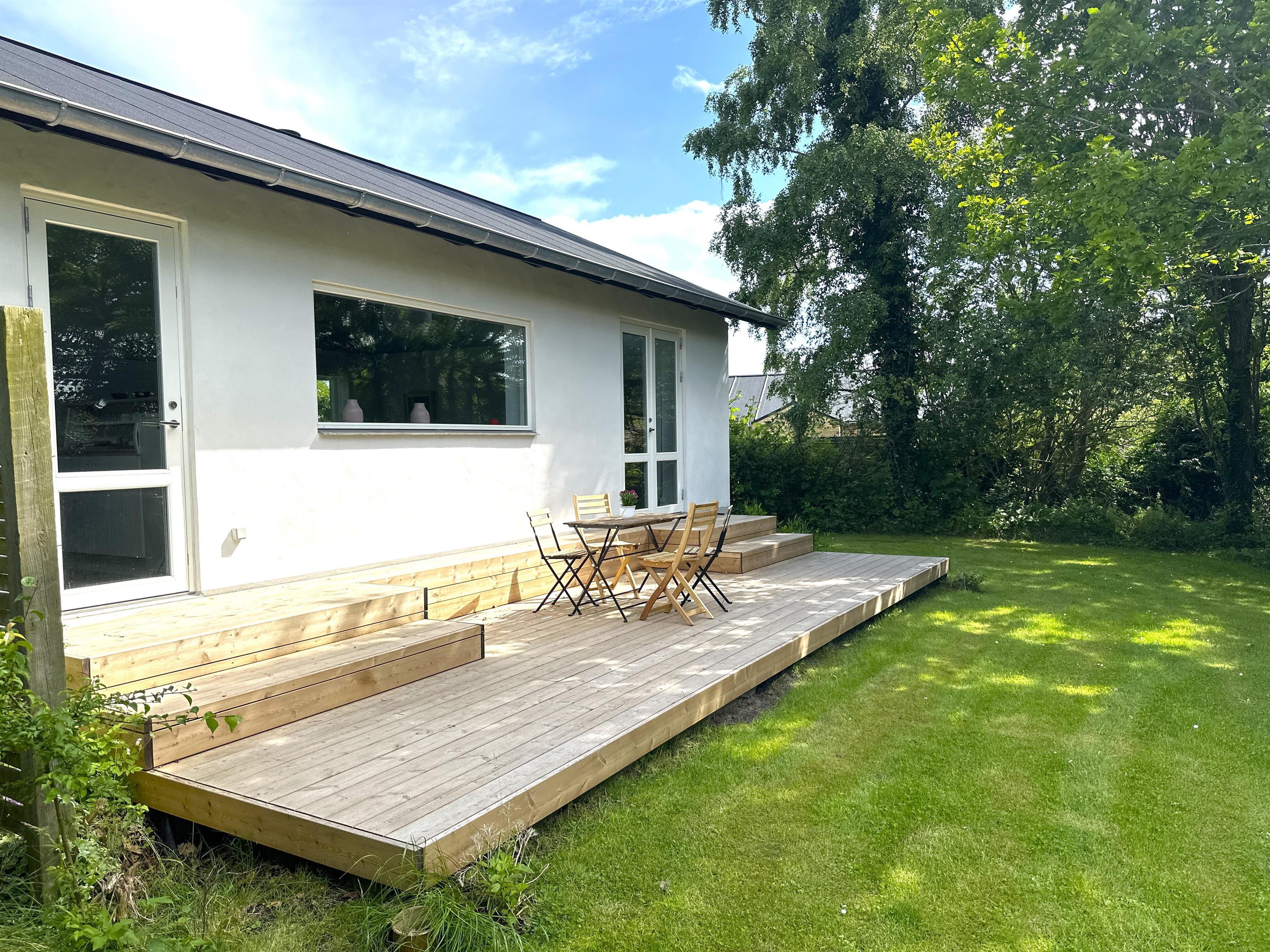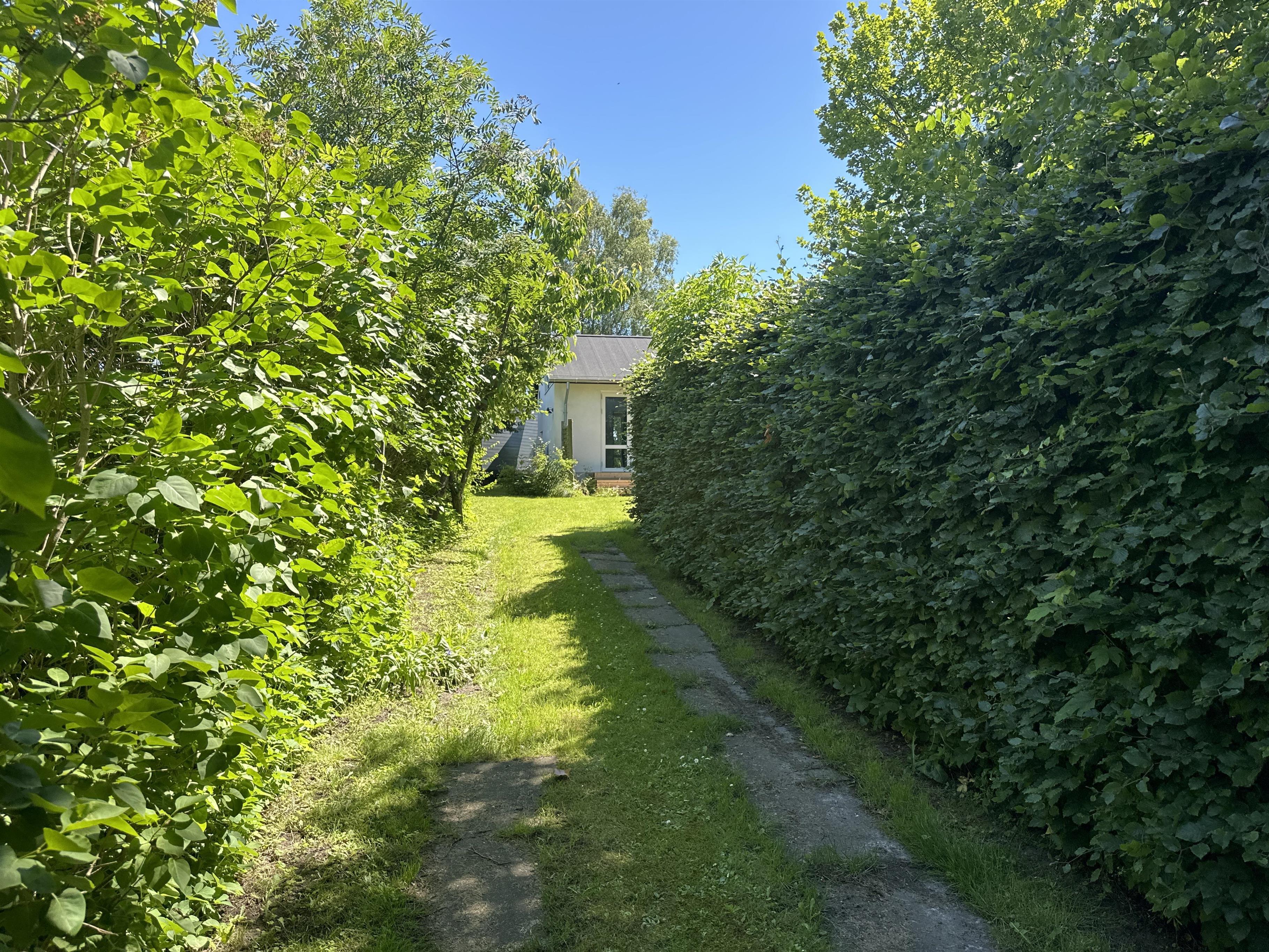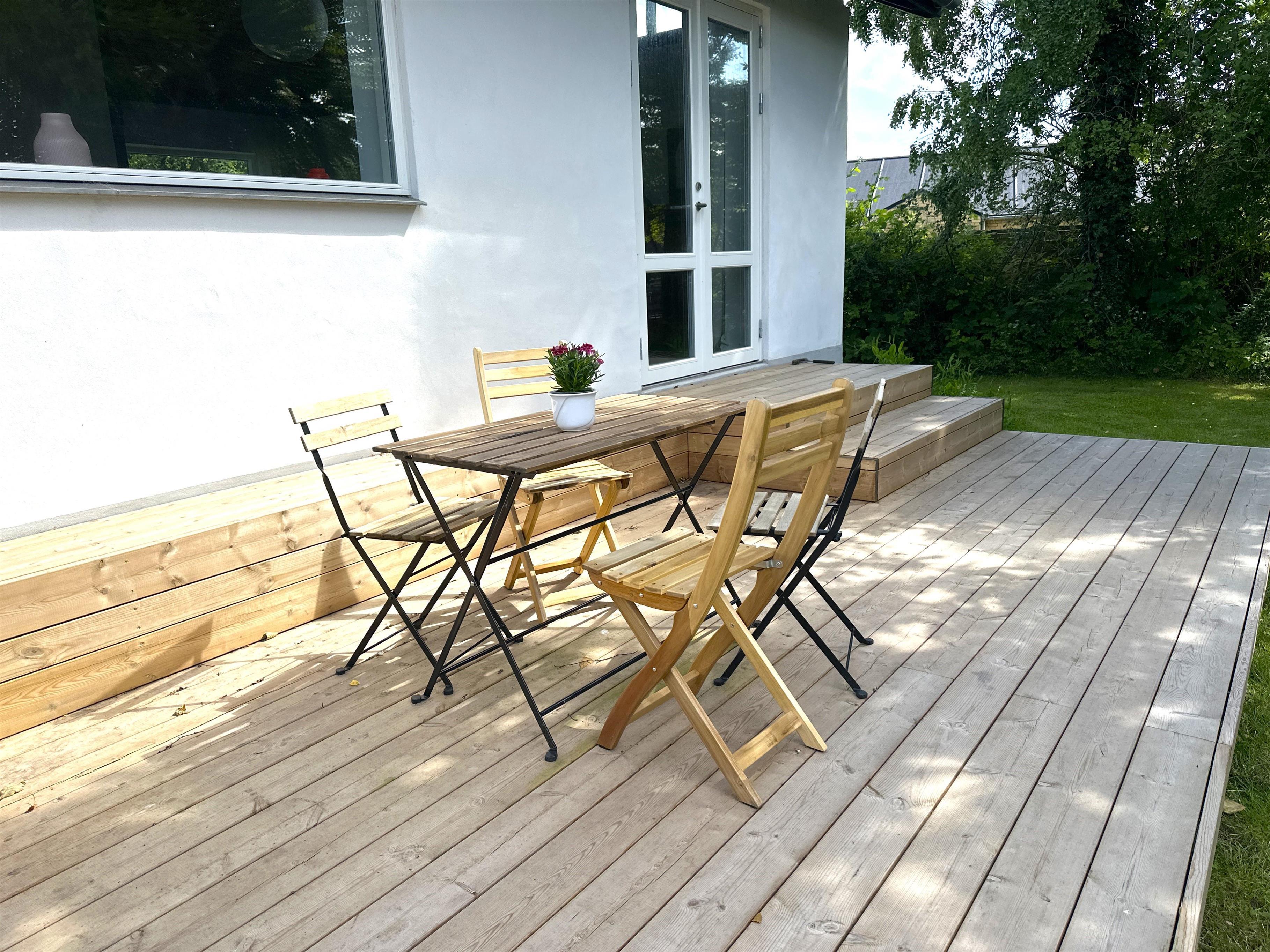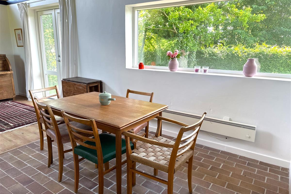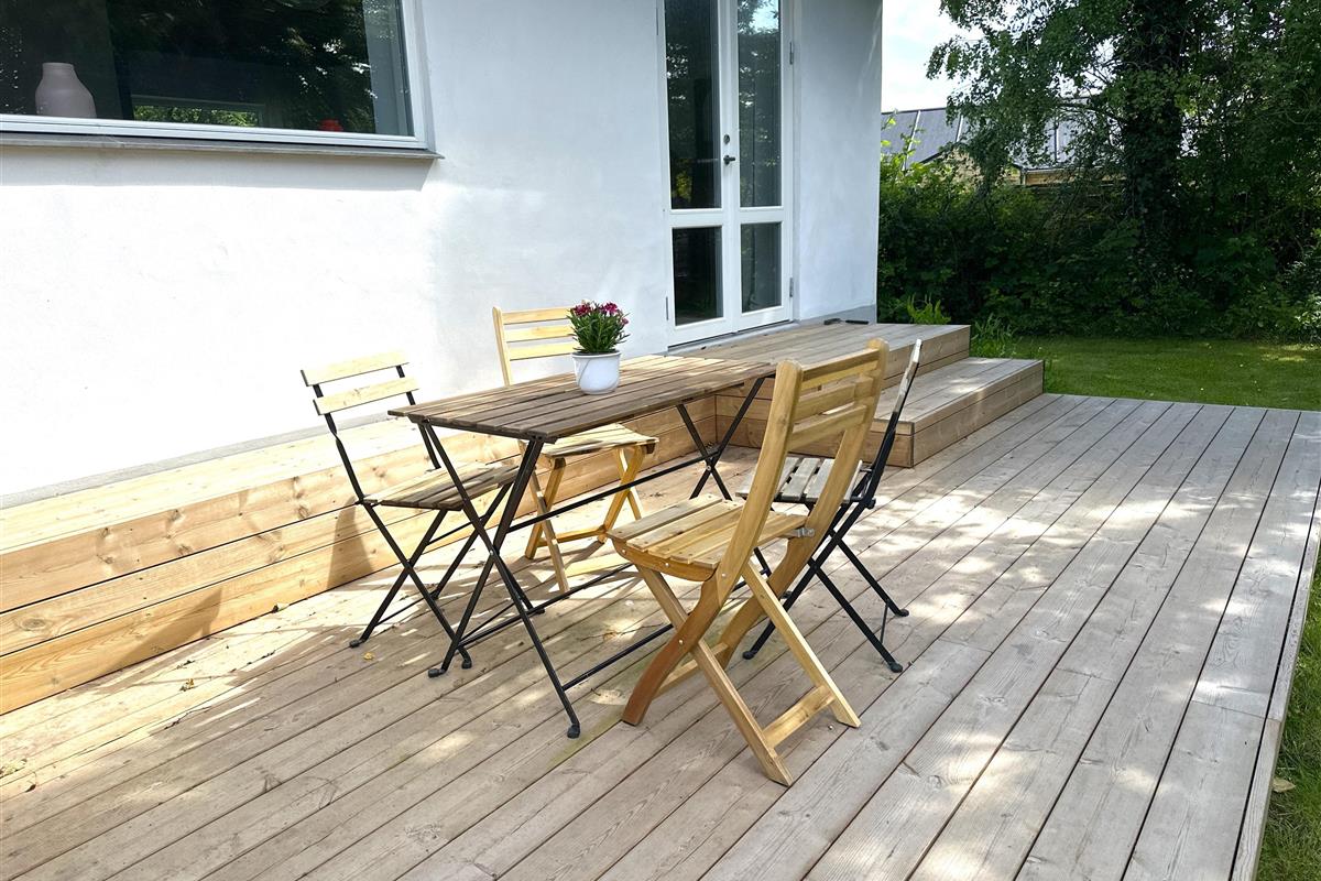 From the kitchen, there is direct access to the terrace, where you can enjoy the evening sun and the view of the secluded garden. There is plenty of space here for relaxation, barbecues and quiet moments in nature.