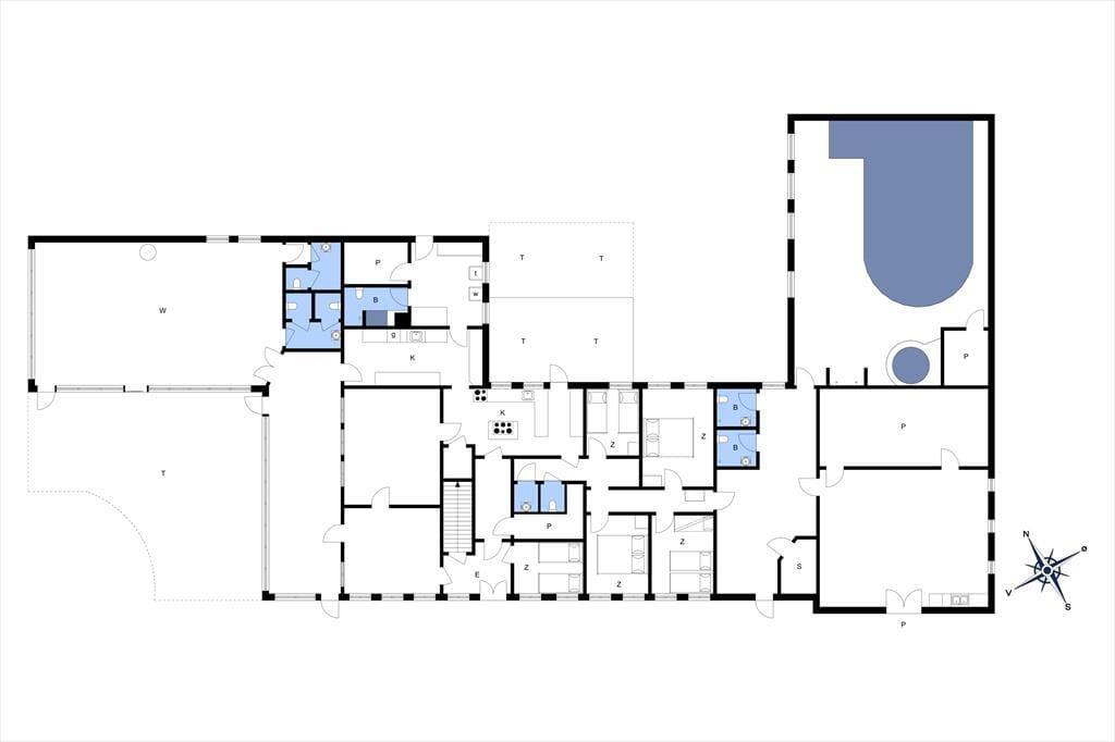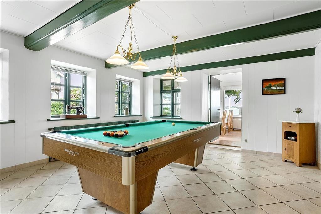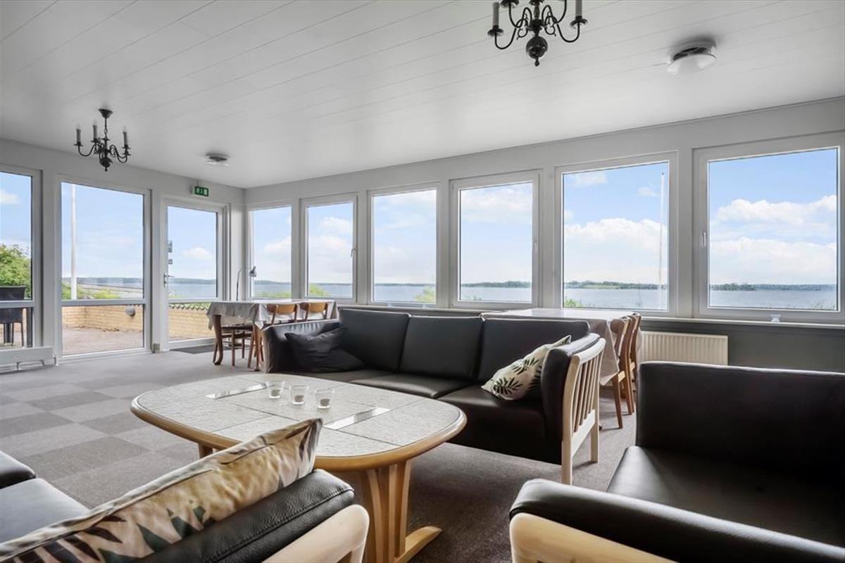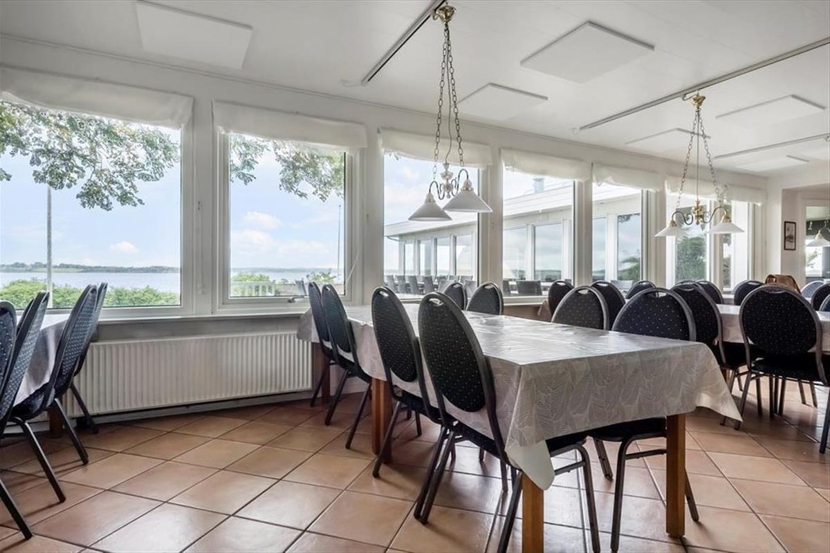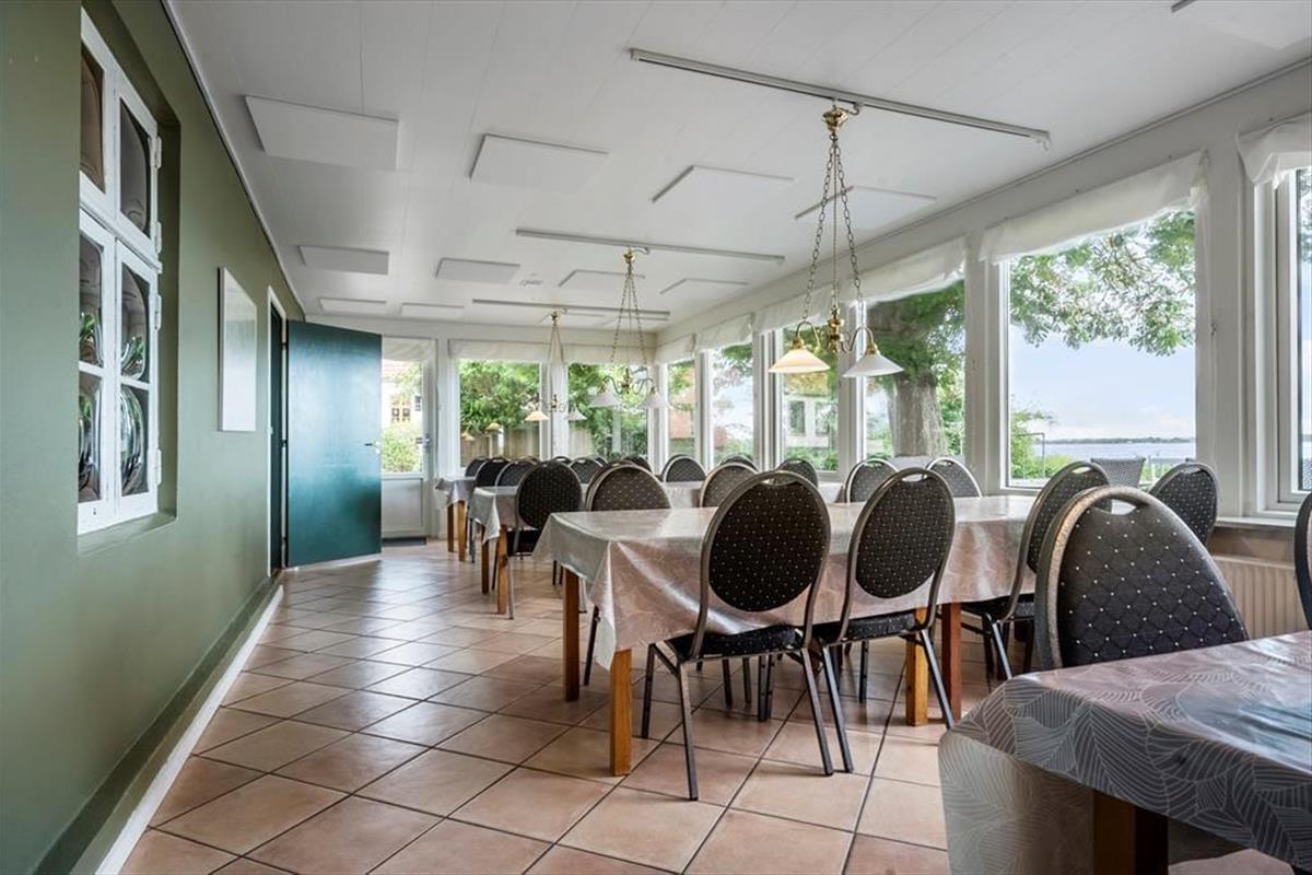 De vroegere Brunsnæs Kro, die werd gebouwd in 1777, werd omgebouwd tot een mooi vakantiehuis. Ondanks de complete renovering in 2004 en in 2020 is toch de gezellige Kro-sfeer bewaard gebleven. Het huis (2 verdiepingen) heeft op de begane grond een heerlijk zwembad (40 m2) met stroomversnelling, een grote whirlpool, douche en toegang tot de sauna. Verder vind je hier een grote en gezellige woonkamer met zithoek, TV, houtkachel en prachtig uitzicht op het water. Vanuit de woonkamer loop je zo de aparte eetkamer in, hier is plek voor 32 personen en ook hier zijn grote raampartijen zodat je kan blijven genieten van dit geweldige uitzicht. In de functionele industriekeuken heb je genoeg plek om een heerlijke maaltijd klaar te maken. Er is een koelruimte (ca. 5 m2) aanwezig in de keuken.