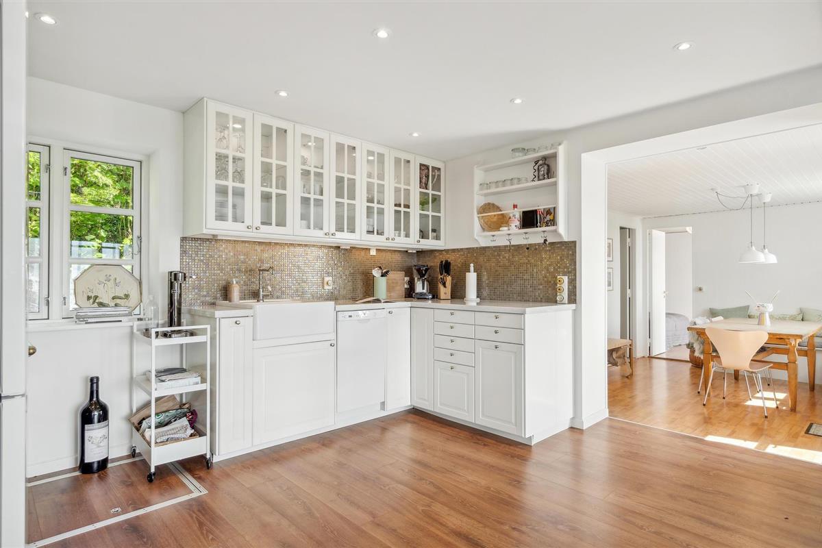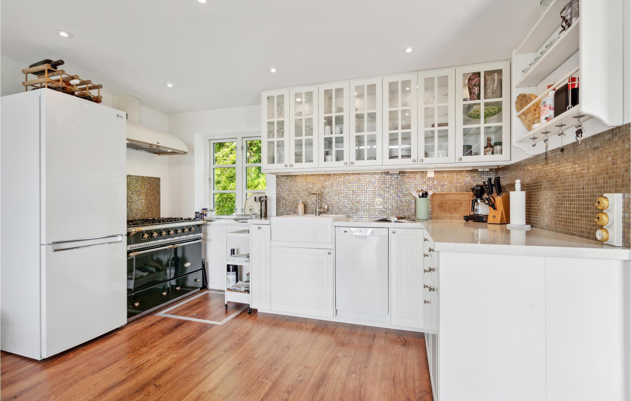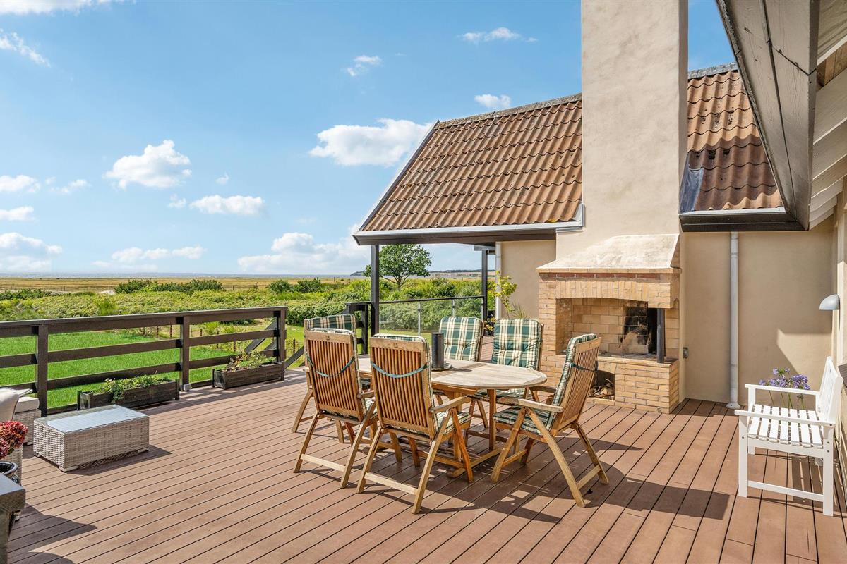 Op een charmante locatie aan het strand van Brydegård verwelkomt dit mooie vakantiehuis je. Binnen vind je een hoogwaardig interieur dat een smaakvolle indruk maakt en je uitnodigt om je thuis te voelen. Breng gezellige uren door met je geliefden in de lichte, rustieke sfeer van de woonkamer, die uitkomt op het terras. Of je nu comfortabel voor de open haard zit of ontspant op het terras, je kunt genieten van het fantastische uitzicht. Kom op zwoele zomeravonden samen rond de tuintafel voor heerlijke maaltijden en ervaar de geweldige zonsondergangen.