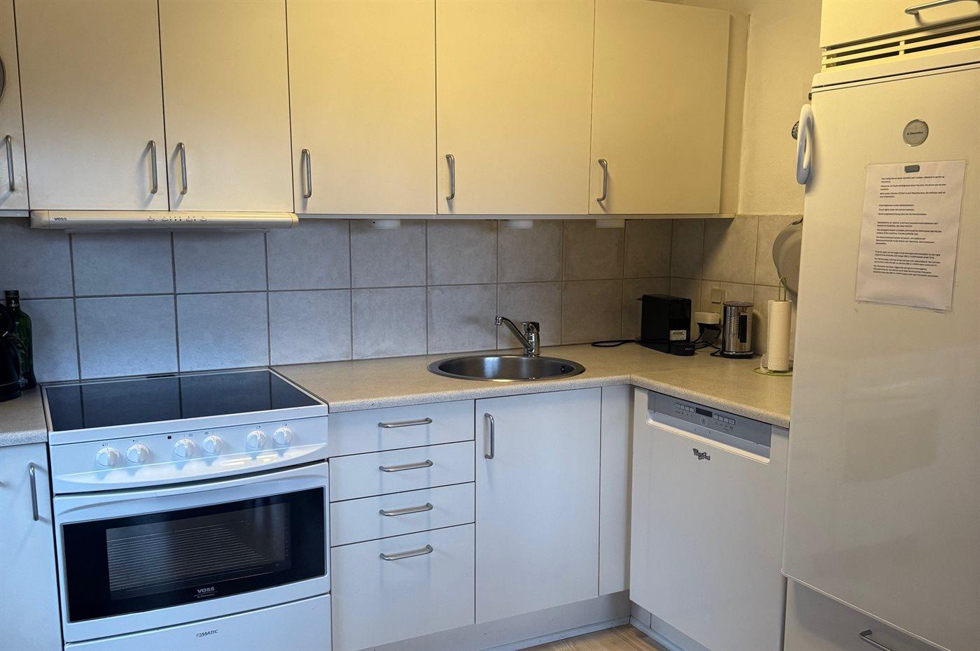 De keuken is uitgerust met koelkast Er zijn 4 keramische kookplaten, heteluchtoven en vaatwasser.