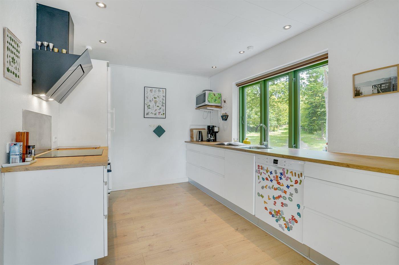 De keuken is uitgerust met koelkast Er is 4 inductiekookplaten, heteluchtoven, magnetron en vaatwasser.