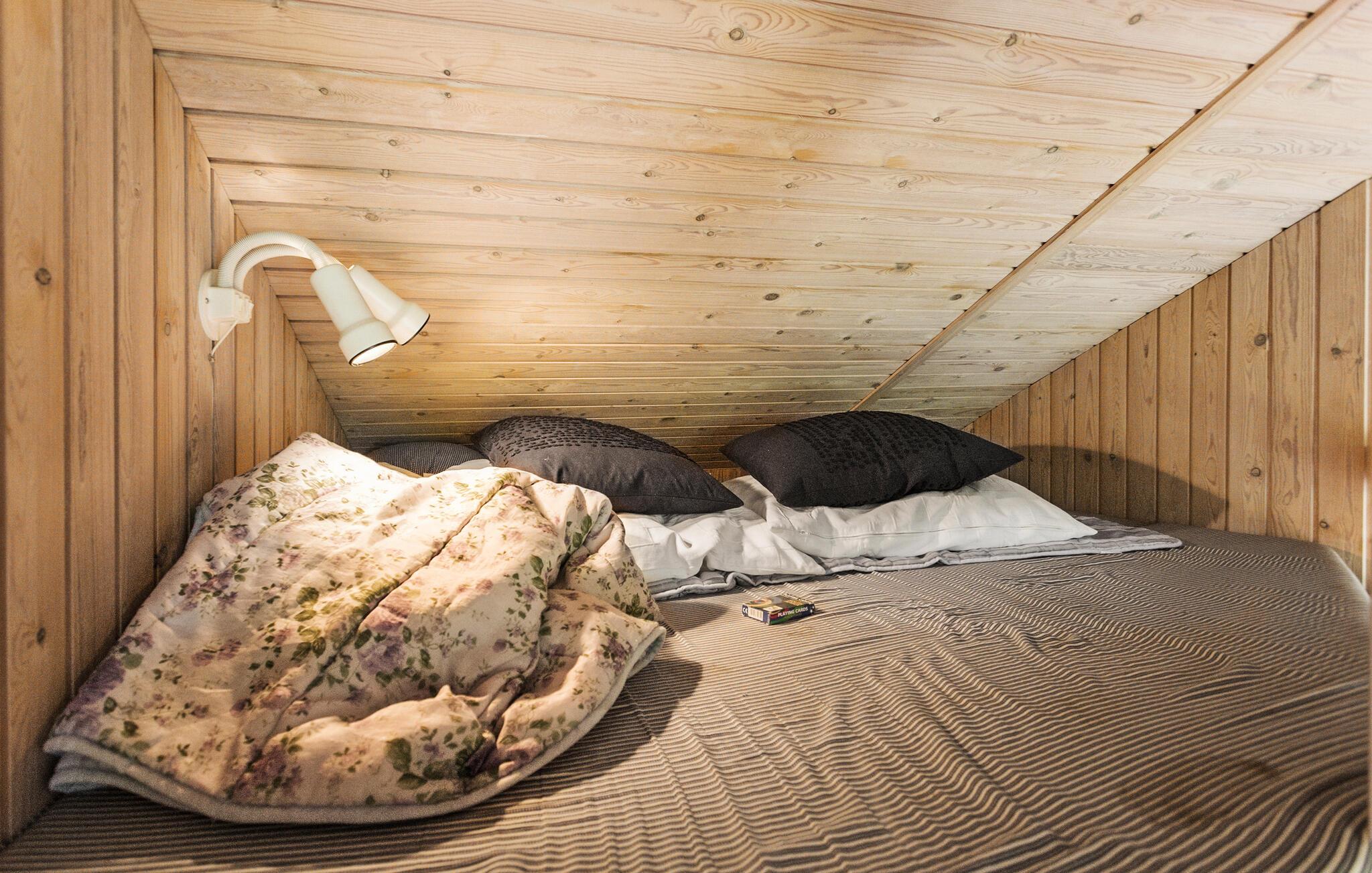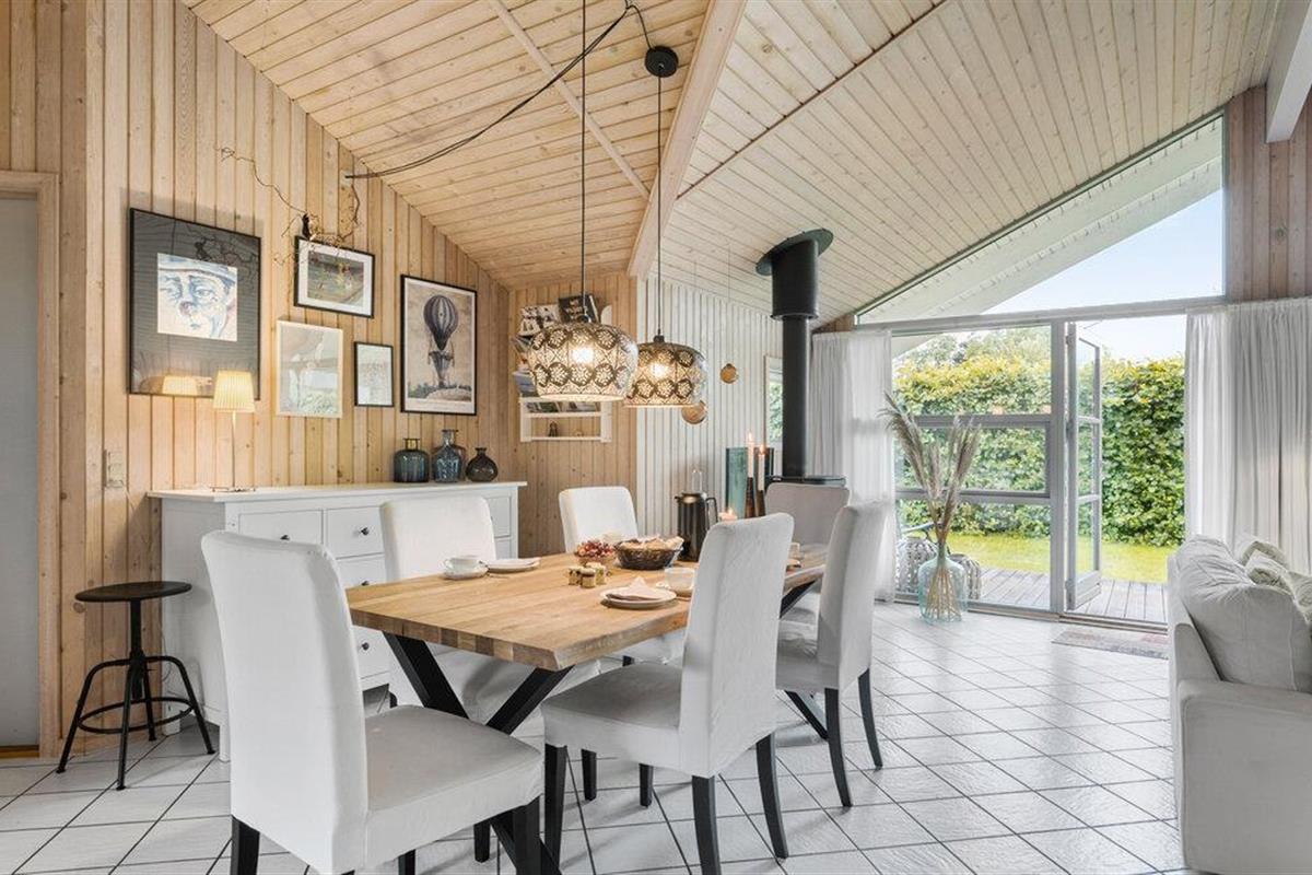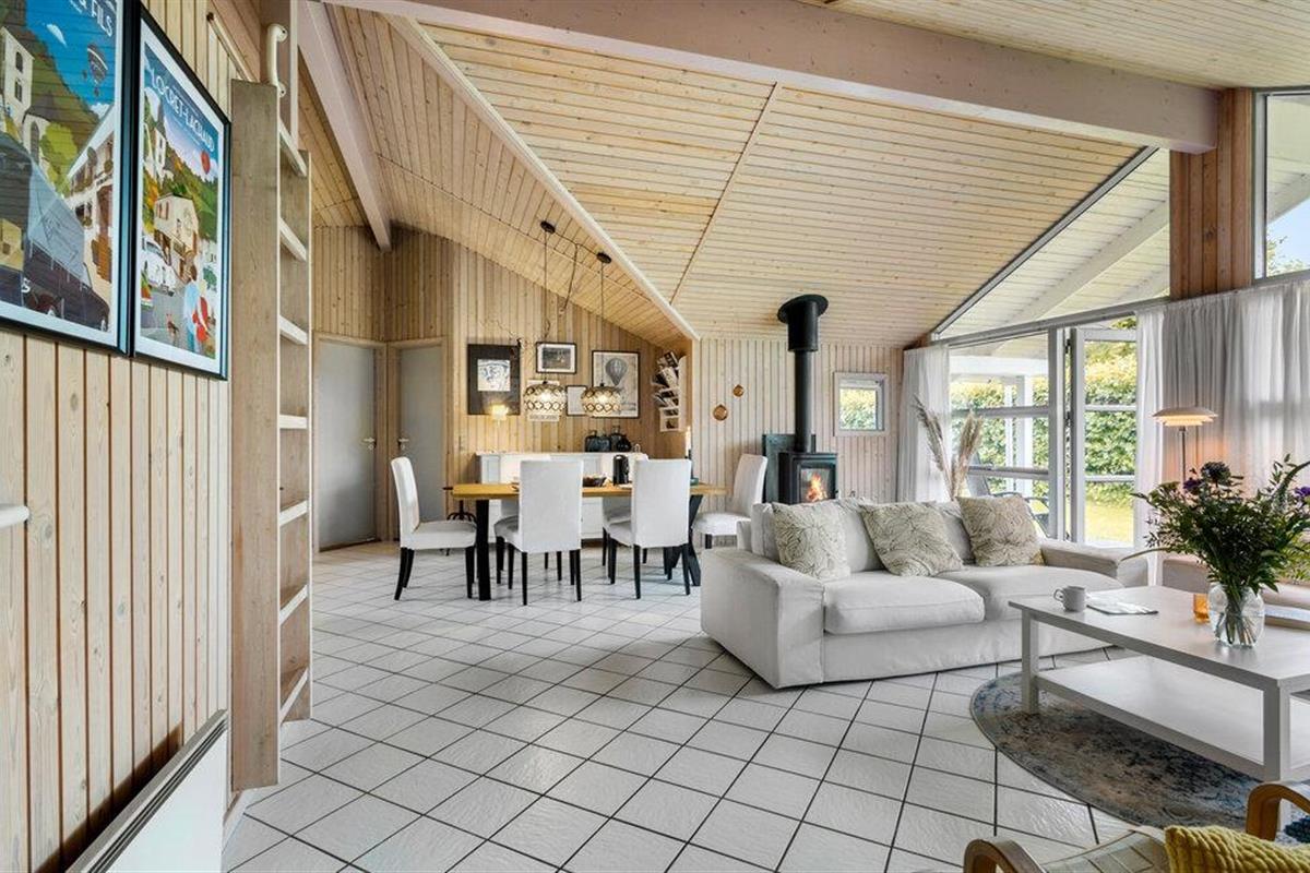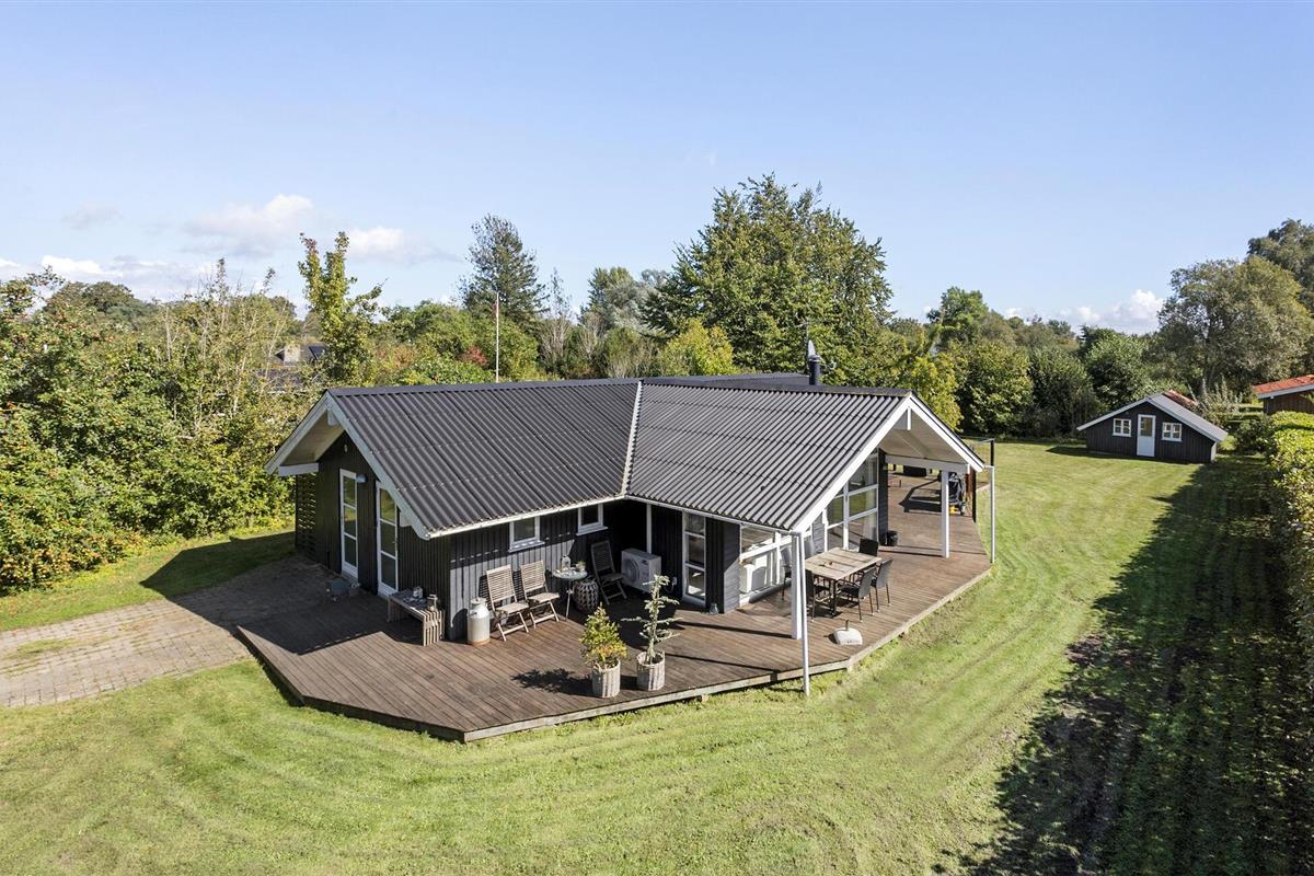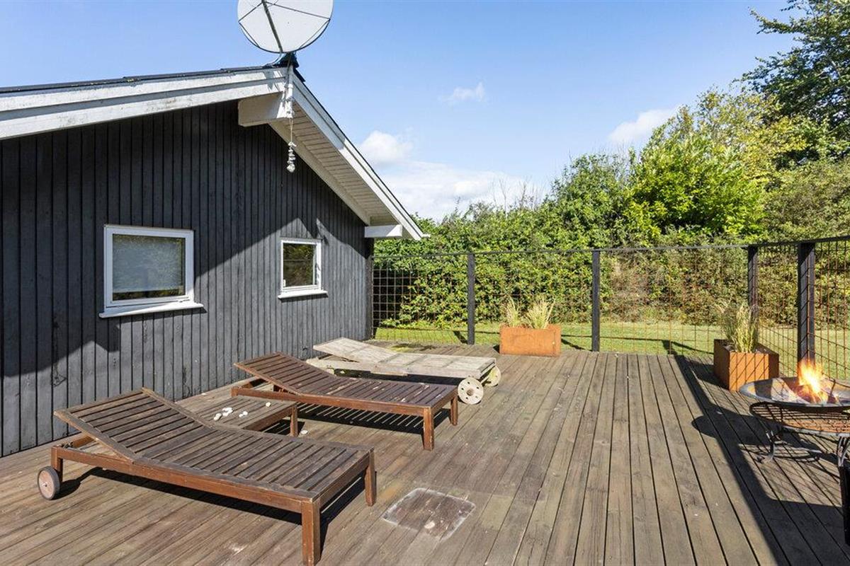 In het vakantiehuisgebied Bukkemose aan de oostkust van Langeland, in een schilderachtige omgeving, vindt u dit mooie, houten vakantiehuis, slechts 1,5 km van het clubhuis van Langelands Golfbane en 1 km van het put en take meer. Er zijn betegelde vloeren met losse tapijten in het hele huis. Twee van de acht bedden staan in de alkoof in de entreehal. U kunt vanaf de oever echt goed zwemmen en vissen. Grote, mooie open terrassen en een overdekt houten terras waar u van de zon kunt genieten. Op natte dagen kunt u beschutting vinden onder het kleinere overdekte terras. In het hoogseizoen is er een zwemsteiger aan de waterkant.