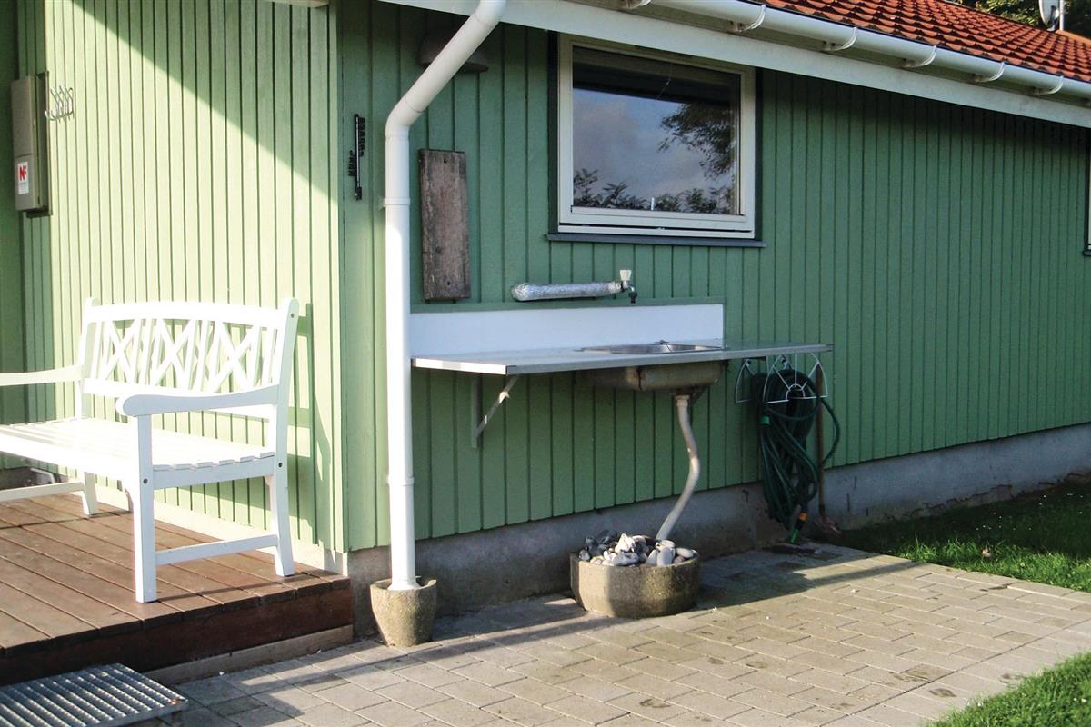 Dit mooie vakantiehuis ligt aan het einde van een doodlopende weg in het rustige vakantiehuizengebied Bukkemose aan de oostkust van Zuid-Langeland, op slechts 300 m van de zee. Het huis heeft een grote woonkamer met een houtkachel, een open keuken, een uitgang naar een overdekt houten terras en drie slaapkamers, badkamer en entree. De badkamer, keuken en entree hebben een stenen vloer en de rest van het huis is voorzien van vloerbedekking. Het vakantiehuis is ingericht met veel comfort, waaronder een spabad voor twee personen, een sauna en een goed uitgeruste keuken. Op het grote houten terras, dat een open en een overdekt deel heeft, is er bijna altijd de mogelijkheid om een plekje te vinden, of u nu zon, schaduw of bescherming tegen de wind wilt. Het huis ligt op een groot natuurperceel met veel speelruimte, naast grote velden, met uitzicht op het rijke dierenleven en de zee, zodat u de grote veerboten en containerschepen met uw ogen kunt volgen. Vanaf het huis is het slechts 300 m naar de zee Langelandsbæltet, 800 m naar het vismeer, 1,6 km naar Langelands Golfklub met 18 holes en 6,5 km naar Humble, waar goede winkelmogelijkheden zijn. Het gebied en het huis zijn ideaal voor vissers, zowel vanaf de kant als per boot kunnen zij hier hun hobby uitoefenen. Als u vanuit een boot vist, is er een aanlegsteiger in Bukkemose. Het huis heeft buiten een visschoonmaakplaats en een vriezer. Er zijn veel bezienswaardigheden op korte afstand, waarvan sommige gemakkelijk per fiets bereikbaar zijn, zoals Herregården Skovsgaard, Langelandsfortet, de wilde paarden en niet te vergeten alle prachtige natuur van Langeland. Of u nu een ontspannende of een actieve vakantie wilt, dit vakantiehuis is een zeer goede en sfeervolle uitvalsbasis.