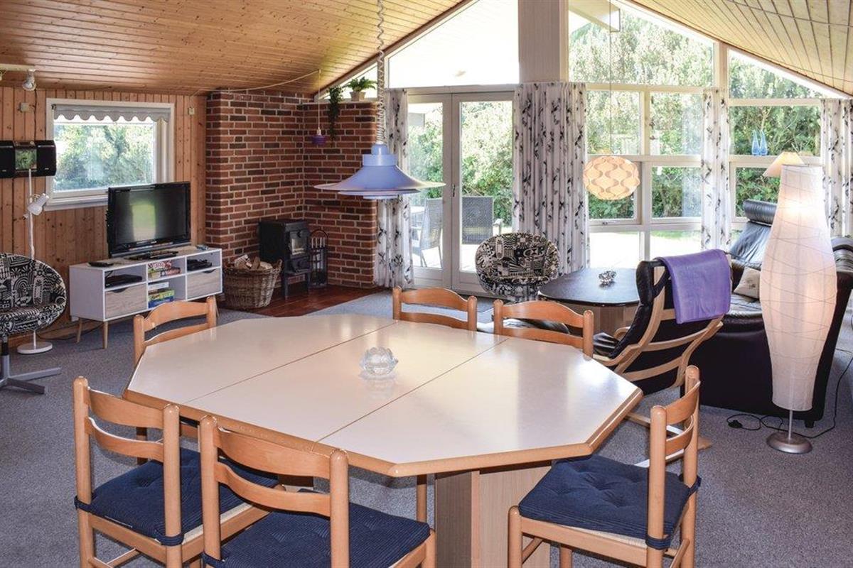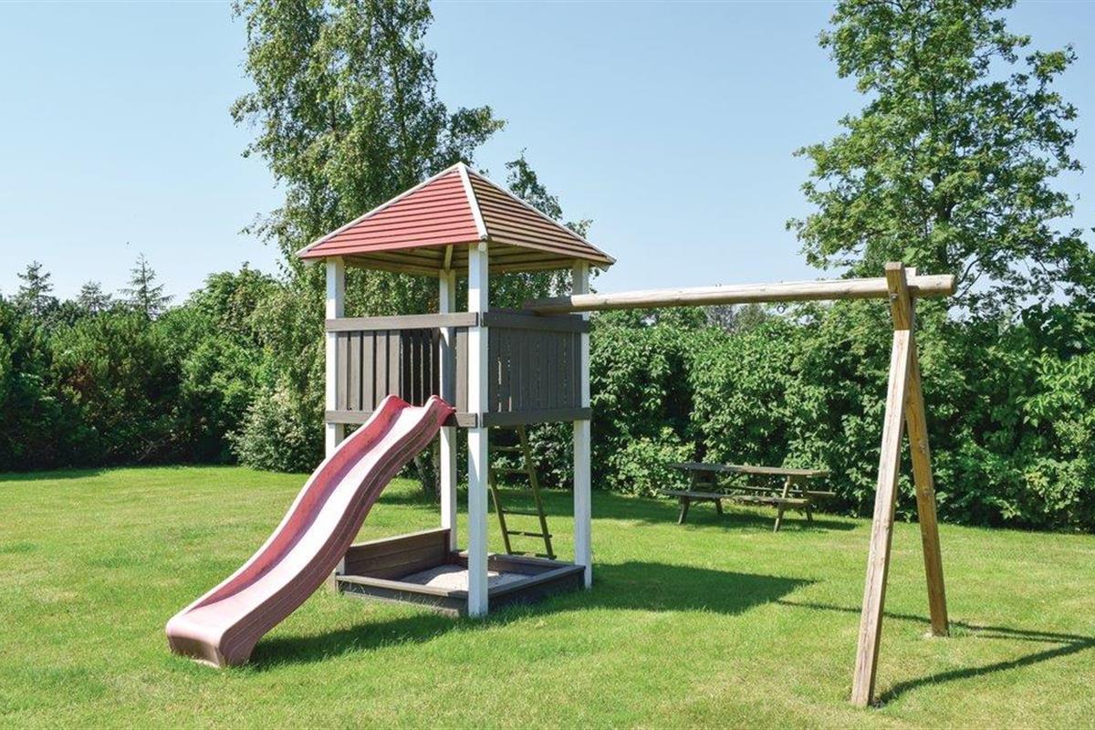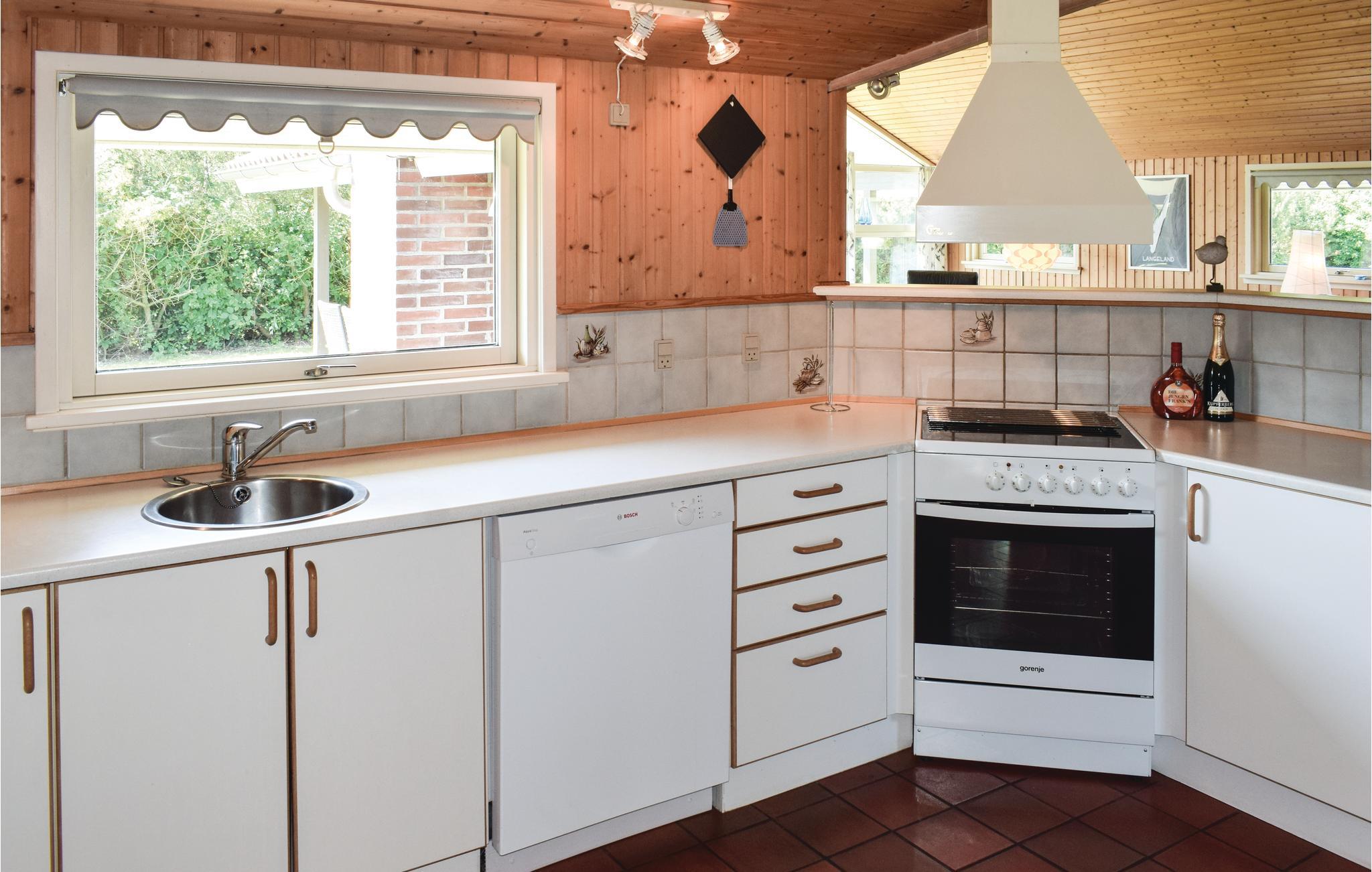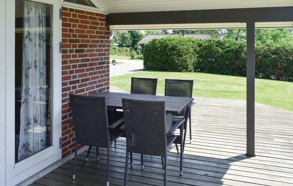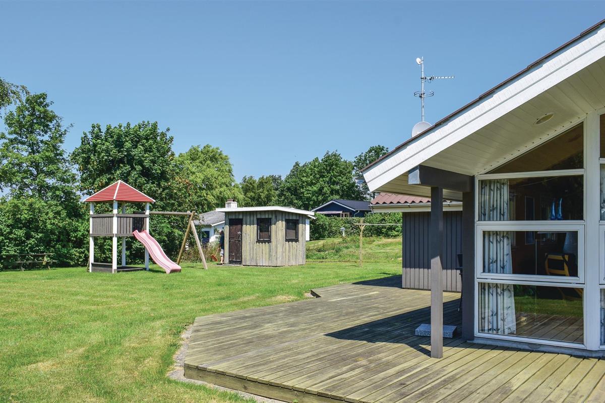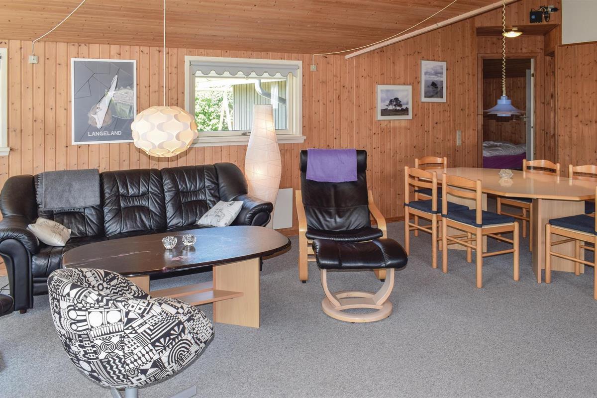 Dit mooie houten/stenen vakantiehuis ligt in het Bukkemose vakantiehuisgebied, op slechts 1,6 km van de 18-holes golfbaan van Langeland. Er zijn veel ervaringen te beleven in de natuurlijk mooie omgeving, waaronder zeer goede vismogelijkheden vanaf het strand voor sportvissers. Het huis heeft een buitenschoonmaakplaats voor vis en een vriezer (110 liter). Voor de kinderen is er een schommel, zandbak, klimtoren, kinderbed en stoel. De tapijten liggen vast. Het hele gezin kan vele gezellige uurtjes doorbrengen in de mooie badkamer met whirlpool.