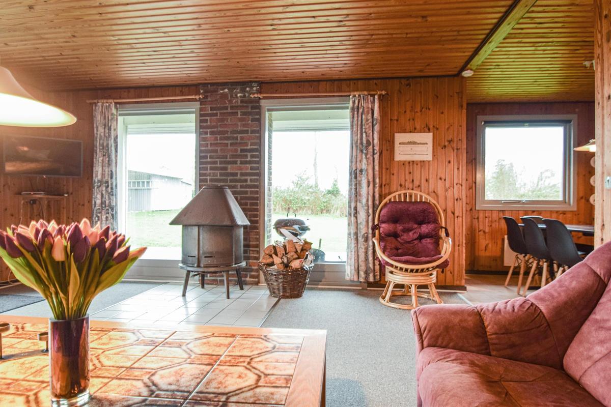 Traditioneel houten vakantiehuis op Langeland met houtkachel, overdekt terras en dichtbij zee en vismeer.