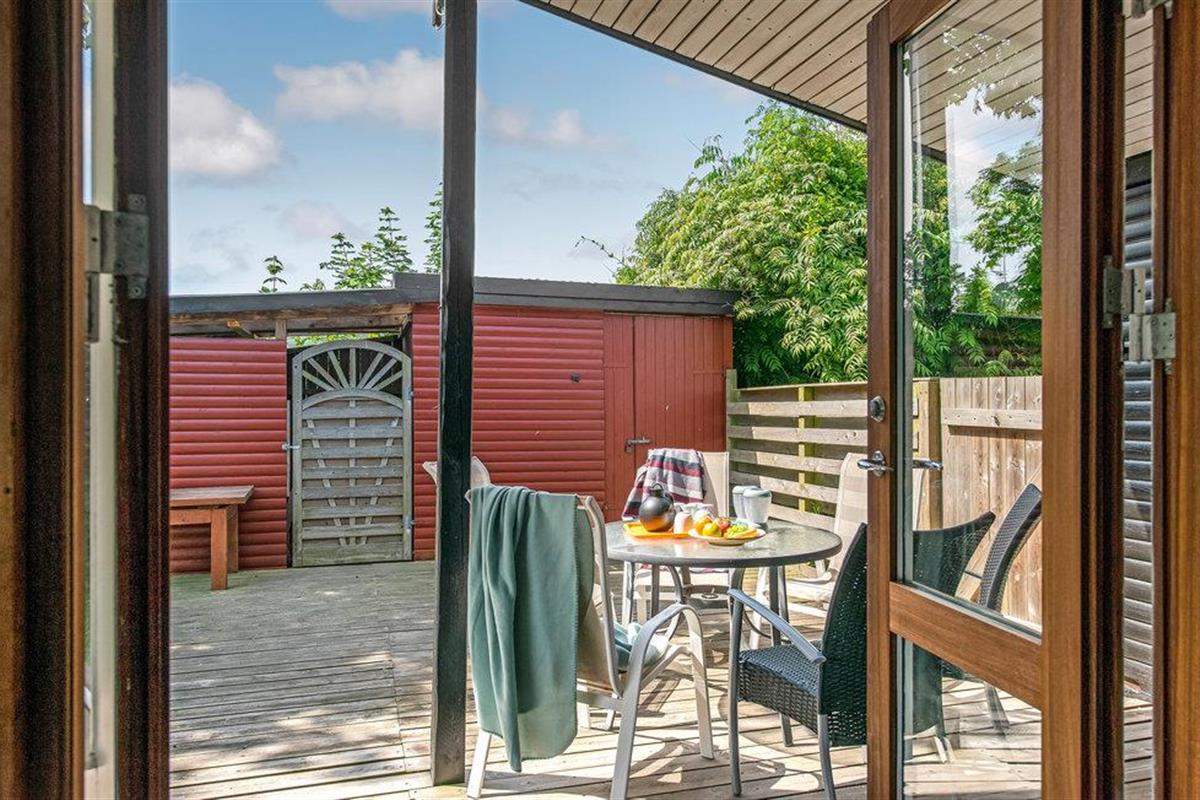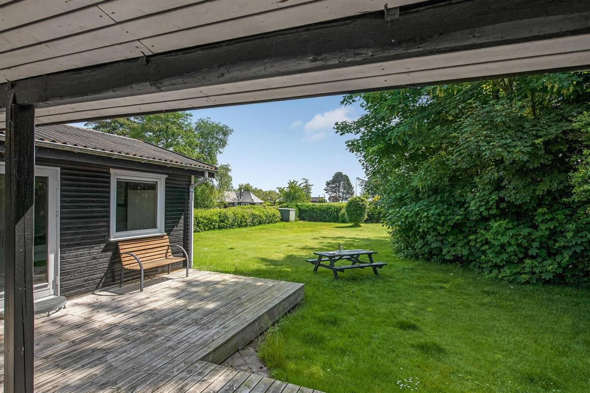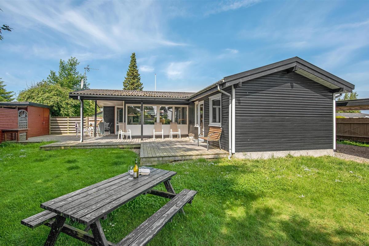 Gezellig houten vakantiehuis nabij zee en golfclub in Bukkemose, Langeland, ideaal voor een ontspannen en actieve vakantie.