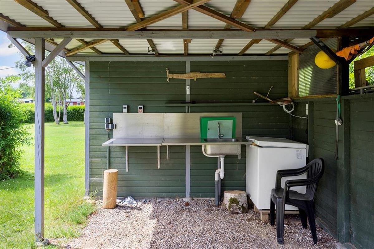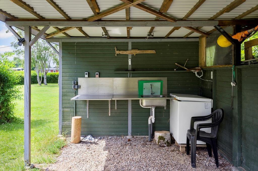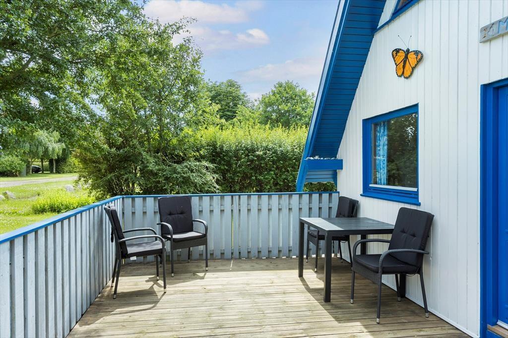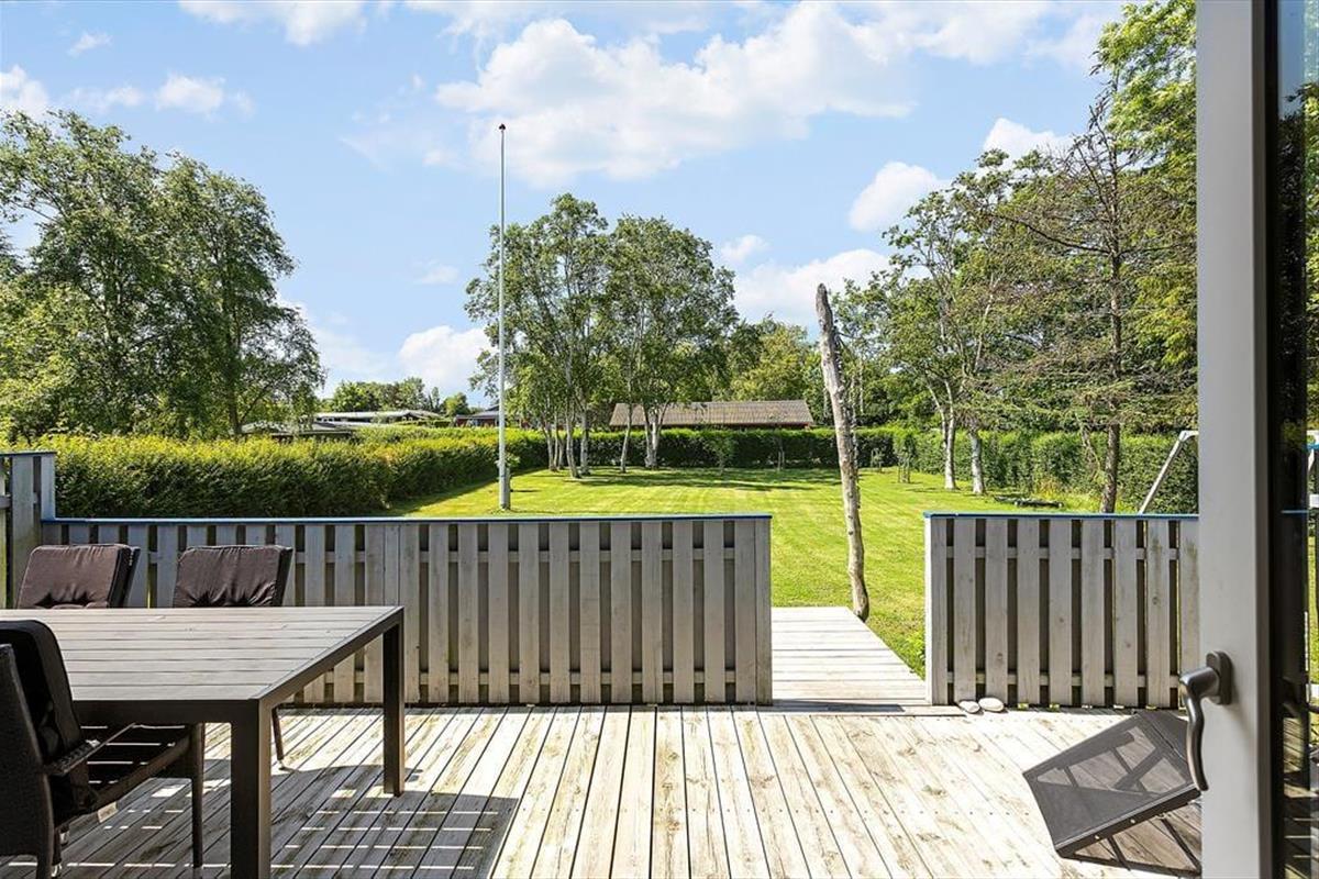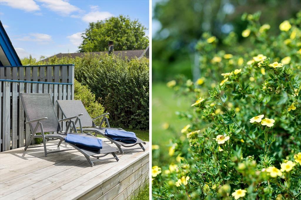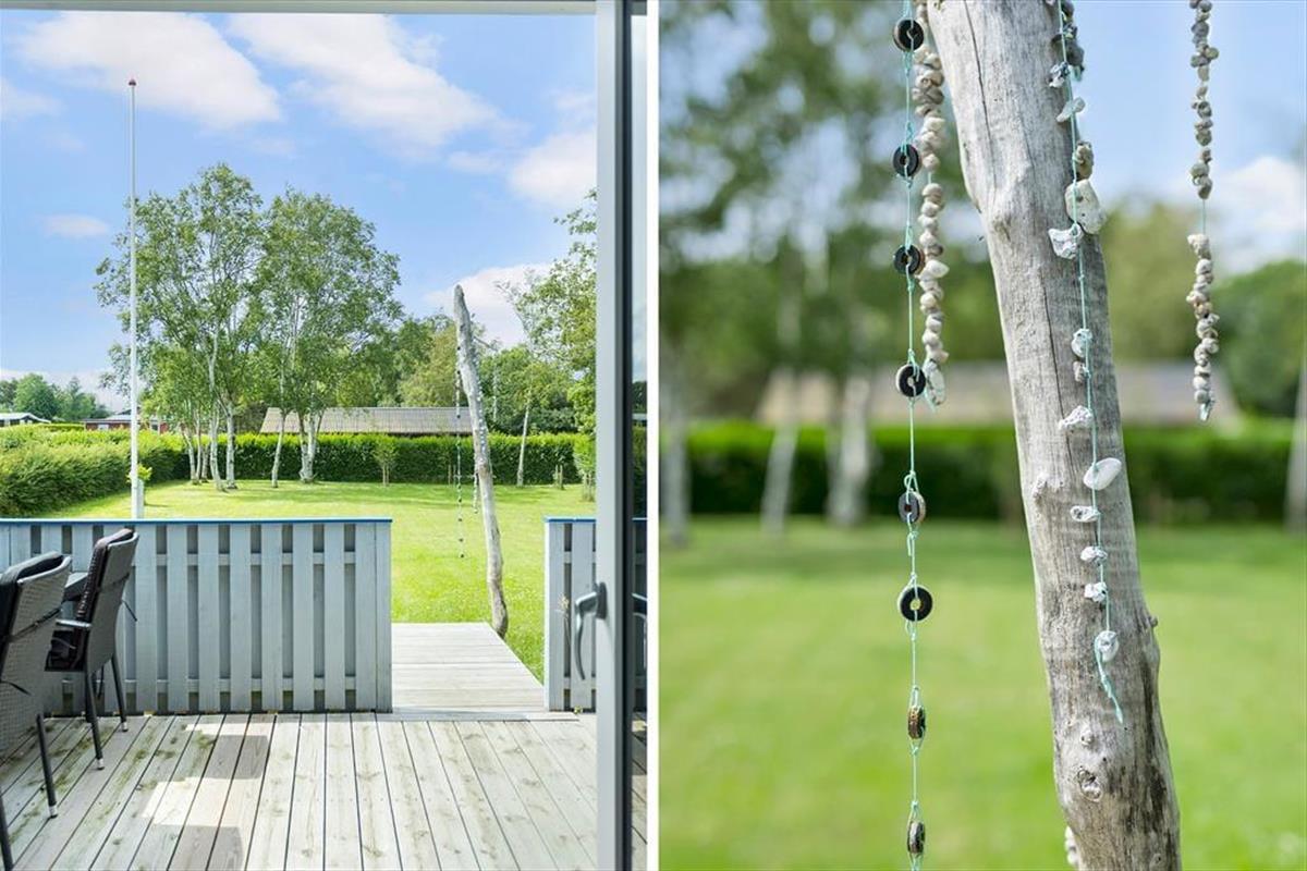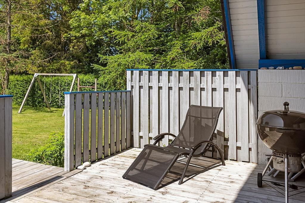 Draußen erwartet Sie ein großer, grüner Garten – ideal zum Entspannen oder Spielen. Kinder freuen sich über Schaukel und Sandkasten, während die Erwachsenen die Terrasse genießen können, sei es mit einem Buch in der Hand oder beim Grillabend an lauen Sommerabenden. Angler werden den überdachten Fischreinigungsplatz zu schätzen wissen, an dem der Fang des Tages vorbereitet werden kann, bevor er auf den Grill oder in den Gefrierschrank kommt. Hier erleben Sie das Ferienhausleben ganz nah an der Natur – mit Vogelgesang und dem Rauschen der Wellen im Hintergrund.