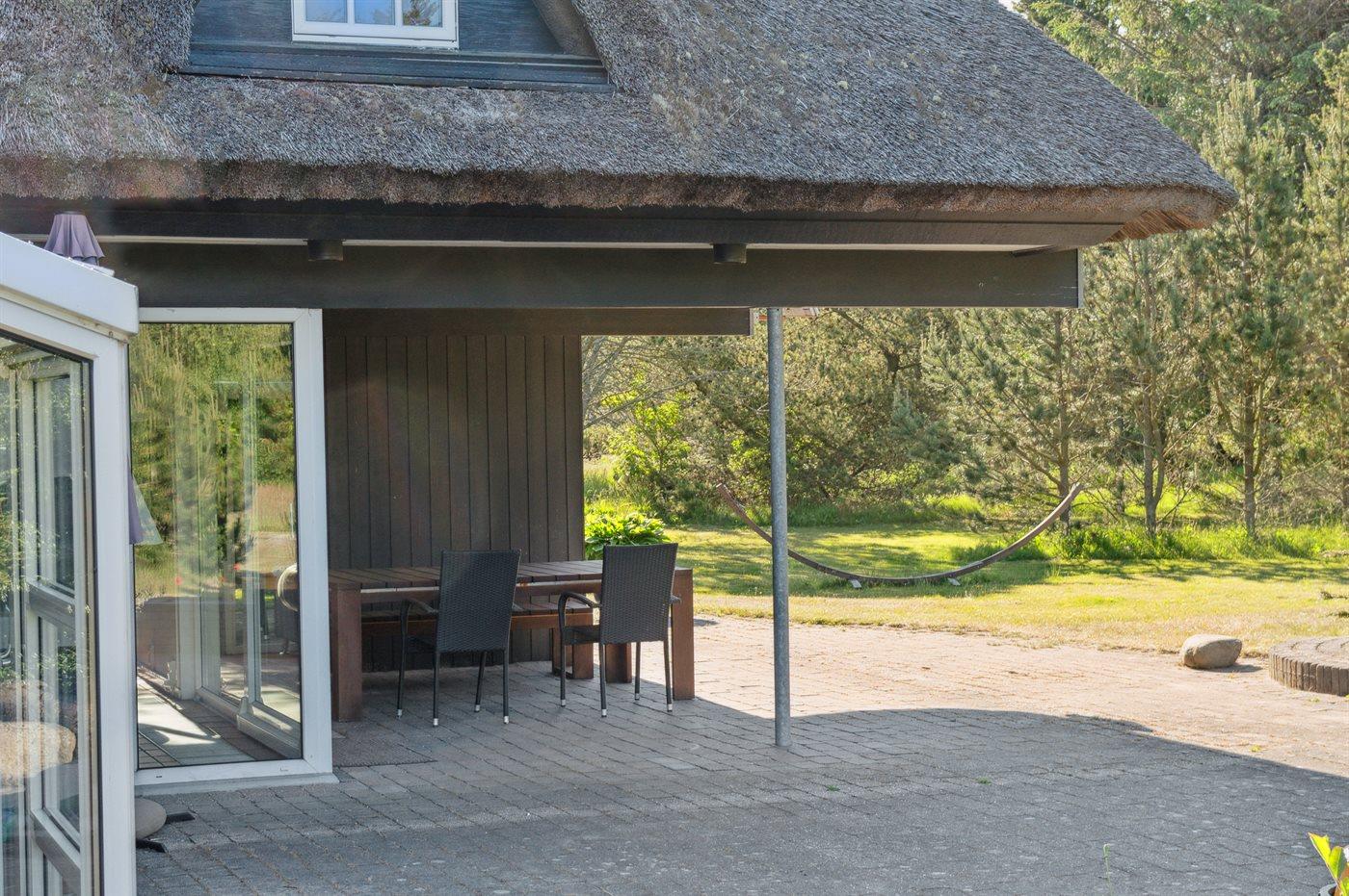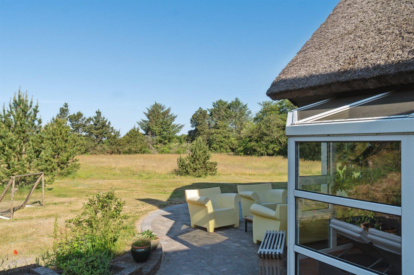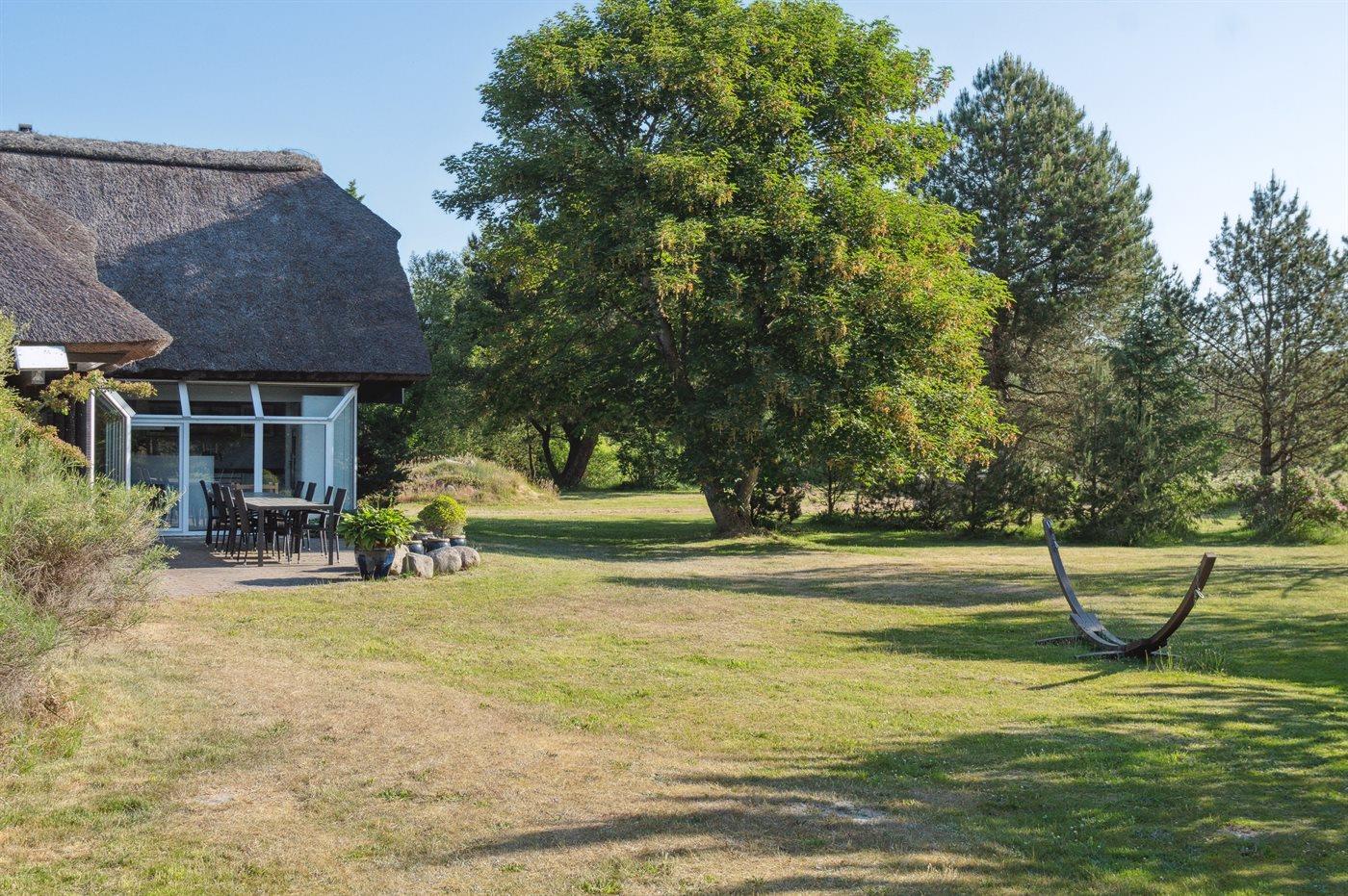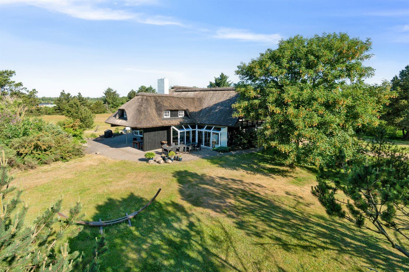 De vakantiewoning is gelegen op een 10000 m² groot natuural grond. Afstand tot de zee 3500 m. Afstand tot de fjord 2000 m. Dichtstbijzijnde winkel 5000 m. Er is een golfbaan op een afstand van 14000 m. Bij de vakantiewoning hoort 200 m² terras. Daarnaast is er een 40 m² groot overdekt terras. Schommel. Carport ter beschikking. Het huis heeft een stopcontact voor het opladen van een elektrische auto. Parkeerplaats bij het huis.