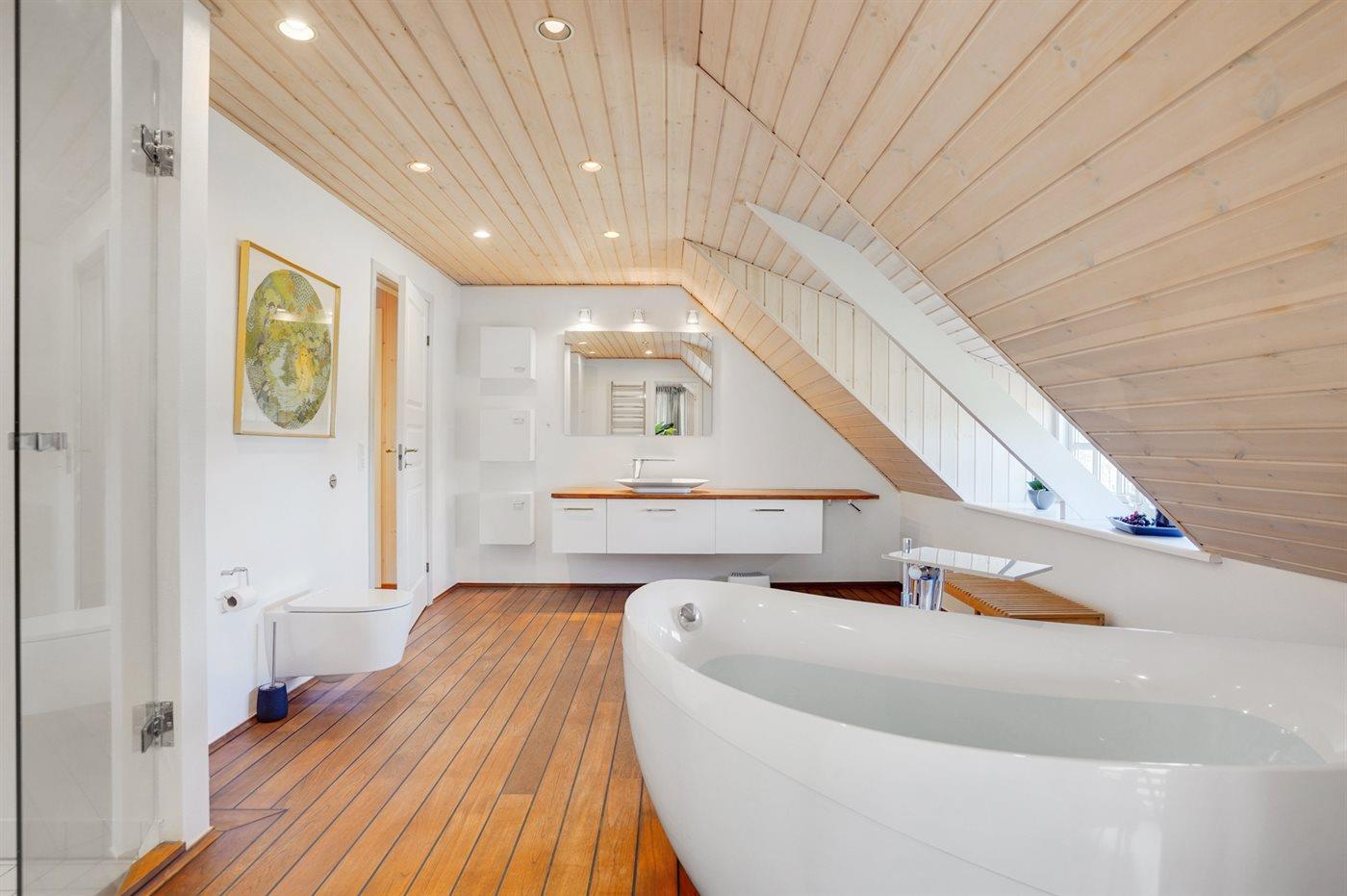 Er is 5 badkamers met douchehok en 5 toiletten. Er is vloerverwarming in 3 van de badkamers.. Badkuip. De sauna biedt de gelegenheid tot ontspanning.
