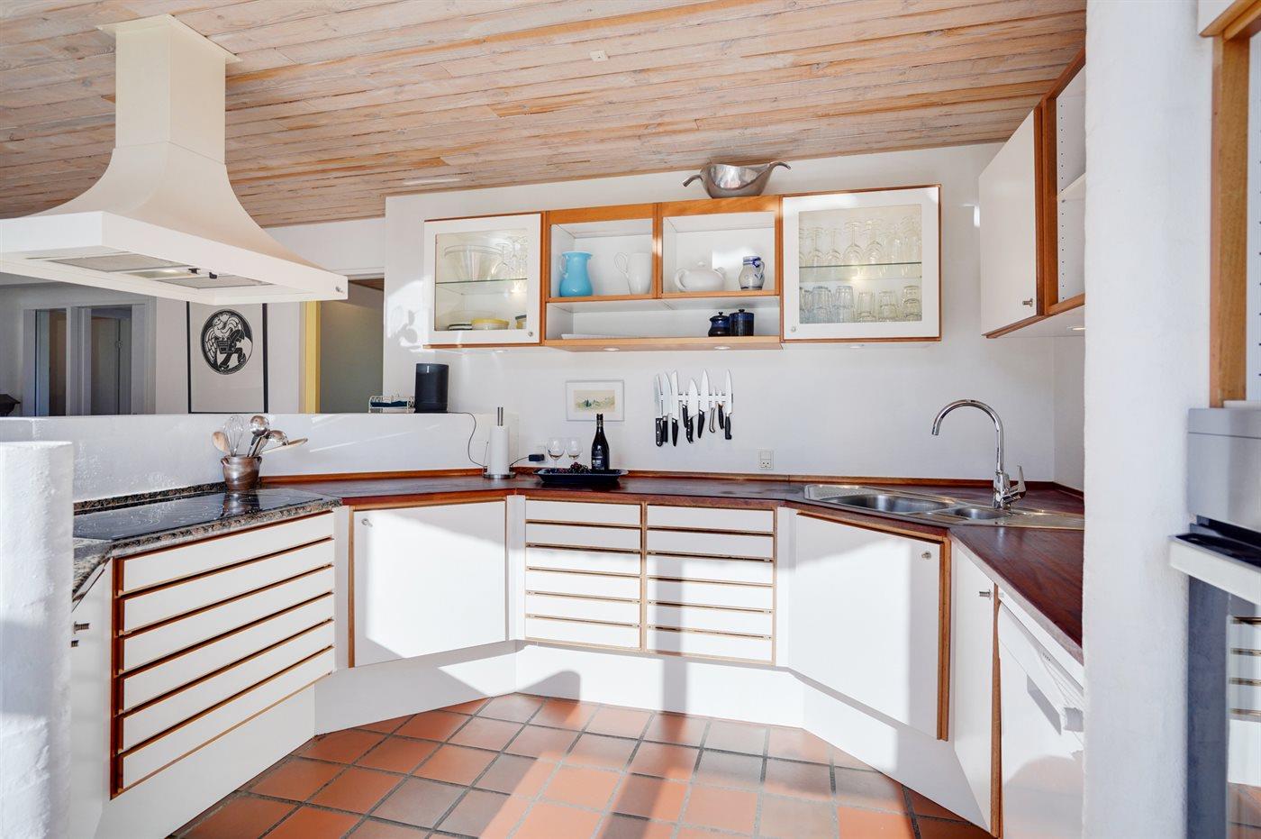De keuken is uitgerust met koelkast Er zijn 5 keramische kookplaten, heteluchtoven, magnetron en vaatwasser.