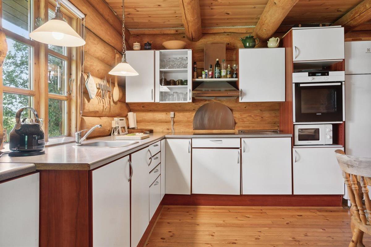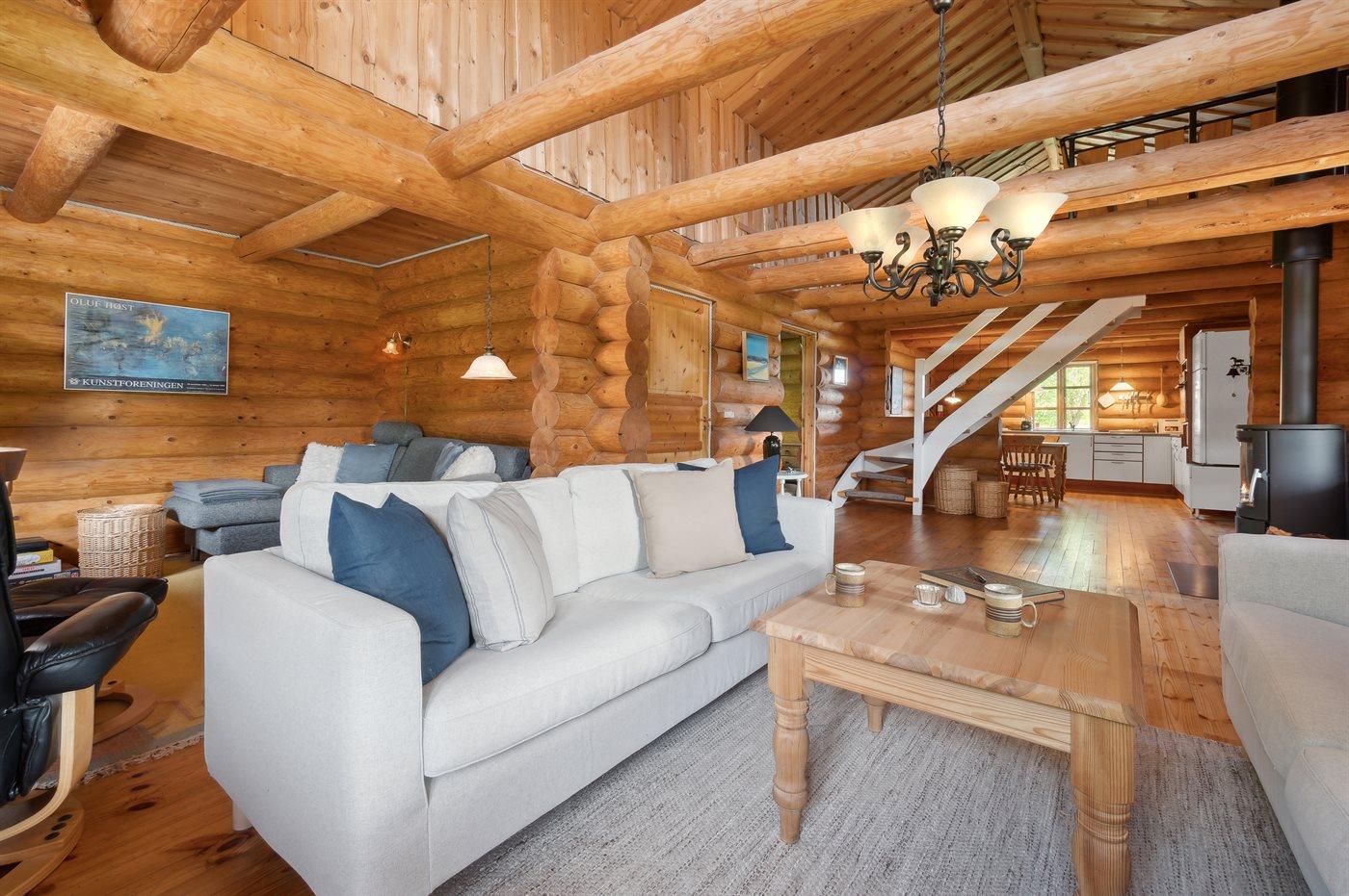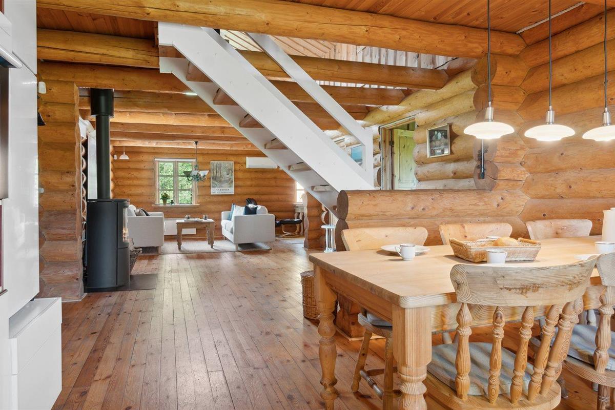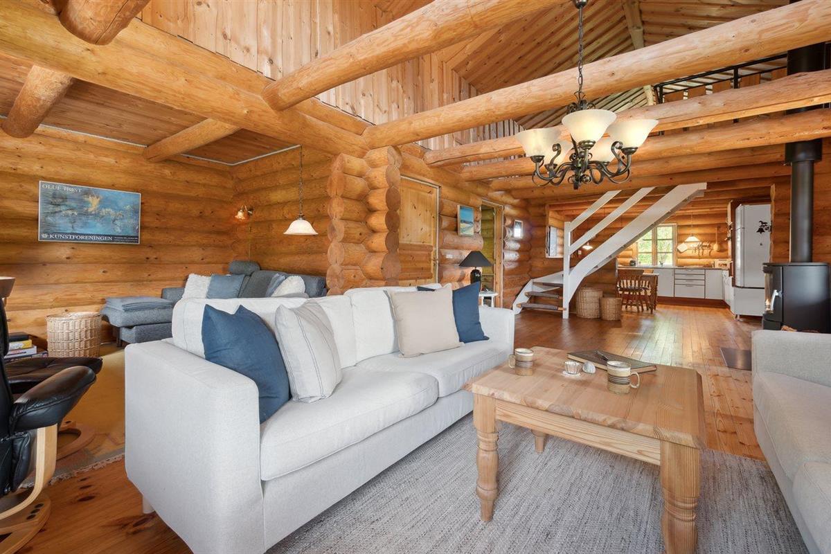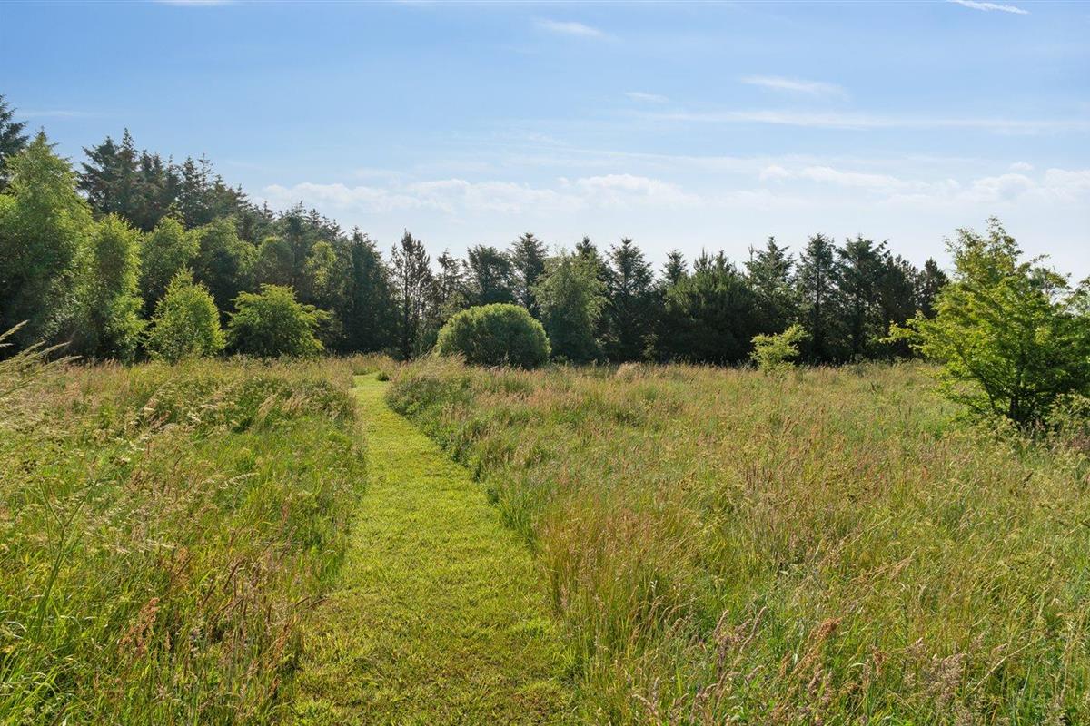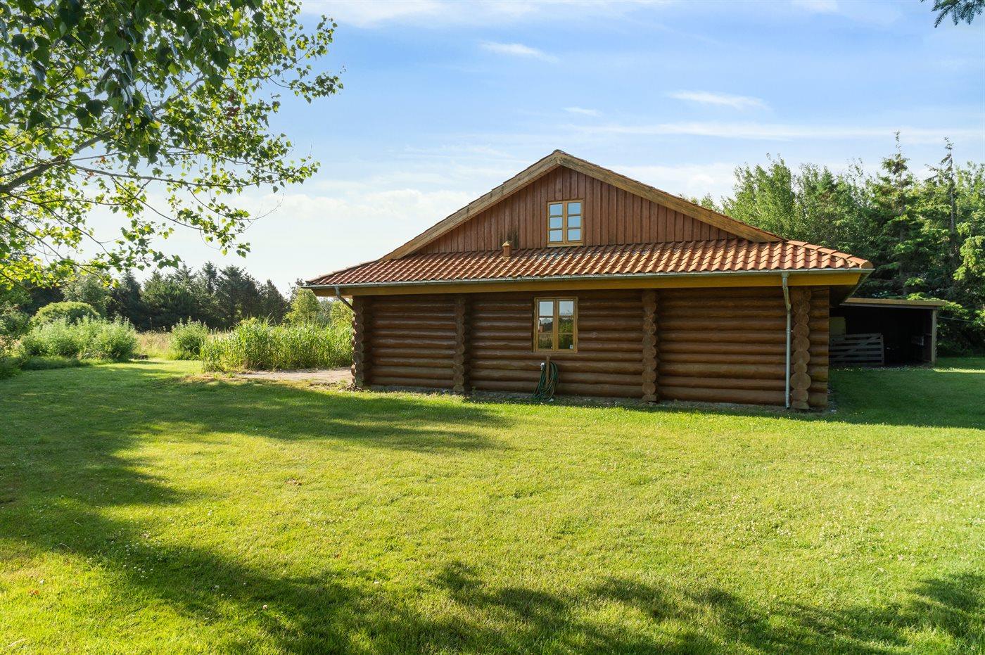 De vakantiewoning is gelegen op een 6104 m² groot natuural grond. De grond is omheind. Afstand tot de zee 3000 m. Afstand tot de fjord 1500 m. Dichtstbijzijnde winkel 4500 m. Bij de vakantiewoning hoort 100 m² terras. Daarnaast is er een 20 m² groot overdekt terras. Gereedschapsruimte. Carport ter beschikking. Parkeerplaats bij het huis.