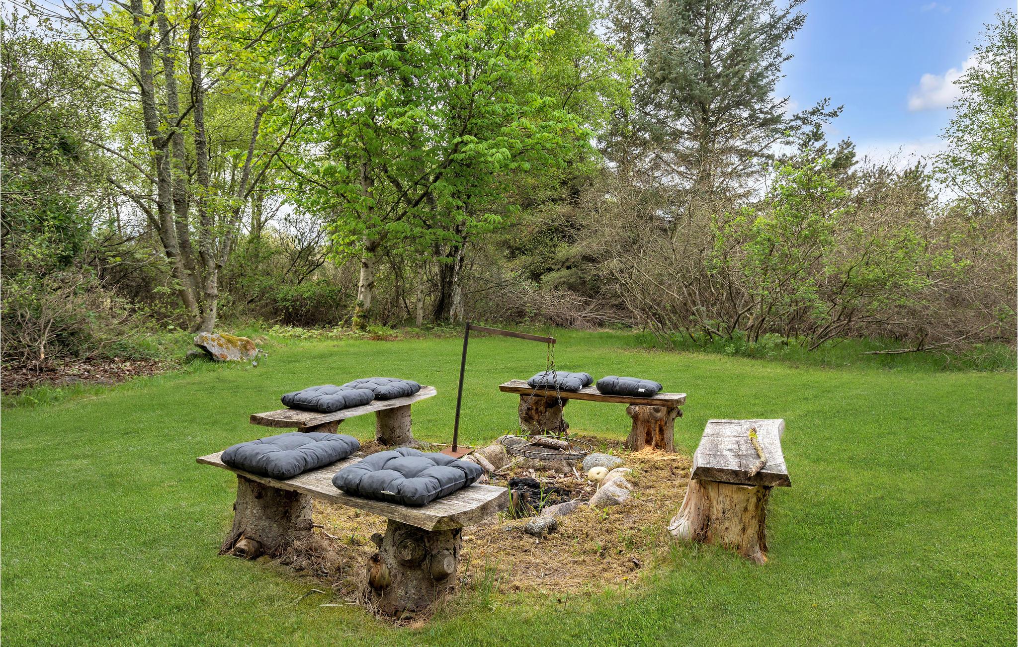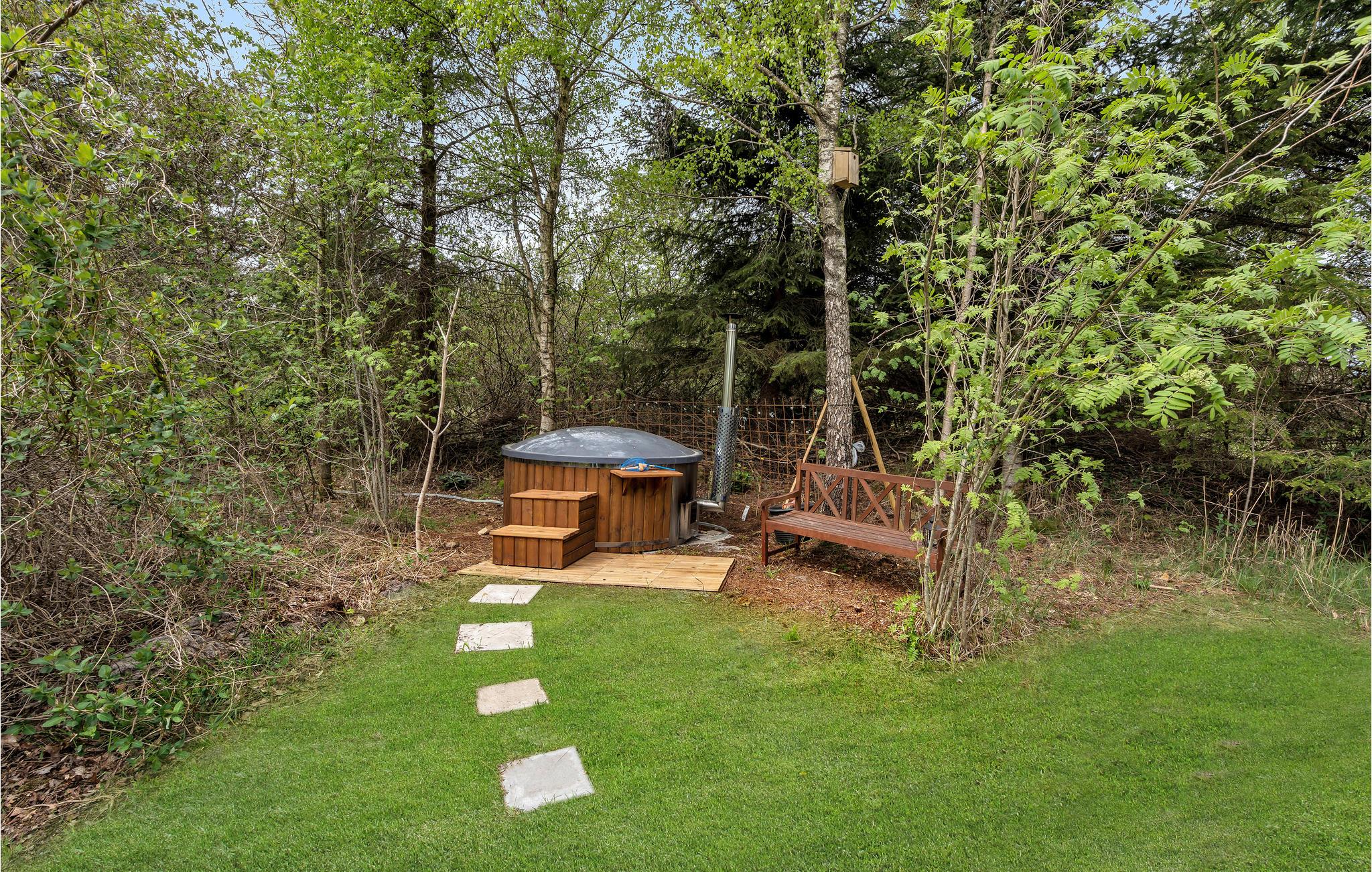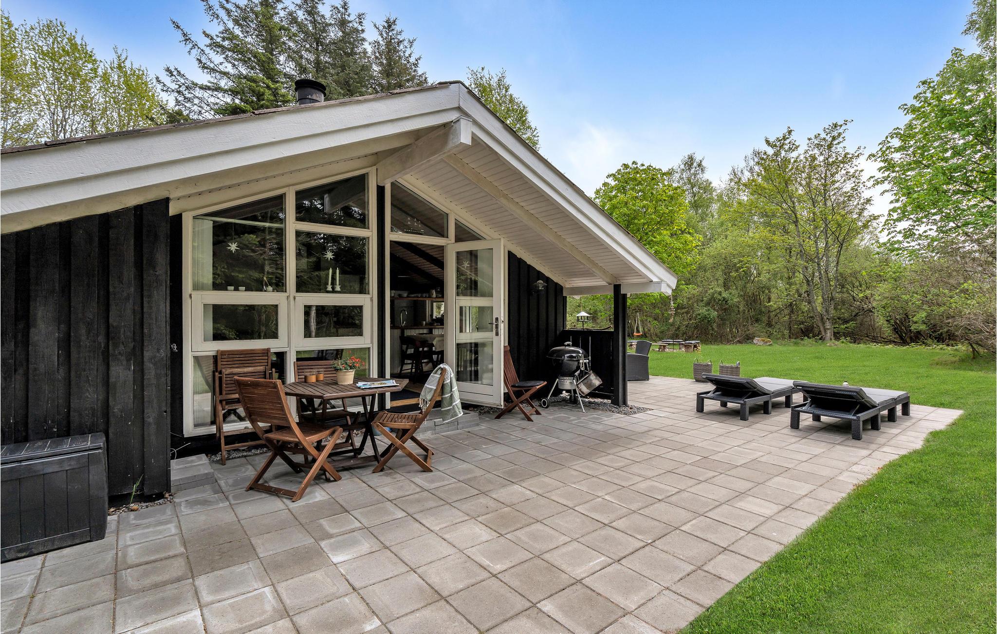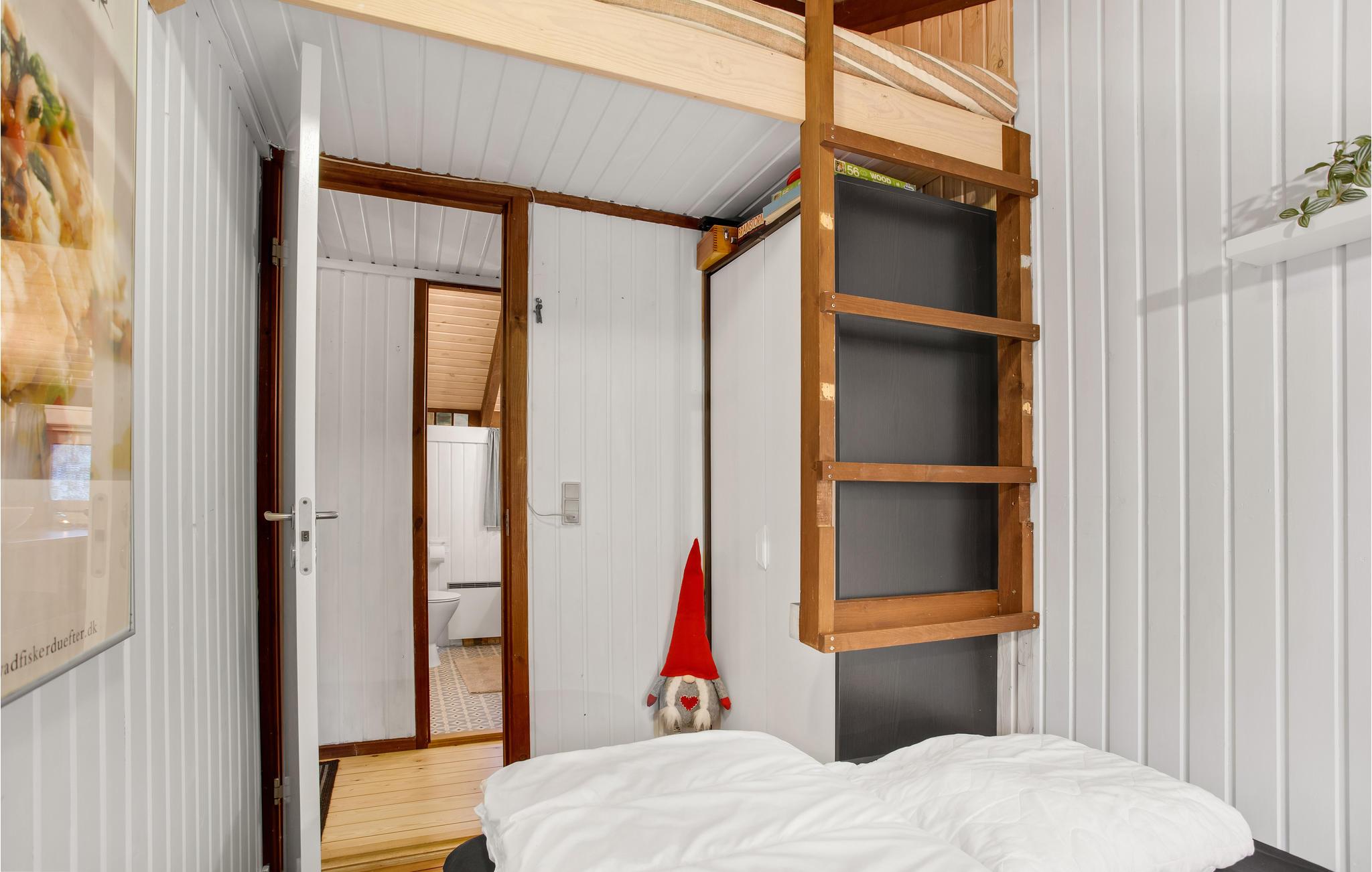 Ontdek dit knusse houten vakantiehuis met open haard en ruime vide, gelegen in de natuur nabij Bunken Strand.