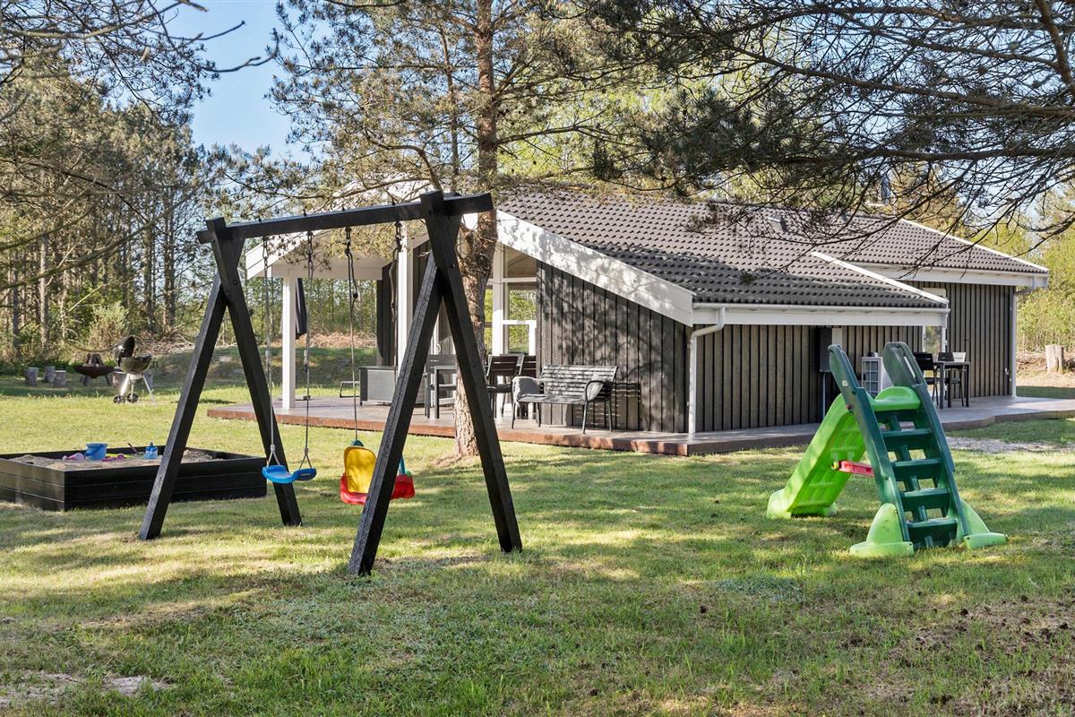Stap uit op het ruime, gedeeltelijk overdekte houten terras, waar je kunt barbecueën en je kinderen kunt zien spelen en schommelen. Of speel samen een spelletje kubb, voetbal, volleybal of badminton en geniet van de tijd met het gezin.