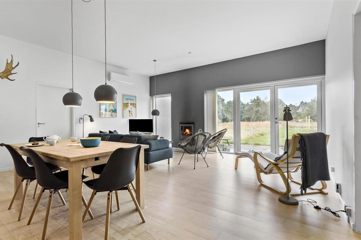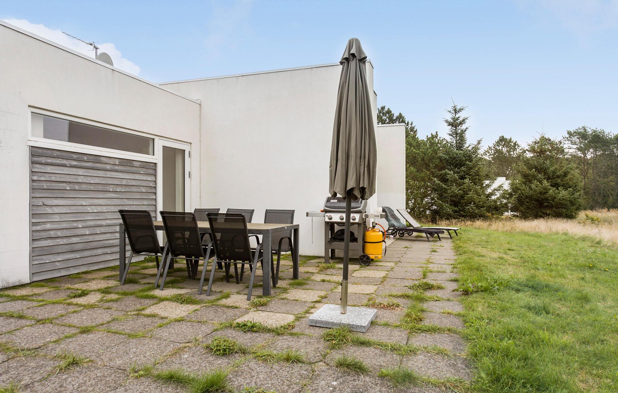 Modern en rolstoeltoegankelijk vakantiehuis direct aan de Hvide Klit golfbaan met terrassen en natuurlijke omgeving.
