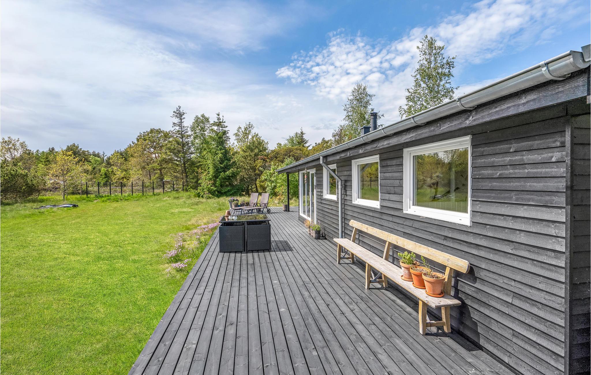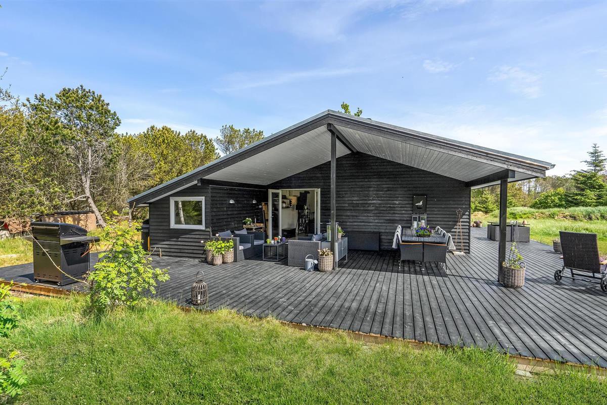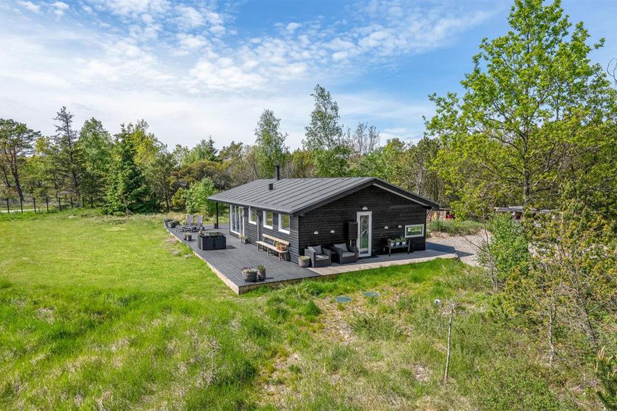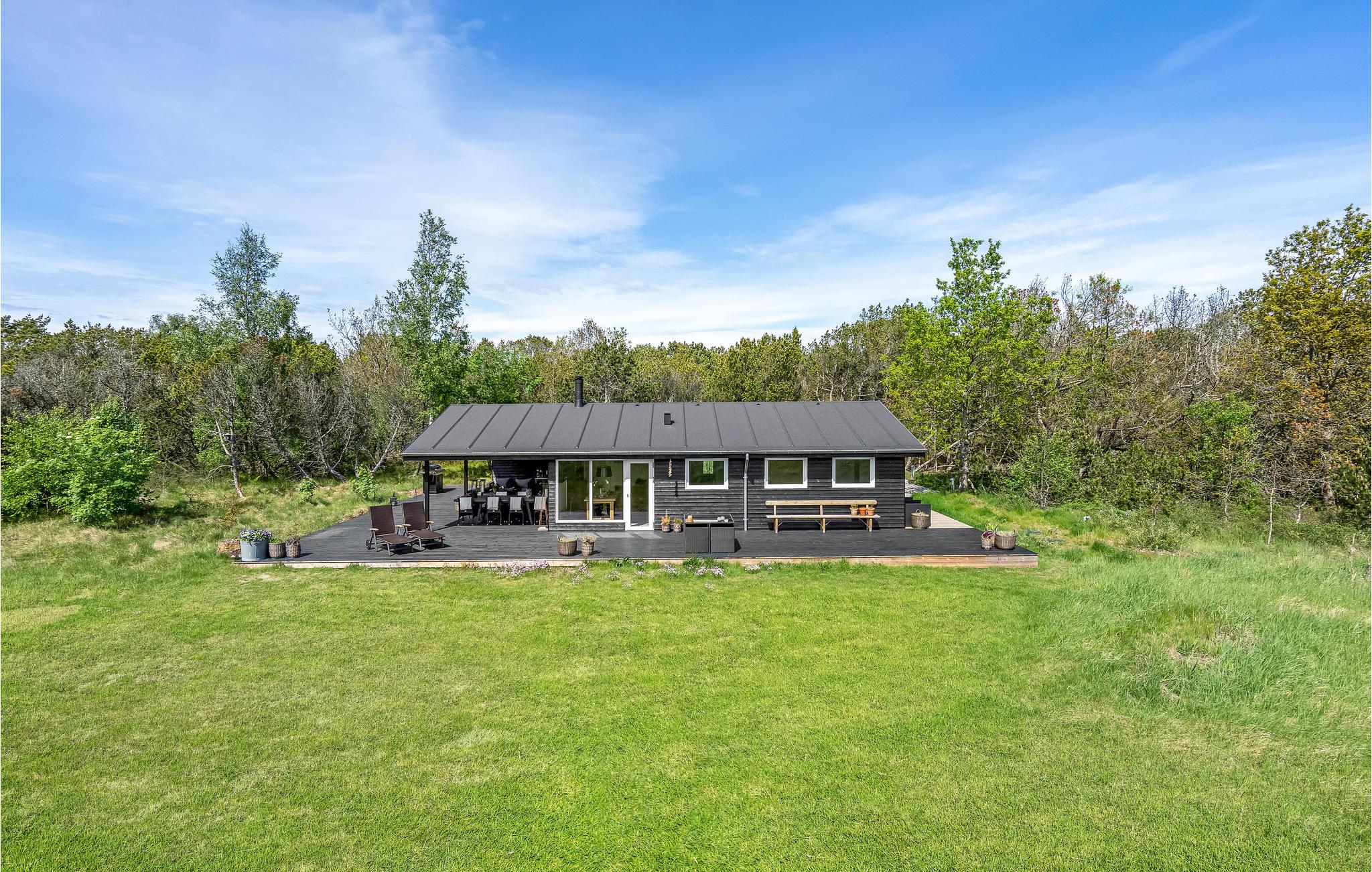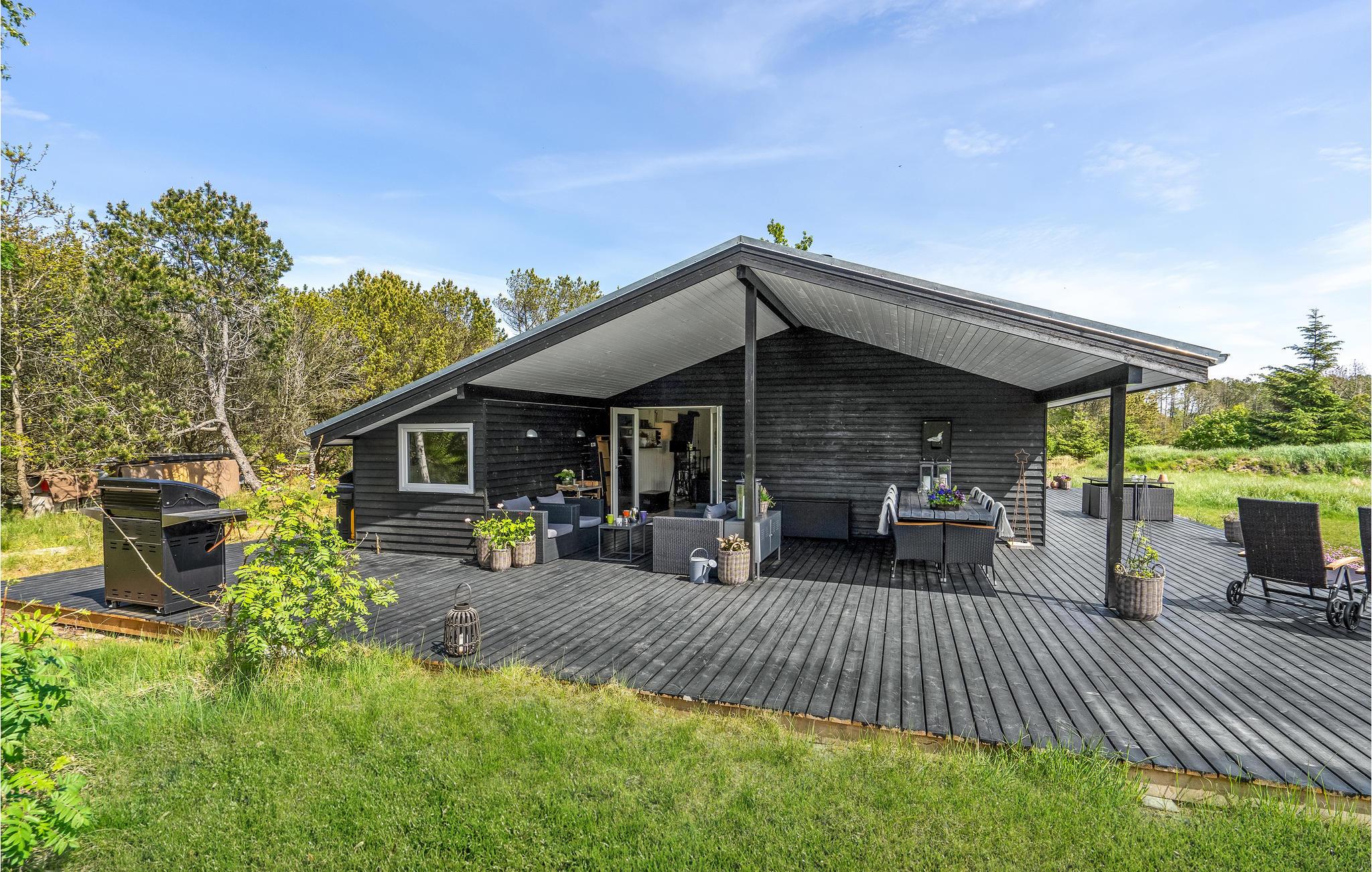 Modern houten vakantiehuis nabij het Kattegatstrand in Jutland, ideaal voor ontspanning en gezinsplezier.
