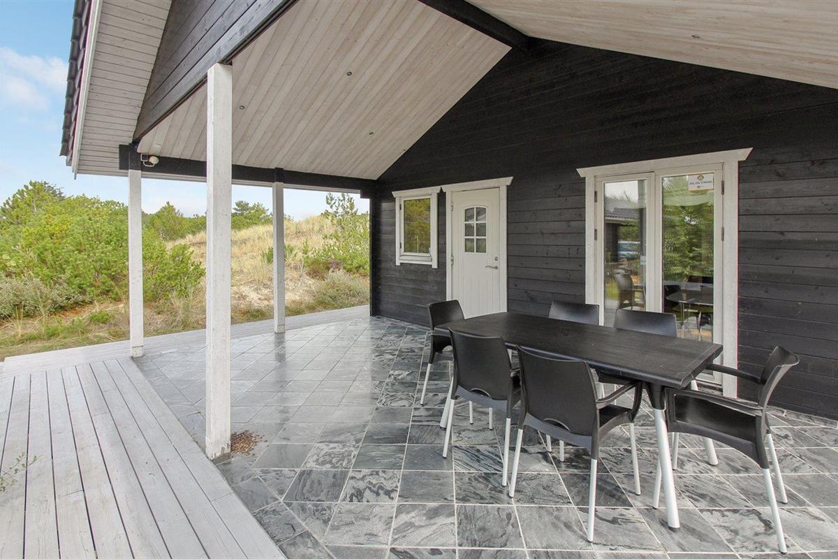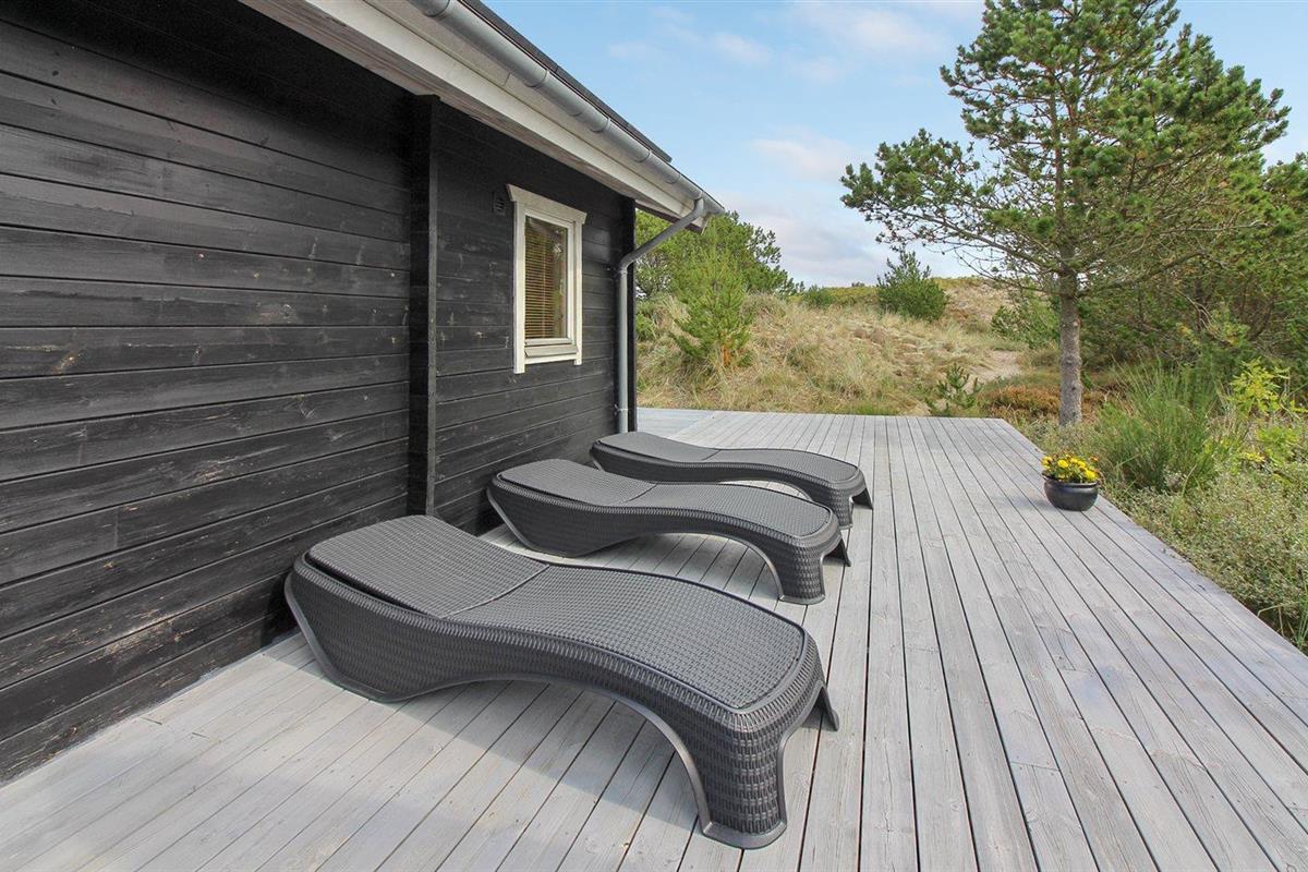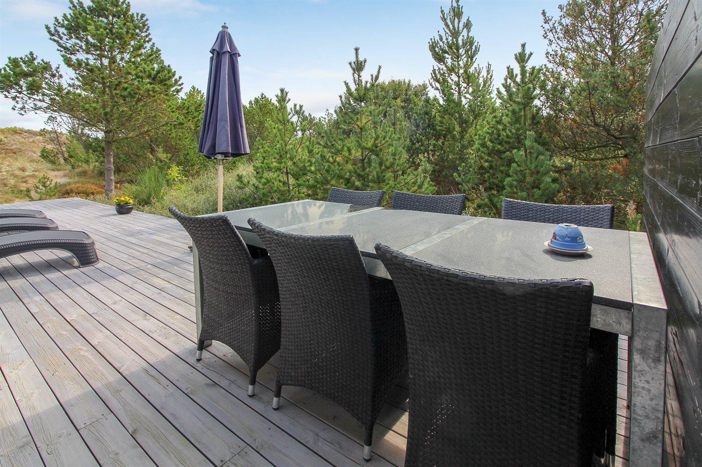 De vakantiewoning is gelegen op een 1689 m² groot Duingrond. Afstand tot de zee 150 m. Dichtstbijzijnde winkel 2000 m. Bij de vakantiewoning hoort 100 m² terras. Daarnaast is er een 18 m² groot overdekt terras. Barbecue. Carport ter beschikking. Parkeerplaats bij het huis.