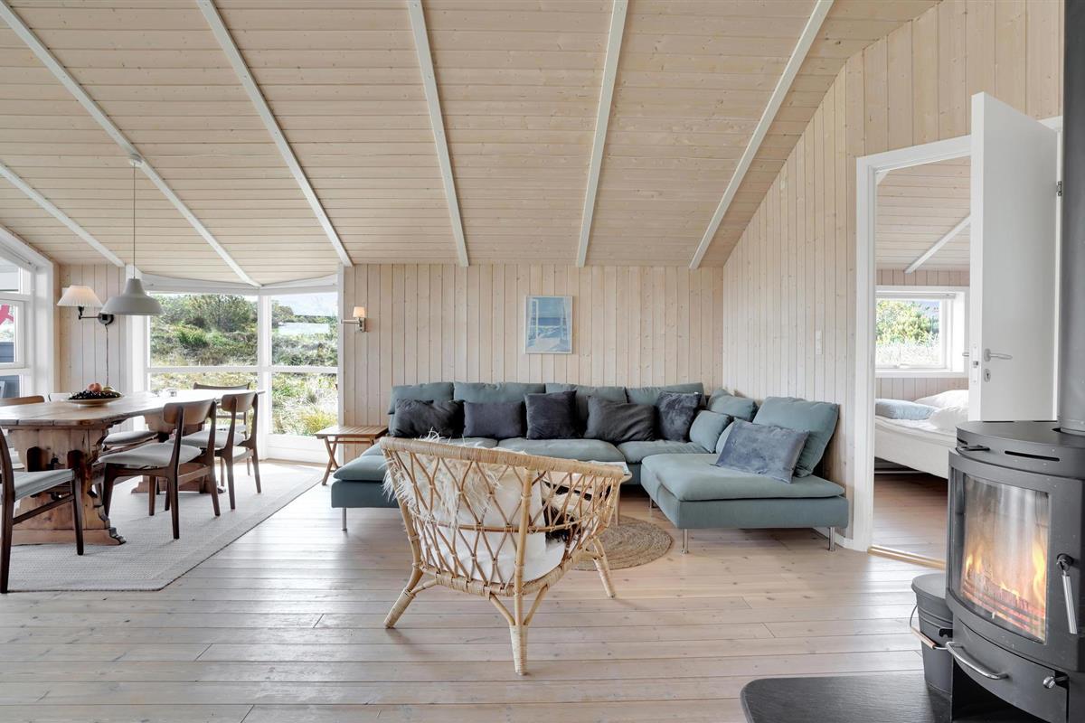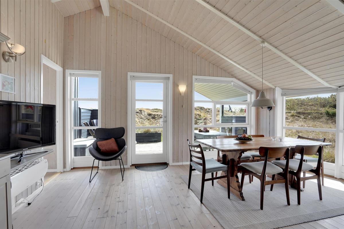 Achter de buitenste duinenrij, direct aan het strand, wacht dit prachtige vakantiehuis op u. Het is ingericht met mooie meubels en heeft aantrekkelijke slaapkamers, en vanuit de woonkamer komt u op het oostelijke terras waar u kunt genieten van de ochtendzon, en ook op het terras aan de westkant kunt u de hele dag buiten doorbrengen. Vanaf hier is het ook niet ver naar het mooie stadje Skagen, Råbjerg Mile, het adelaarsreservaat en verschillende golfbanen. Het strand bij Bunken is bijzonder mooi en autovrij.