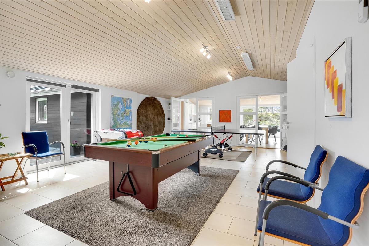 Binnen kunt u een lichte, praktische inrichting en goed uitgeruste kamers verwachten die gedomineerd worden door een huiselijke, aangename sfeer. Volwassenen en kinderen kunnen zich uitleven in de grote activiteitenruimte: U kunt elkaar uitdagen tot spannende toernooien aan de tafelvoetbal-, tafeltennis- en biljarttafel. Naast de whirlpool en de sauna is er ook een stoomcabine in de ruime badkamer. Een tafel en monitor zijn beschikbaar voor thuisgebruik.