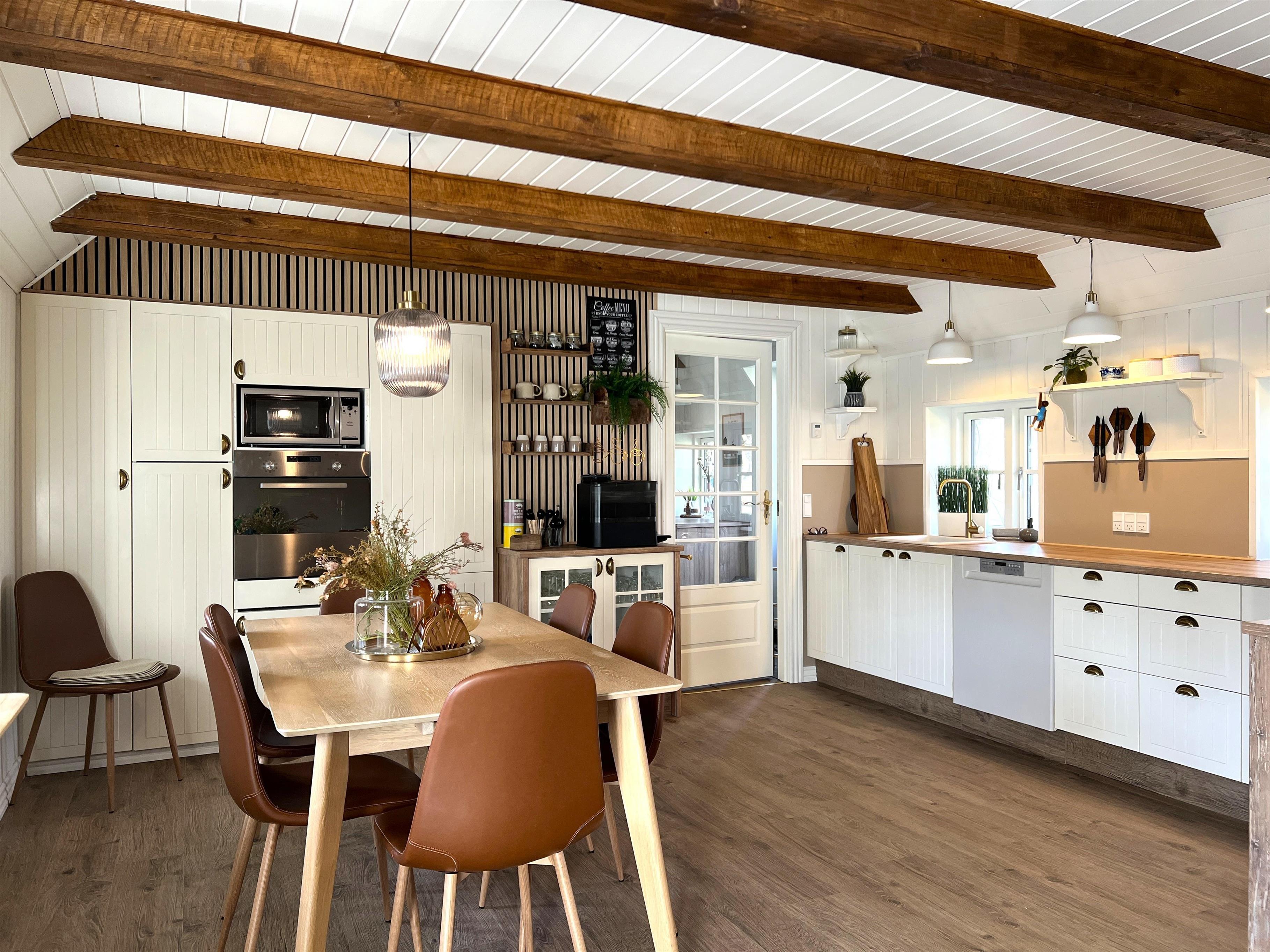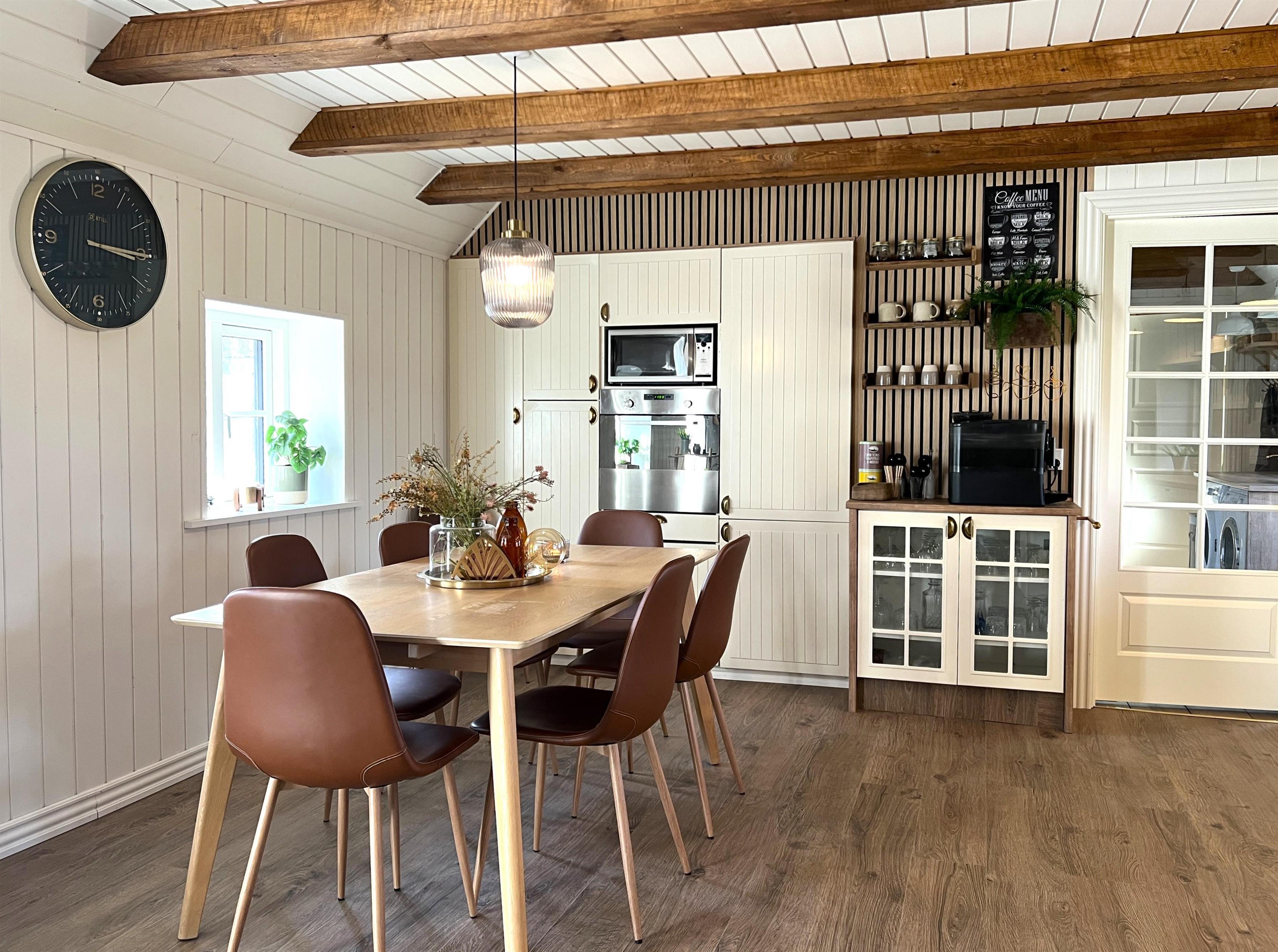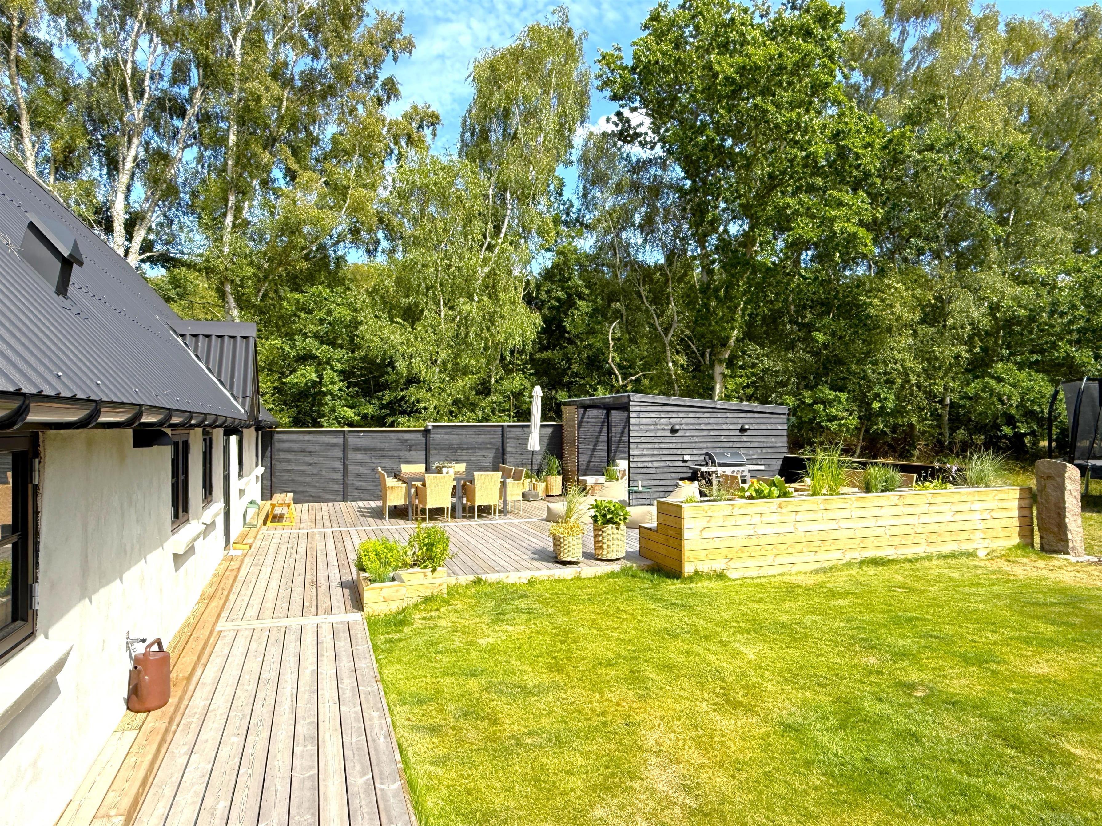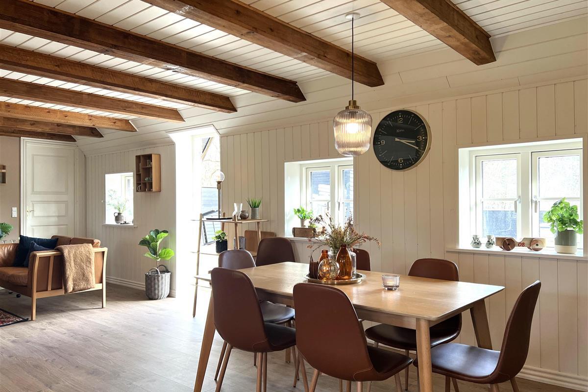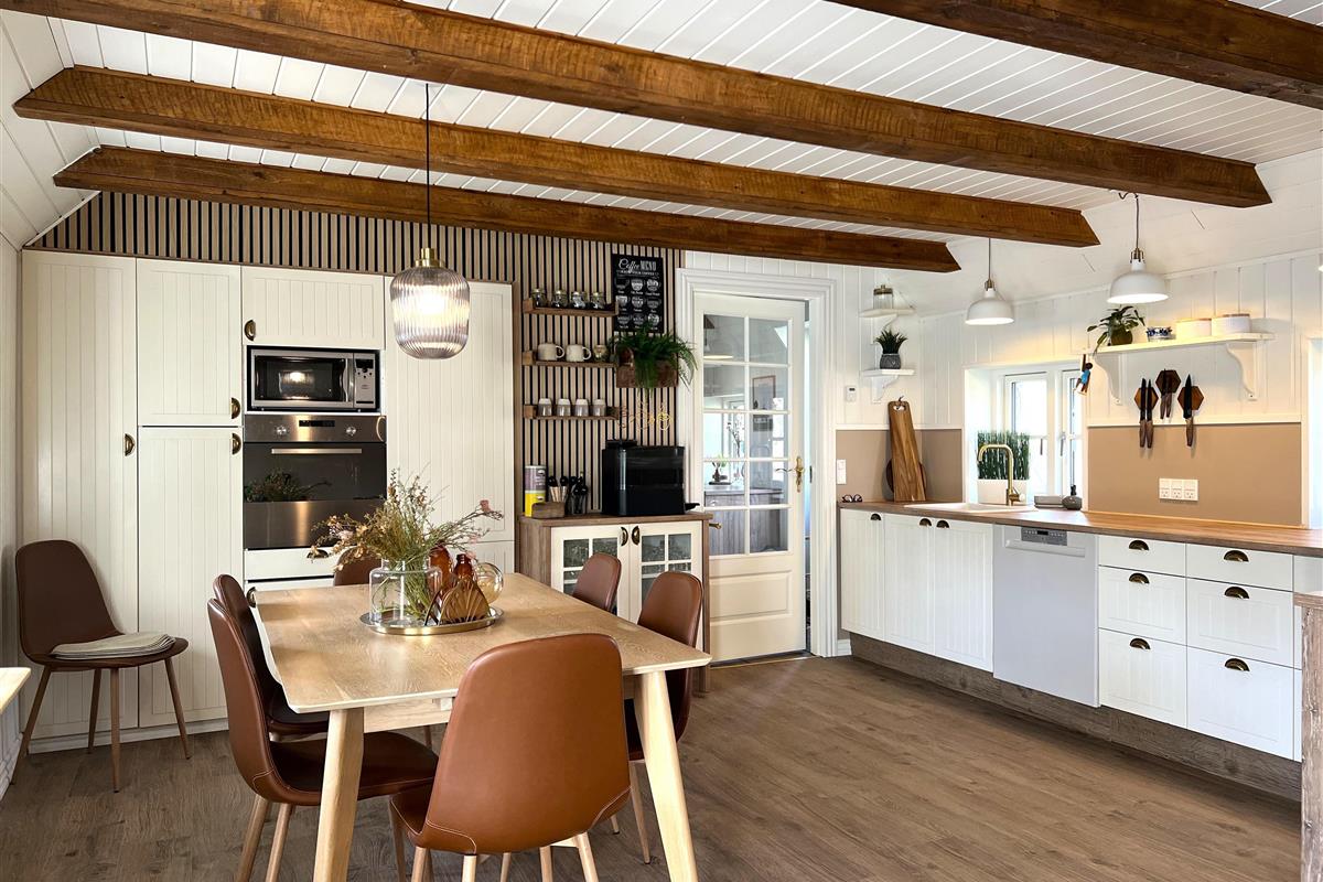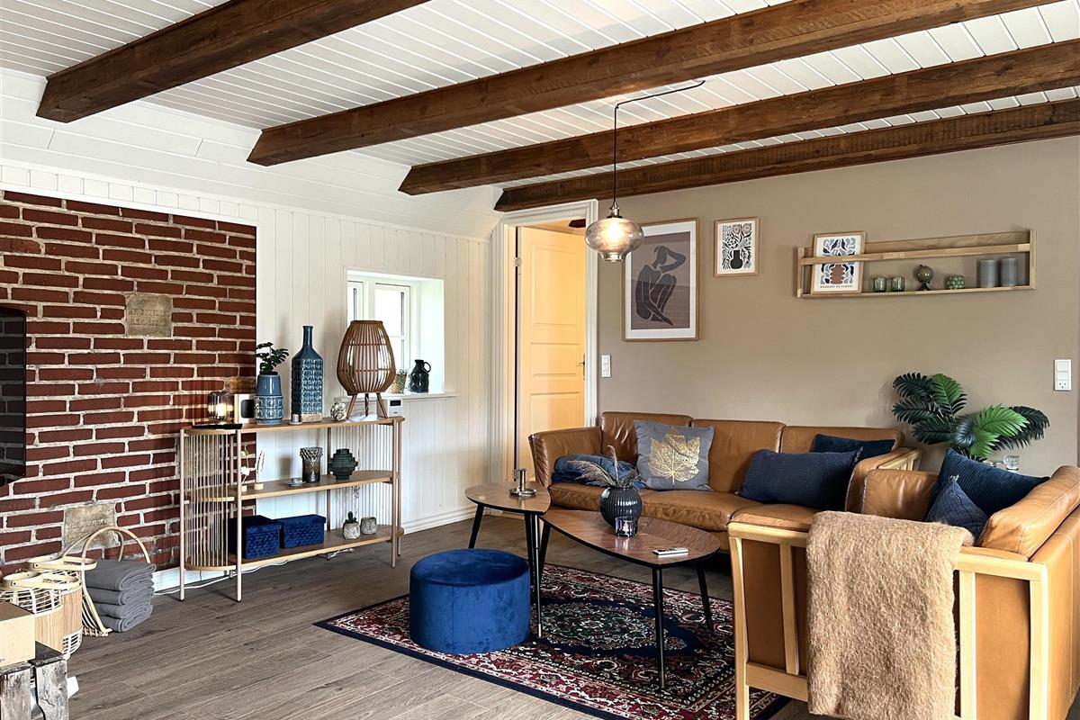 Neu im Team Læsø. Schönes, neu renoviertes Haus am Lille skovvej am Rande von Byrum. Hier können Sie die Ruhe, die Natur und das schöne große Grundstück, auf dem auch der Hund herumtollen kann, so richtig genießen. Große, neue teilweise überdachte Holzterrasse mit vielen guten Gartenmöbeln und Grill. Das Haus ist komplett neu renoviert und wirkt mit freigelegten Deckenbalken und vielen schönen Details besonders einladend. Das Haus verfügt über eine schöne Wohnküche mit einer schönen, gut ausgestatteten Küche und einem Sofa-/TV-Bereich. Das Erdgeschoss bietet drei schöne Schlafzimmer mit Doppelbetten, sowie ein schönes Badezimmer mit Dusche und freistehender Badewanne. Eingang mit Waschmaschine und Trockner. Im 1. Stock gibt es ein großes Doppelbett, sowie eine gemütliche Ecke mit der Möglichkeit zum Lesen oder Spielen.