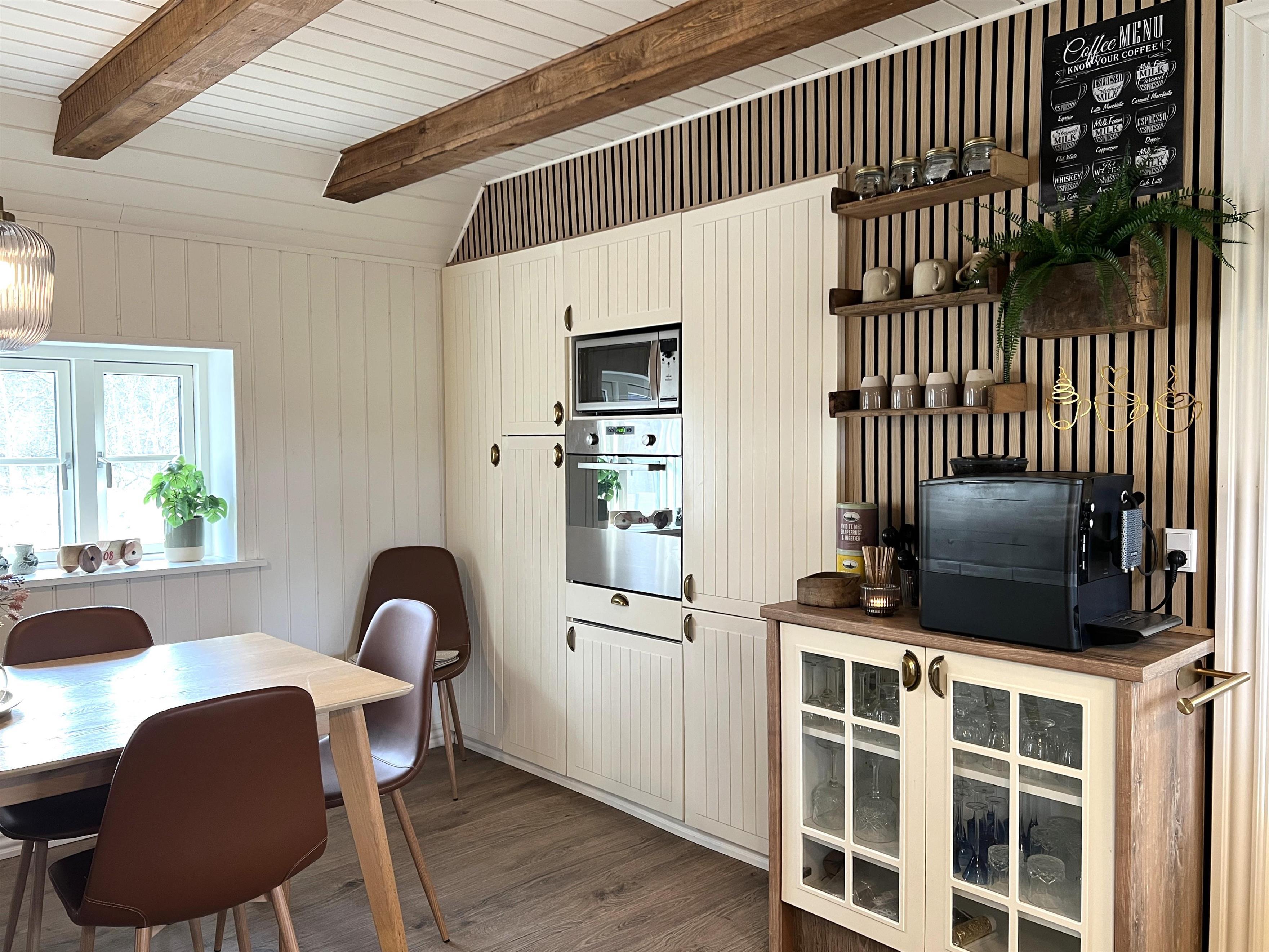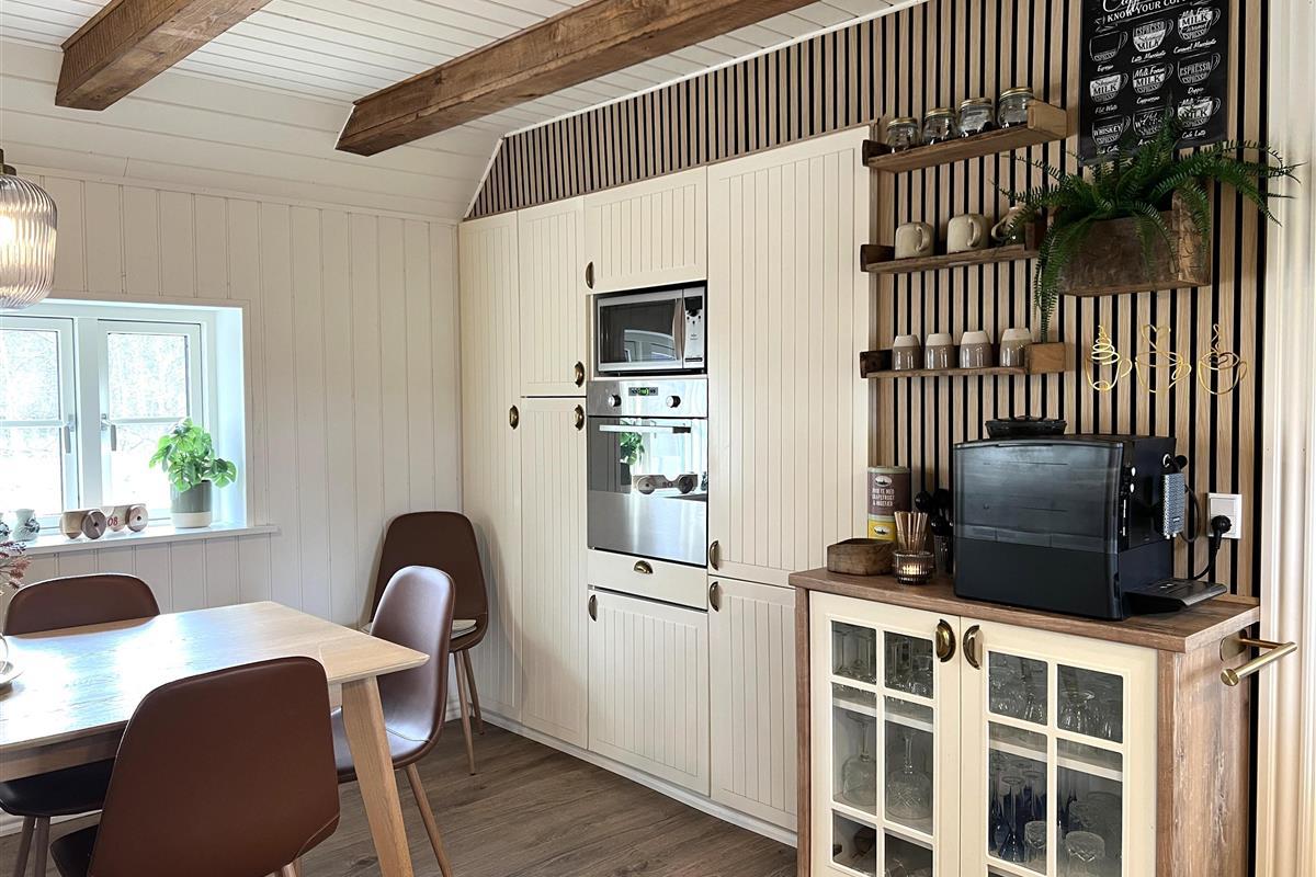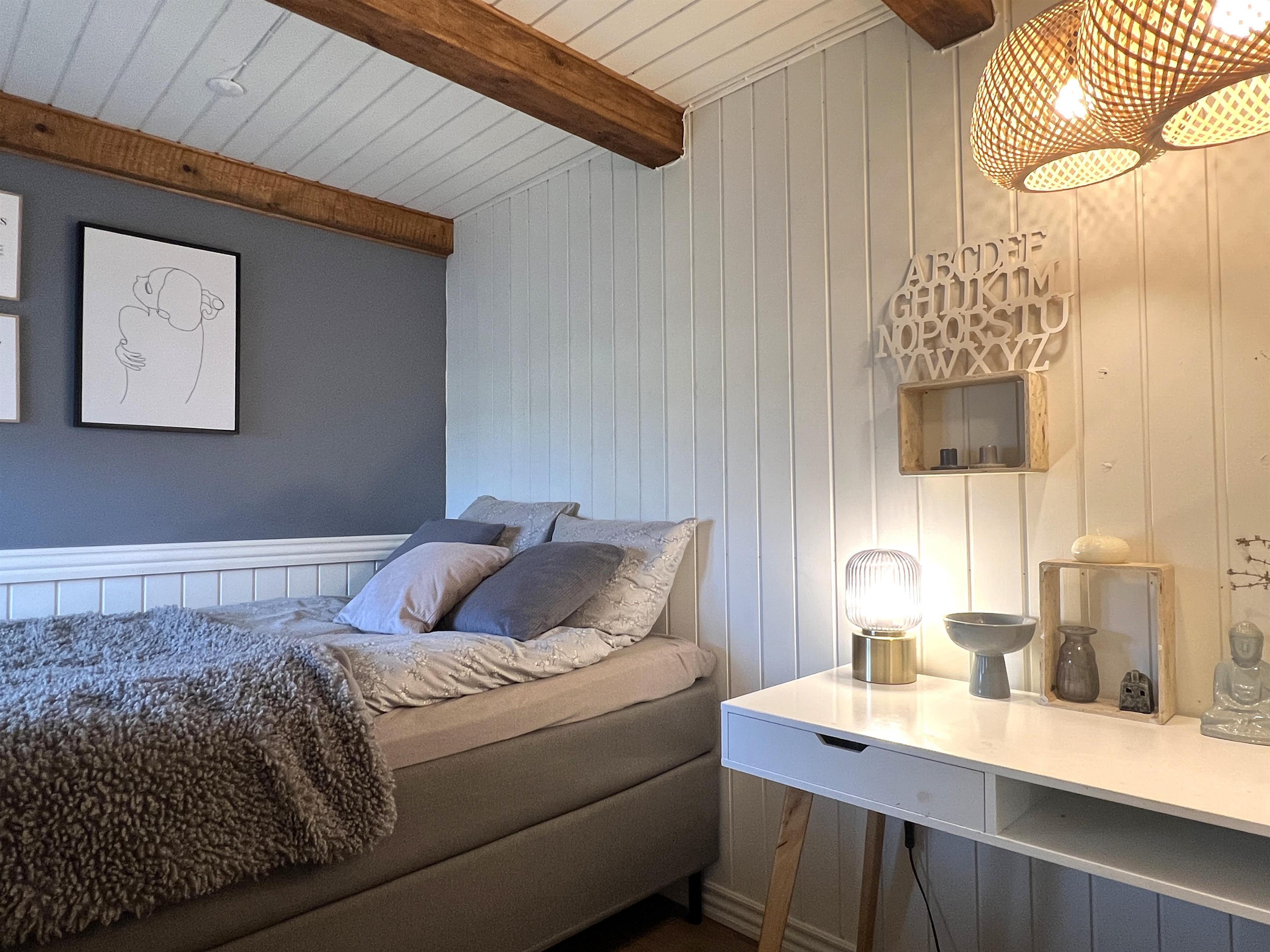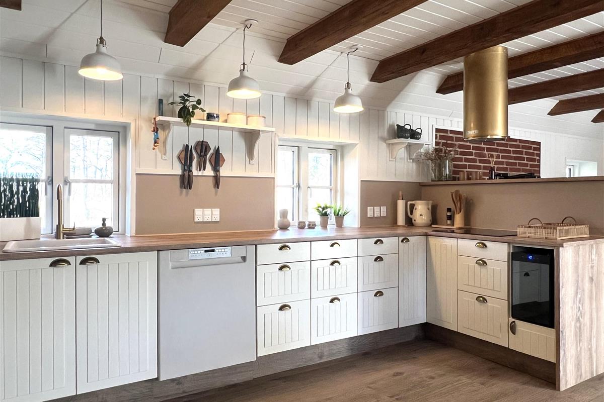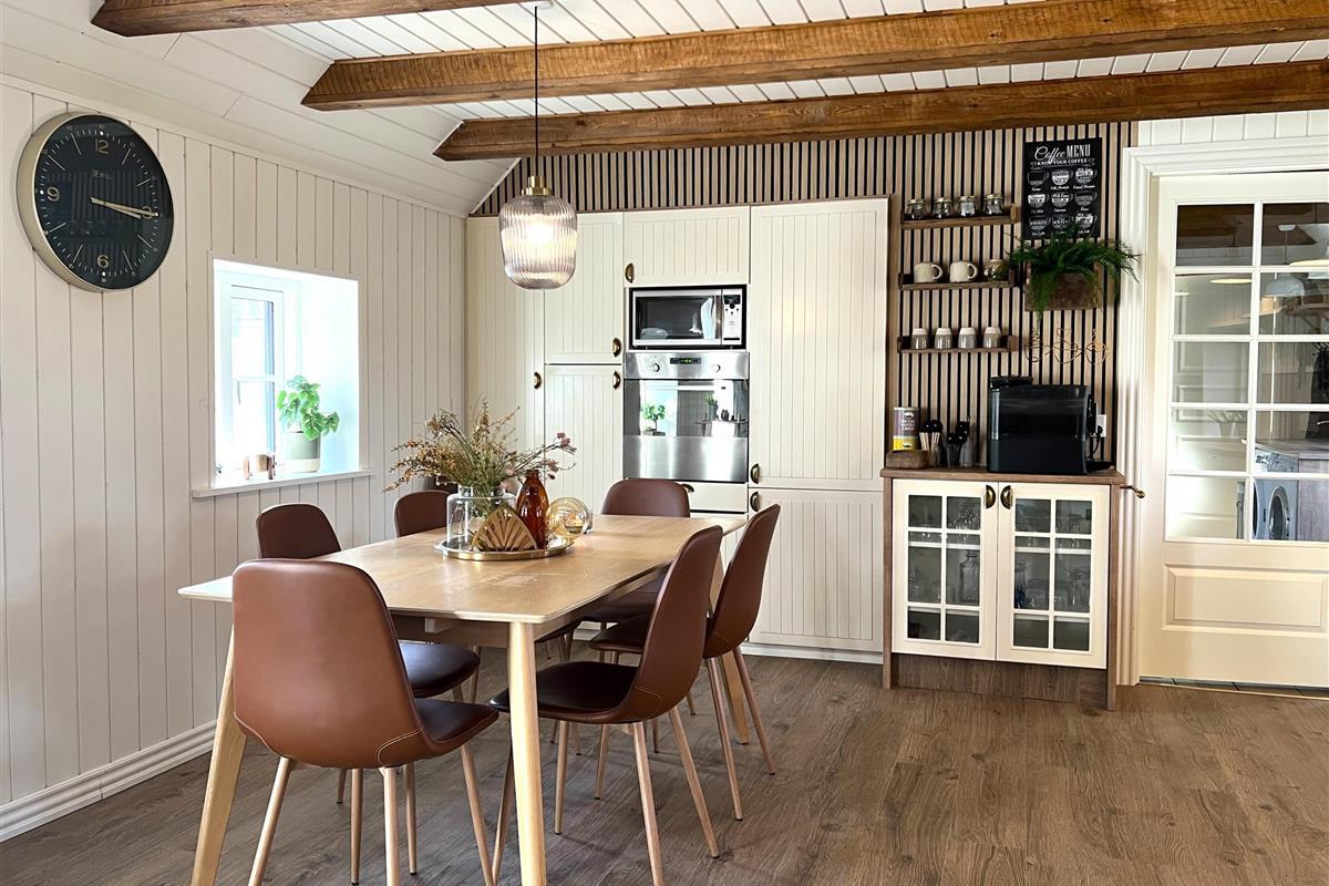 Neu im Team Læsø. Schönes, neu renoviertes Haus am Lille skovvej am Rande von Byrum. Hier können Sie die Ruhe, die Natur und das schöne große Grundstück, auf dem auch der Hund herumtollen kann, so richtig genießen. Große, neue teilweise überdachte Holzterrasse mit vielen guten Gartenmöbeln und Grill. Das Haus ist komplett neu renoviert und wirkt mit freigelegten Deckenbalken und vielen schönen Details besonders einladend. Das Haus verfügt über eine schöne Wohnküche mit einer schönen, gut ausgestatteten Küche und einem Sofa-/TV-Bereich. Das Erdgeschoss bietet drei schöne Schlafzimmer mit Doppelbetten, sowie ein schönes Badezimmer mit Dusche und freistehender Badewanne. Eingang mit Waschmaschine und Trockner. Im 1. Stock gibt es ein großes Doppelbett, sowie eine gemütliche Ecke mit der Möglichkeit zum Lesen oder Spielen.