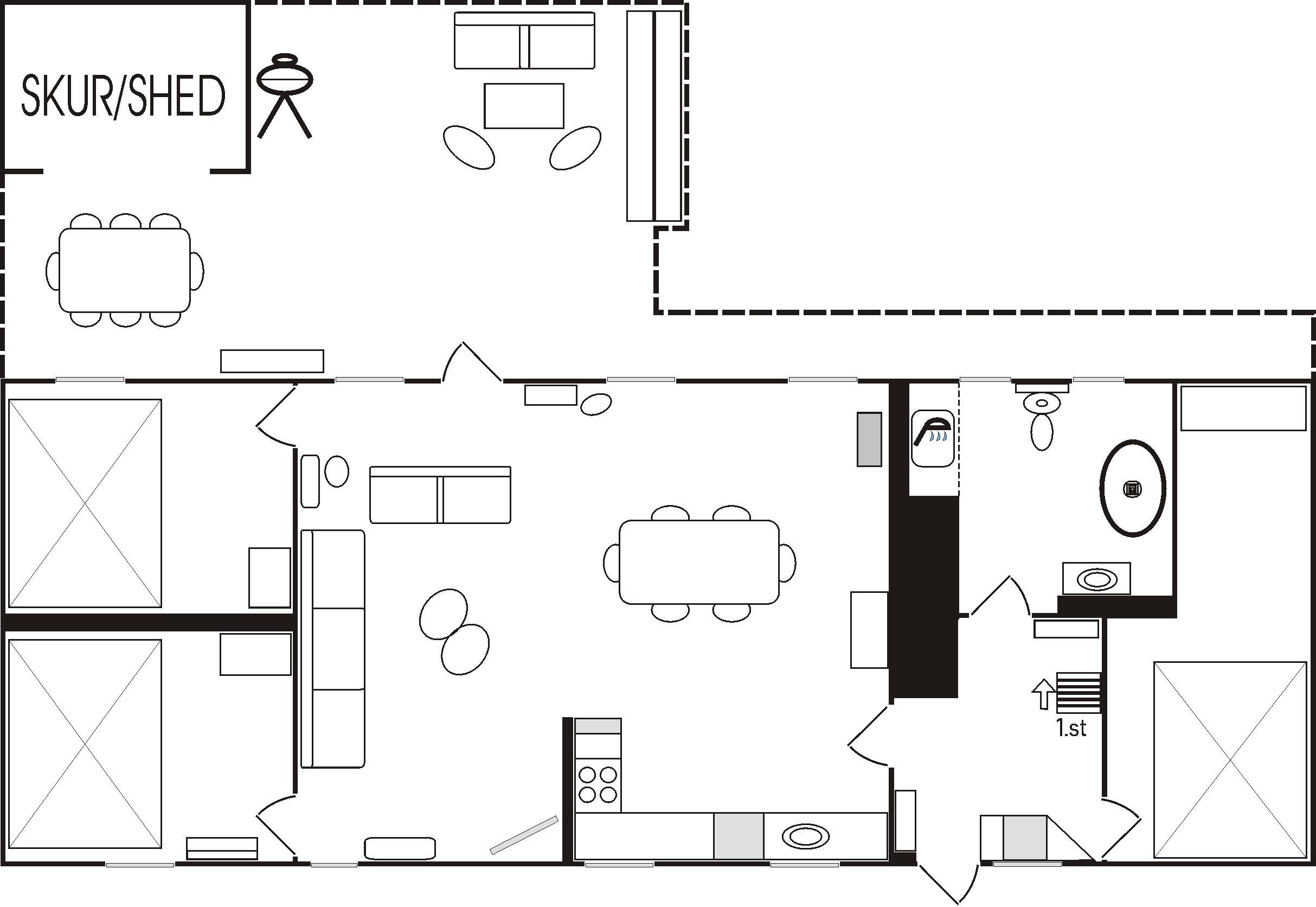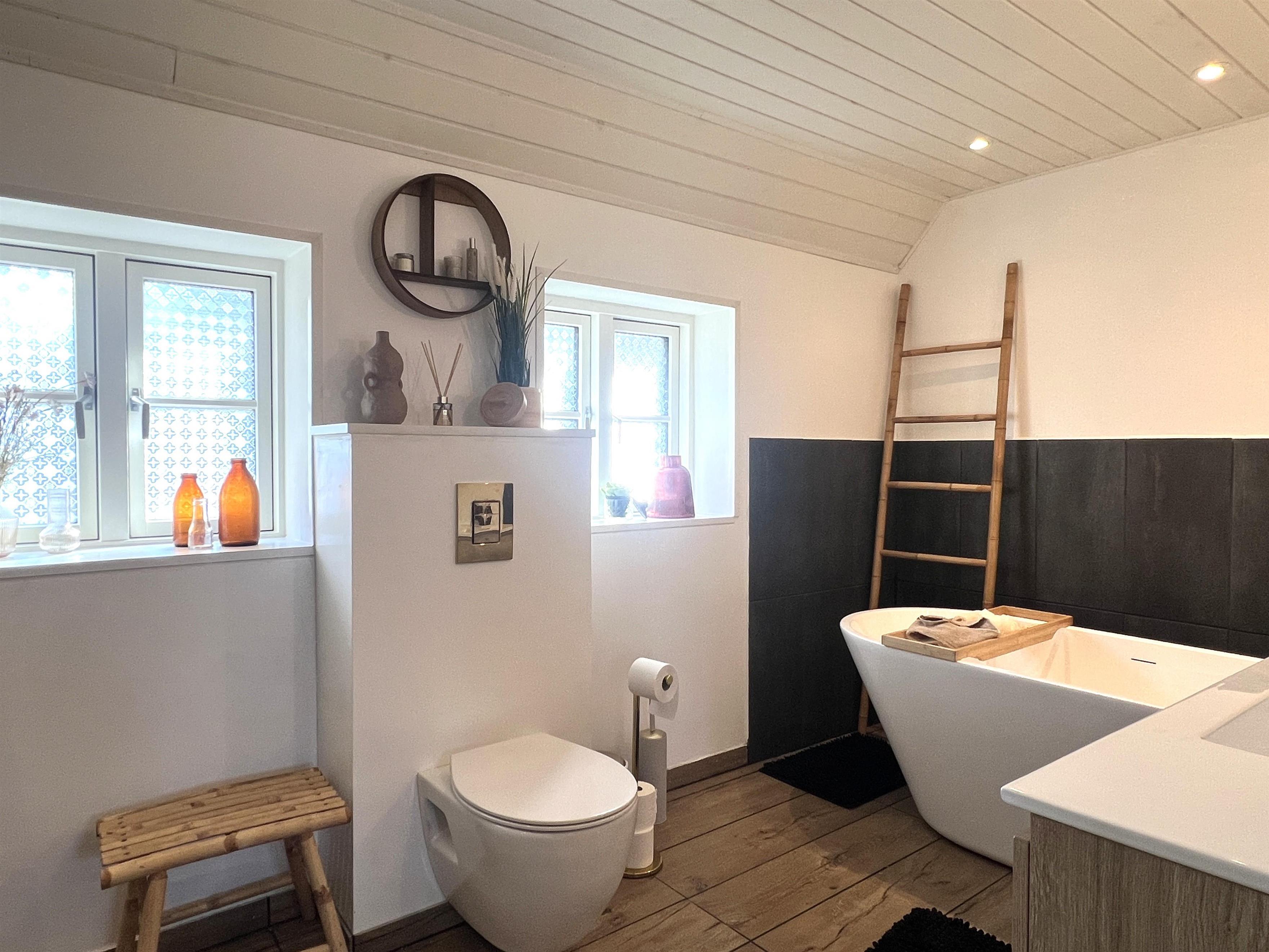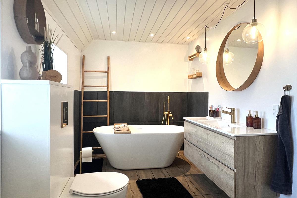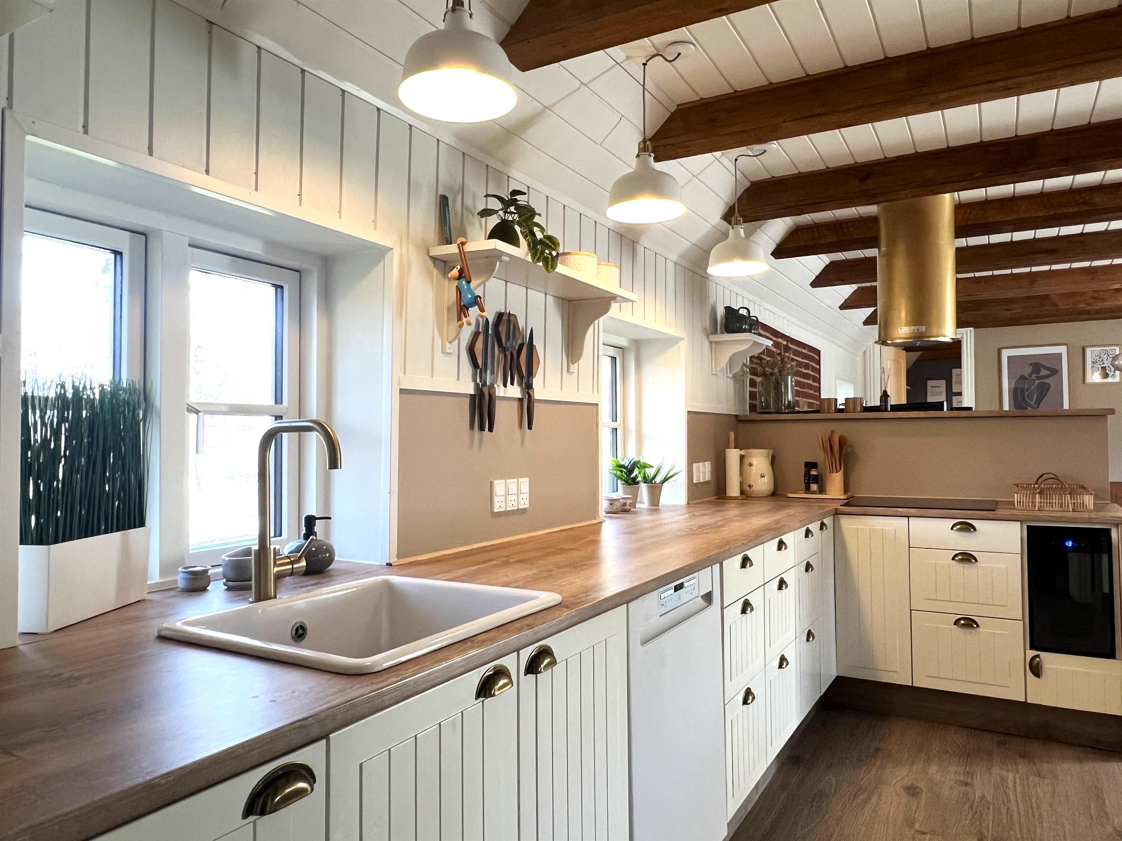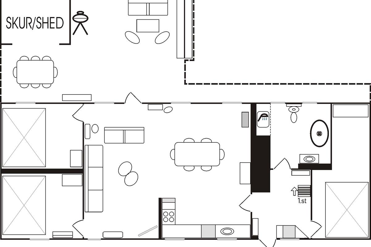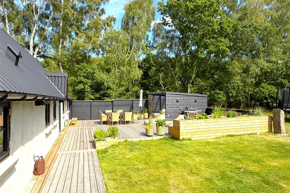 Neu im Team Læsø. Schönes, neu renoviertes Haus am Lille skovvej am Rande von Byrum. Hier können Sie die Ruhe, die Natur und das schöne große Grundstück, auf dem auch der Hund herumtollen kann, so richtig genießen. Große, neue teilweise überdachte Holzterrasse mit vielen guten Gartenmöbeln und Grill. Das Haus ist komplett neu renoviert und wirkt mit freigelegten Deckenbalken und vielen schönen Details besonders einladend. Das Haus verfügt über eine schöne Wohnküche mit einer schönen, gut ausgestatteten Küche und einem Sofa-/TV-Bereich. Das Erdgeschoss bietet drei schöne Schlafzimmer mit Doppelbetten, sowie ein schönes Badezimmer mit Dusche und freistehender Badewanne. Eingang mit Waschmaschine und Trockner. Im 1. Stock gibt es ein großes Doppelbett, sowie eine gemütliche Ecke mit der Möglichkeit zum Lesen oder Spielen.