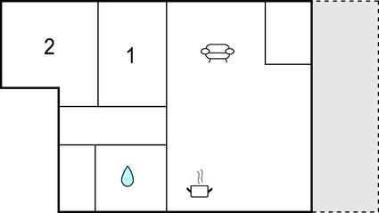 Woonkamer met open keuken - 2 Slaapplaatsen. (Opklapbed(den) of matras(sen)).
