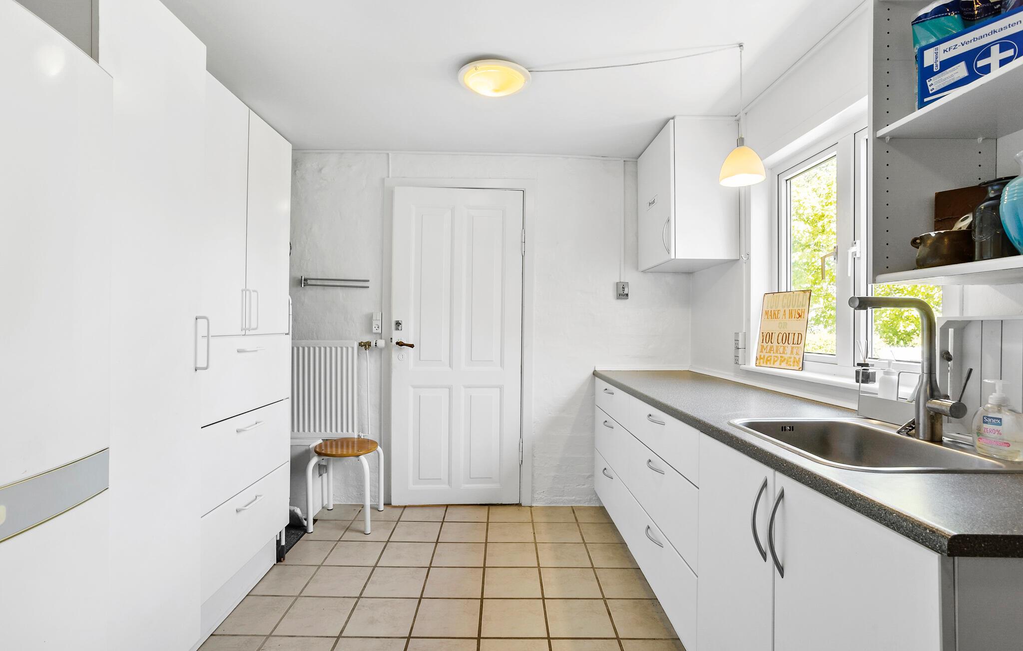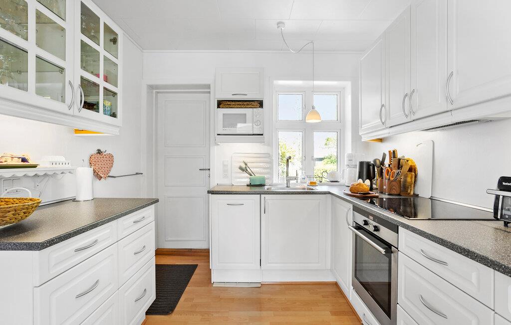 Je vakantiehuis in Dageløkke aan de westkust van het eiland Langeland biedt volop mogelijkheden om zowel binnen als buiten te ontspannen. Begin je dag in de ruime keuken, waar je een uitgebreid ontbijt kunt bereiden. De lichte en vriendelijke sfeer wordt voortgezet in de eethoek, die uitnodigt tot gezelligheid. Doe alsof je thuis bent op de comfortabele banken in de woonkamer. Veel natuurlijk licht stroomt de kamer binnen door de vele ramen, wat een uitnodigende sfeer creëert.