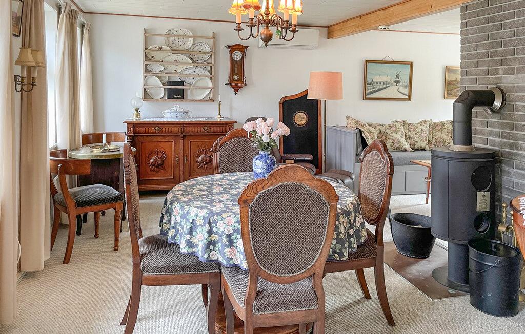 In dit gezellig ingerichte huis ervaar je een sfeer die uitnodigt om te ontspannen in een nostalgische omgeving. De eettafel is een heerlijke plek om samen te zitten tijdens een uitgebreid ontbijt of een avondje spelletjes te doen. De comfortabele fauteuils nodigen je uit om een goed boek te lezen of gewoon te genieten van de rust. En als het koeler is, kun je ontspannende uren doorbrengen bij de houtkachel en genieten van de knusse warmte.