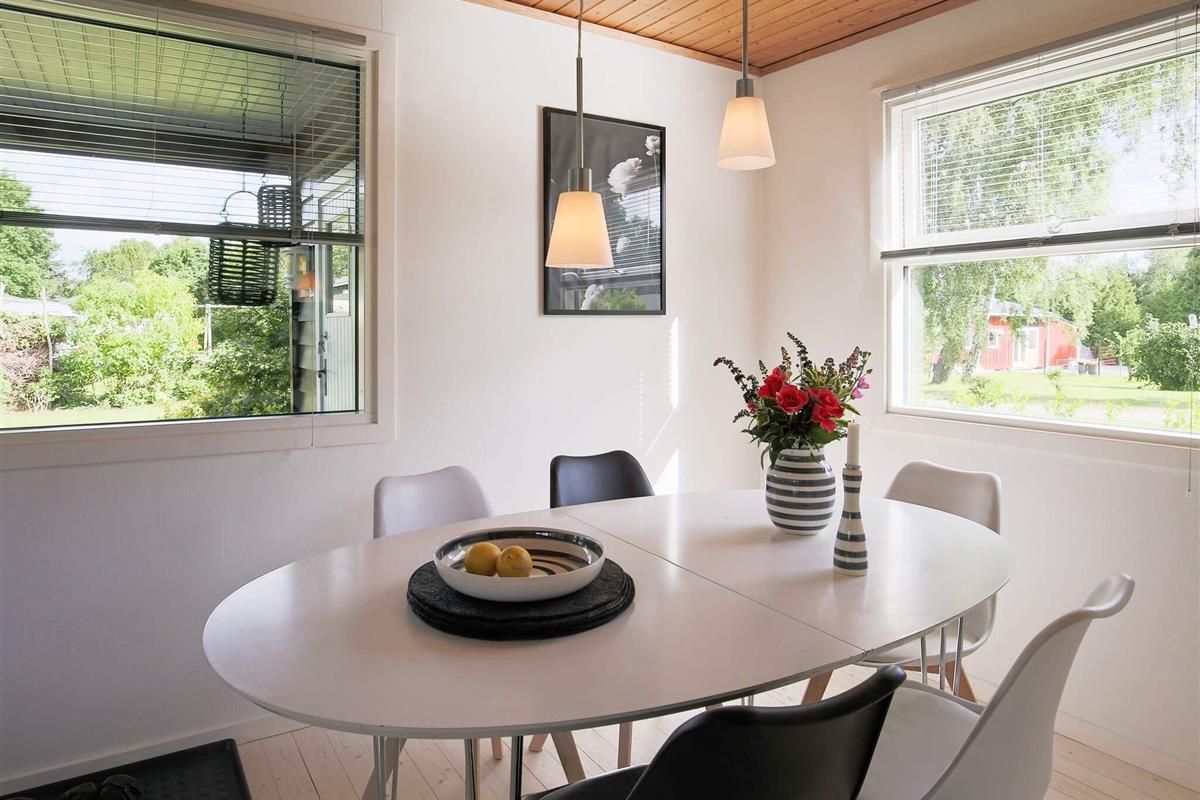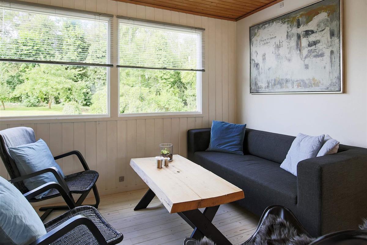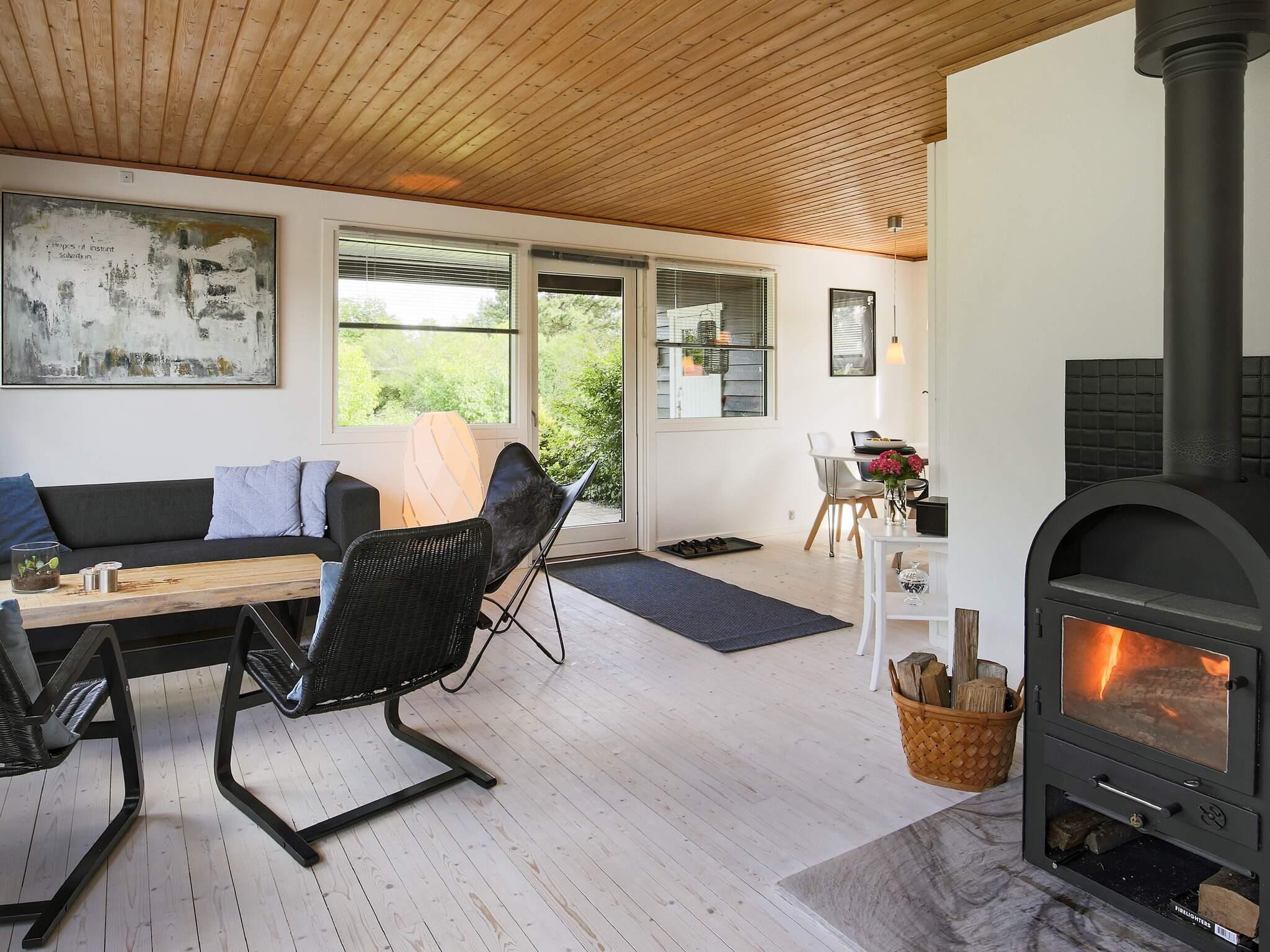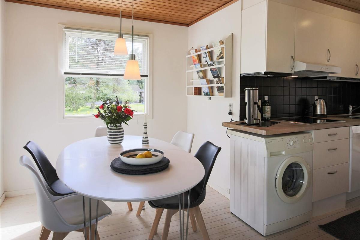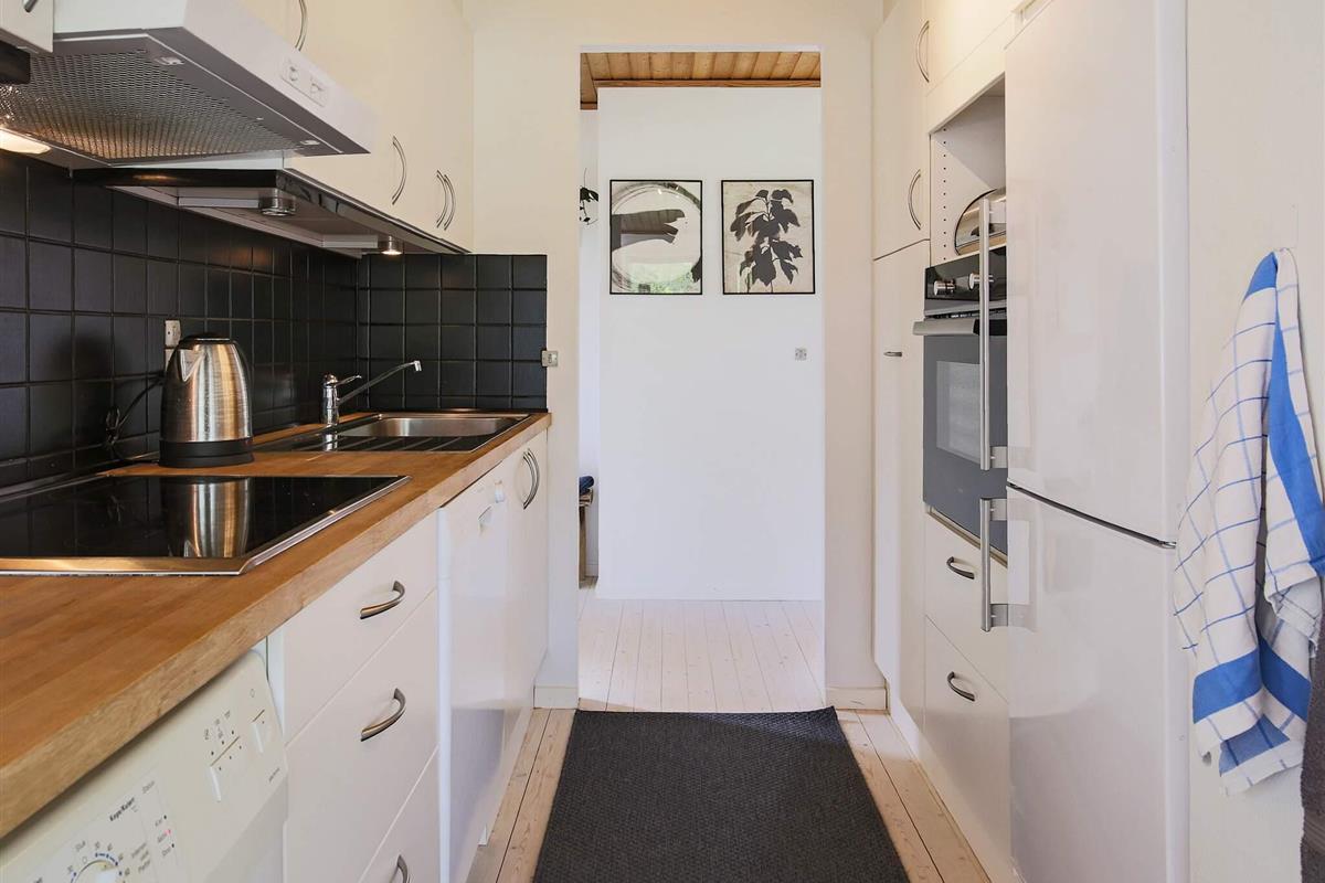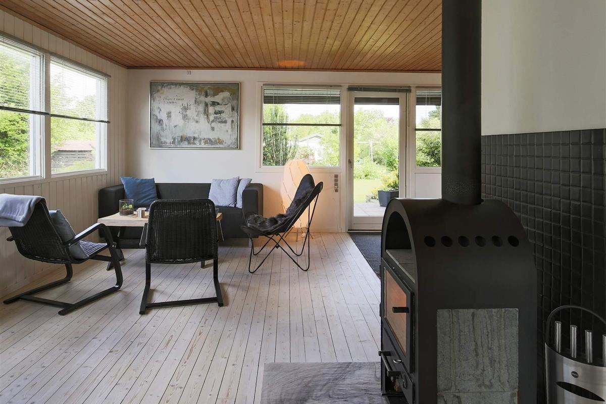 Gut instand gehaltenes Ferienhaus nur etwa 200 m von Meer und Küste bei Dalby Huse. Schöner, offener Küchen-/Wohnbereich für das Familienleben im Haus mit überwiegend hellem Interieur und direktem Zugang zur großen, teilweise überdachten Terrasse. Zudem modernes Badezimmer und zwei Schlafzimmer im Haus: eines mit Doppelbett, das zweite mit doppelter Schlafcouch.