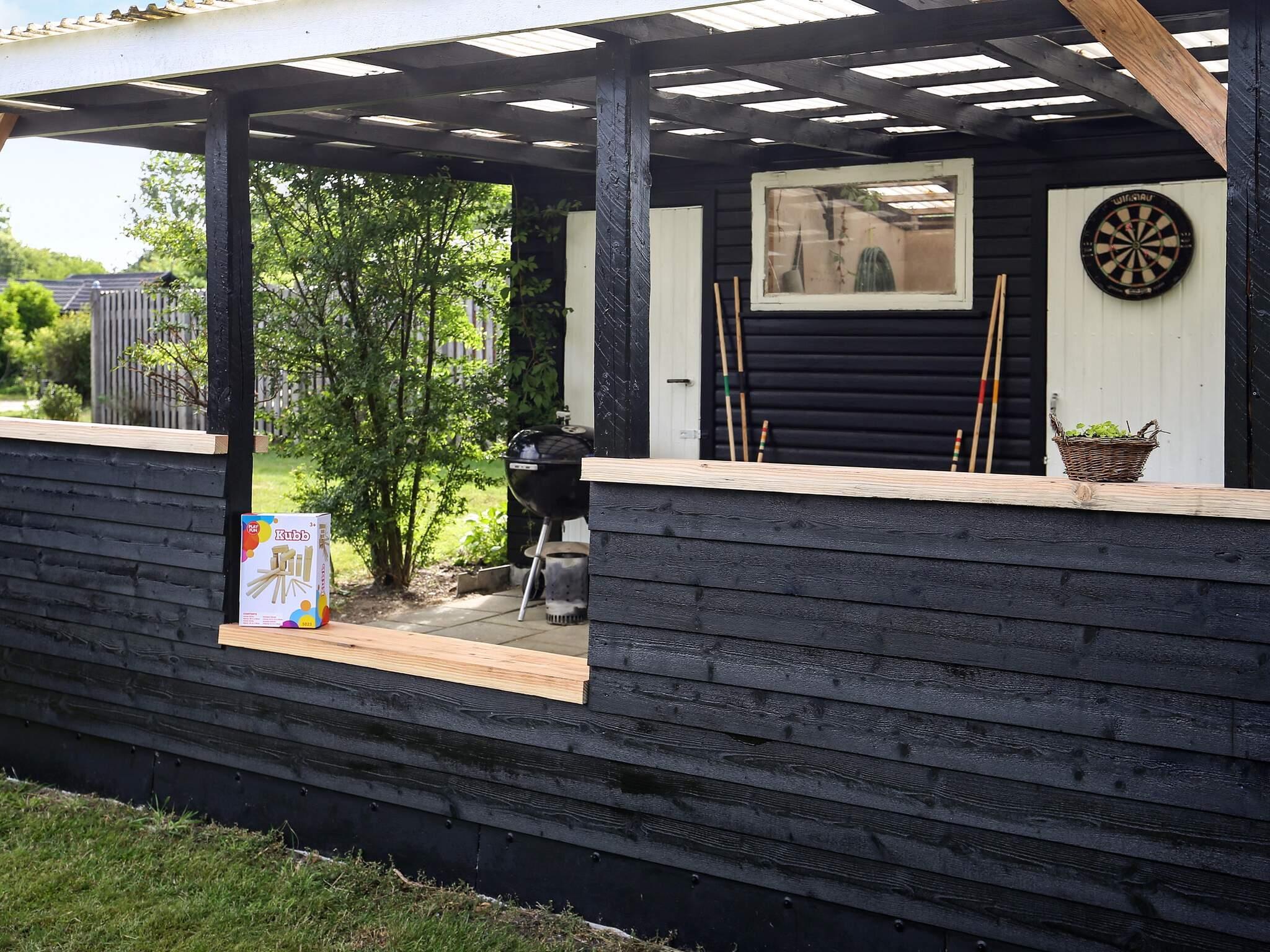 Nebenan steht ein abgeschlossener Annex (nicht Teil des Mietumfangs) mit großer, überdachter Veranda, auf der Tischtennis, Billard und Darts gespielt werden kann. Hier kann auch der Grillabend stattfinden. Auf dem großen, schön angelegten Rasengrundstück befindet sich zudem eine Feuerstelle für ein Lagerfeuer und vier Fahrräder.