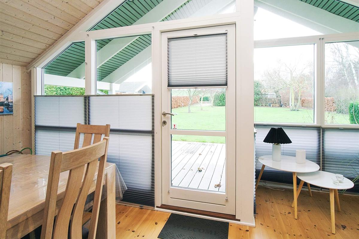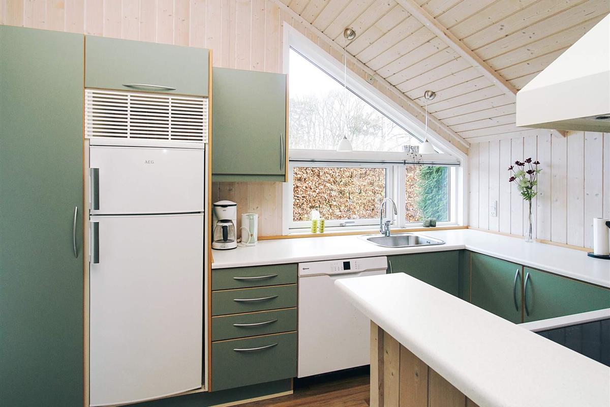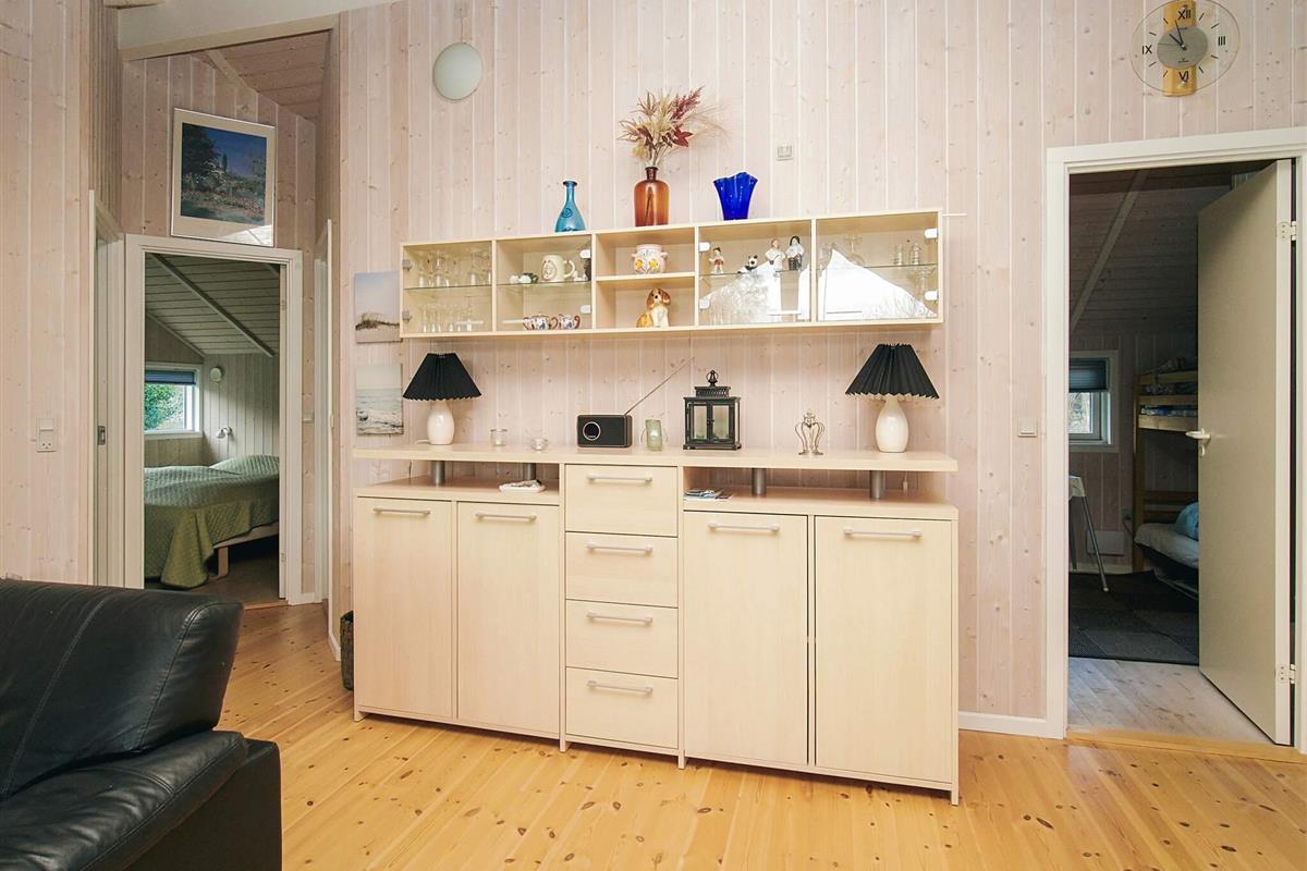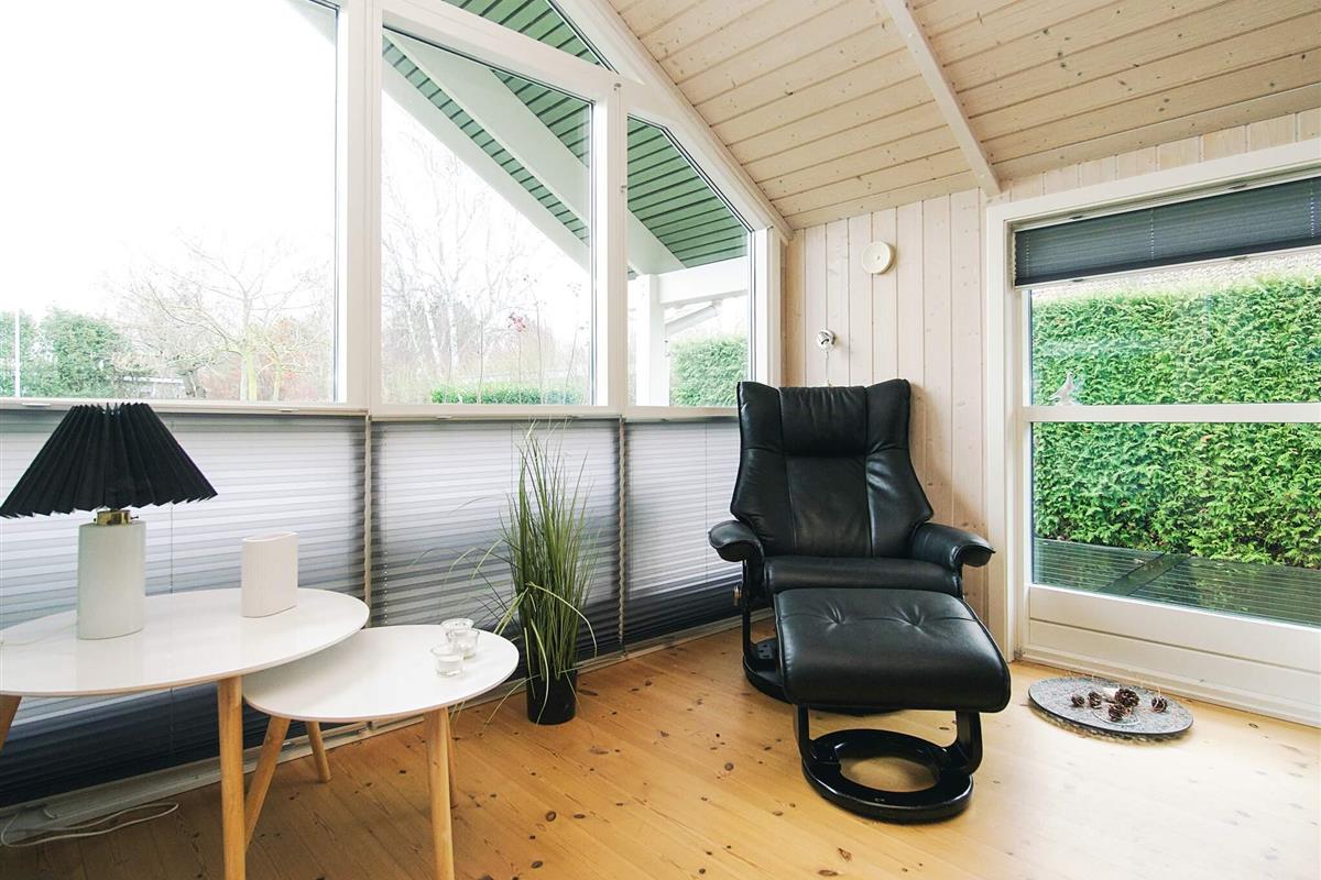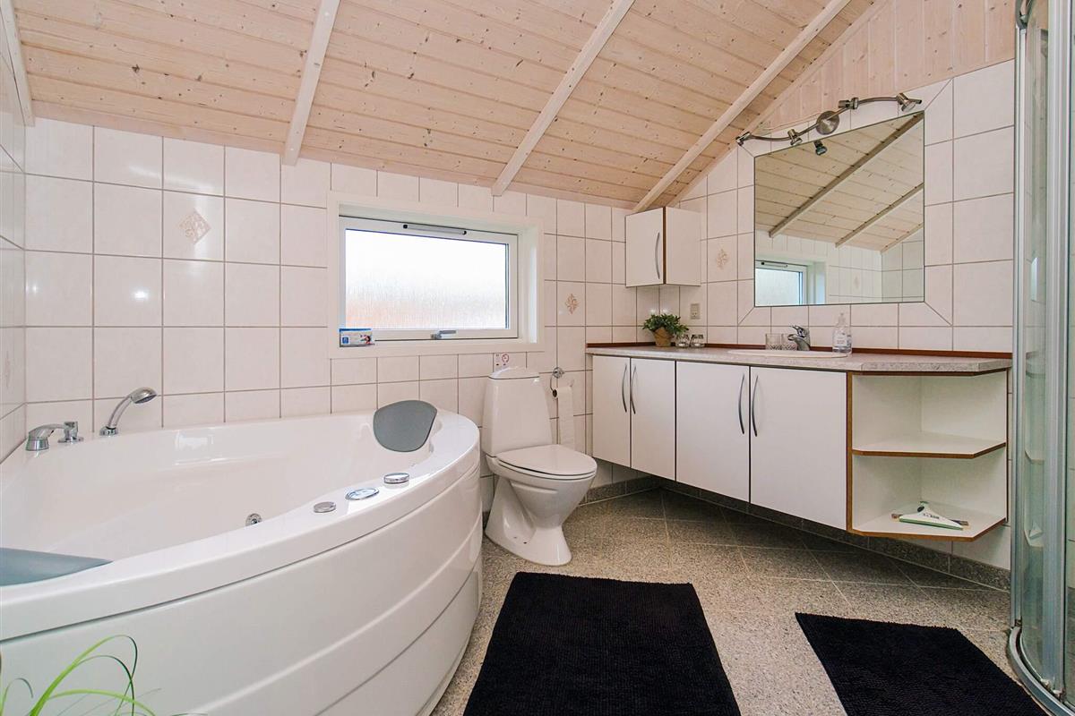 Ferienhaus mit Whirlpool, gelegen auf einem Naturgrundstück nur ca. 200 m vom Meer bei Dalby Strand entfernt. Zum Haus gehören offene und überdachte Terrassenflächen mit Gartenmöbeln. Die Wände und Decken sind mit hellem Holz verkleidet. Große Fenster im Wohnraum lassen viel Tageslicht herein. Es gibt Holzfußböden, teils mit losen Teppichen. Bad mit Fußbodenheizung, Whirlpool und Dusche. Die Küche ist modern und gut ausgestattet und offen im Wohnraum integriert. Zur Ausstattung zählen u.a. Gefrierschrank, Spülmaschine, Mikrowelle, Warmluftofen, Ceranfeldherd, Klimaanlage, TV, Video, Stereoanlage und CD-Player. In der Waschküche steht eine Waschmaschine bereit.