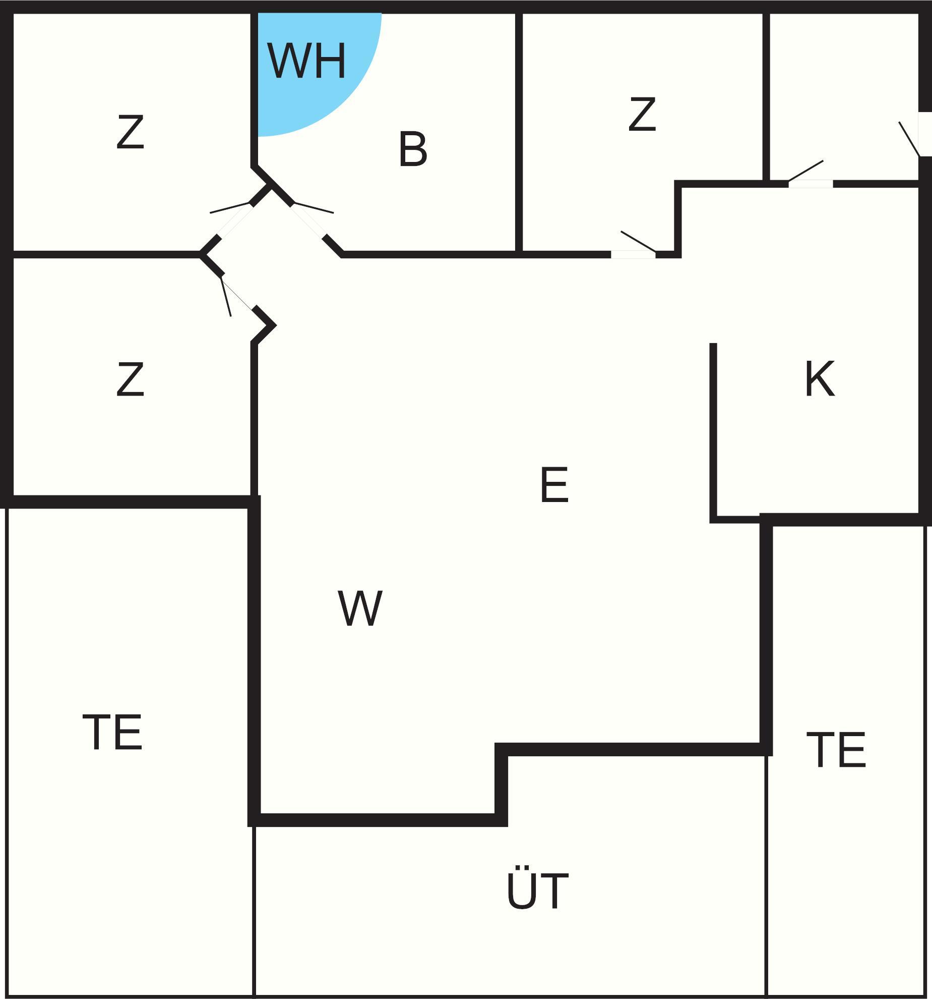Bad: WC, Waschb., Dusche, Fußbodenheiz.