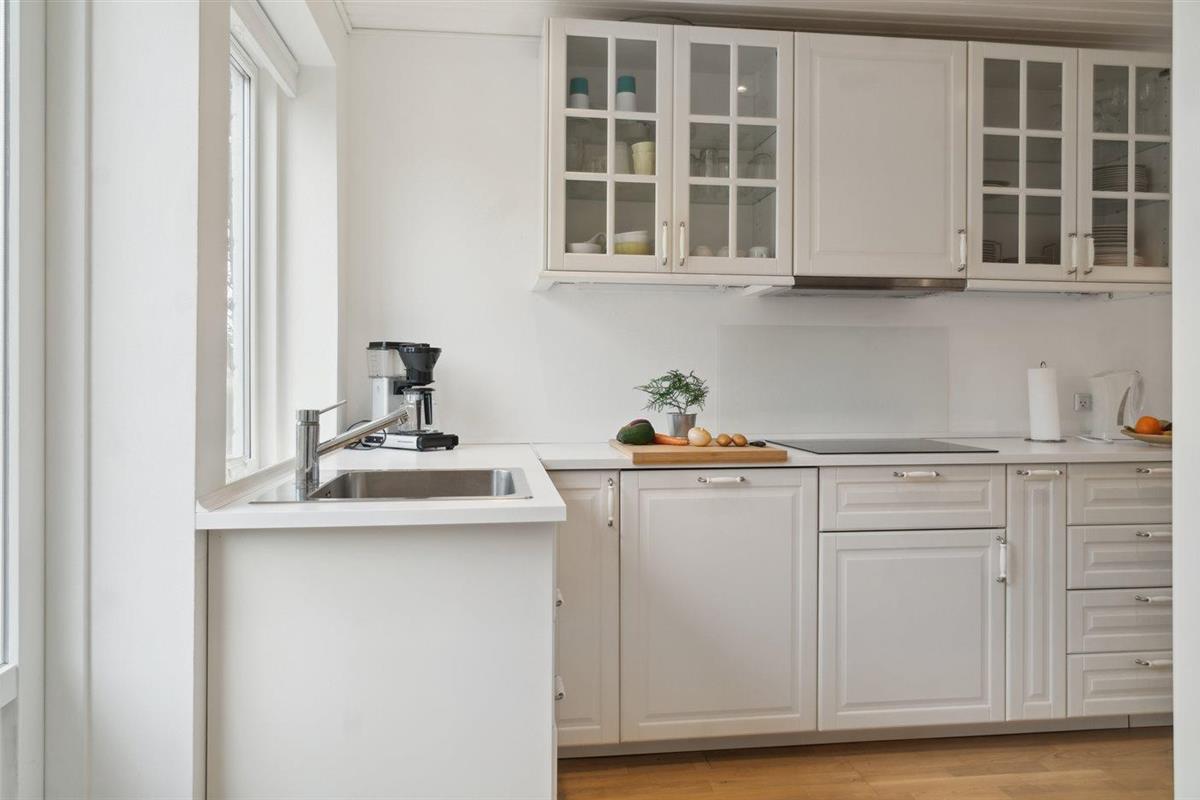 De keuken is uitgerust met koelkast Er is 4 inductiekookplaten, heteluchtoven, magnetron en vaatwasser.