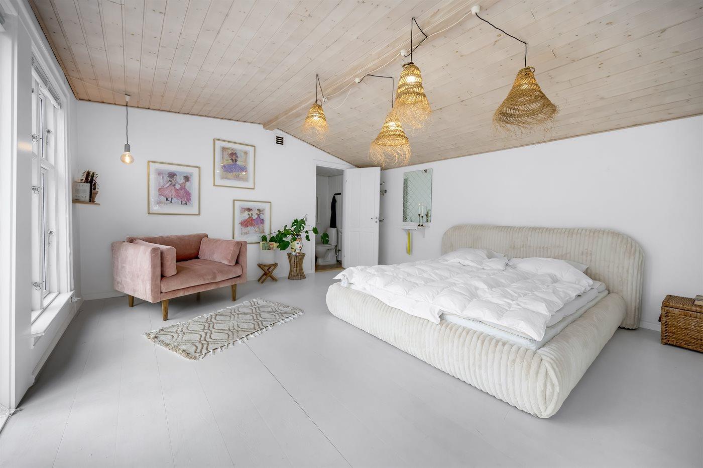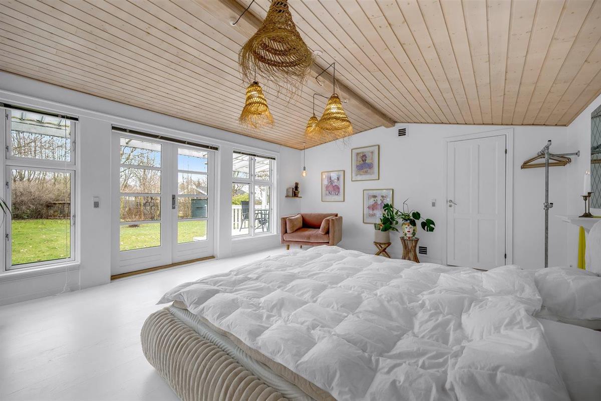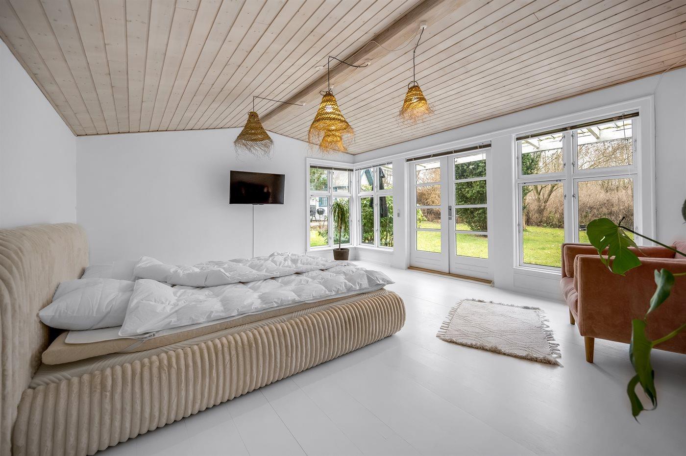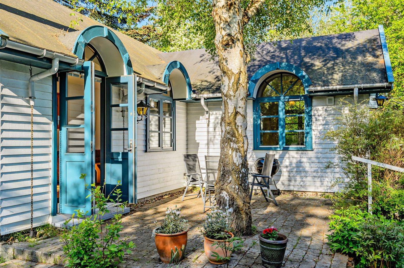 Geniet van een sfeervol vakantiehuis nabij de zee met sauna en grote tuin in Dalby Strand.