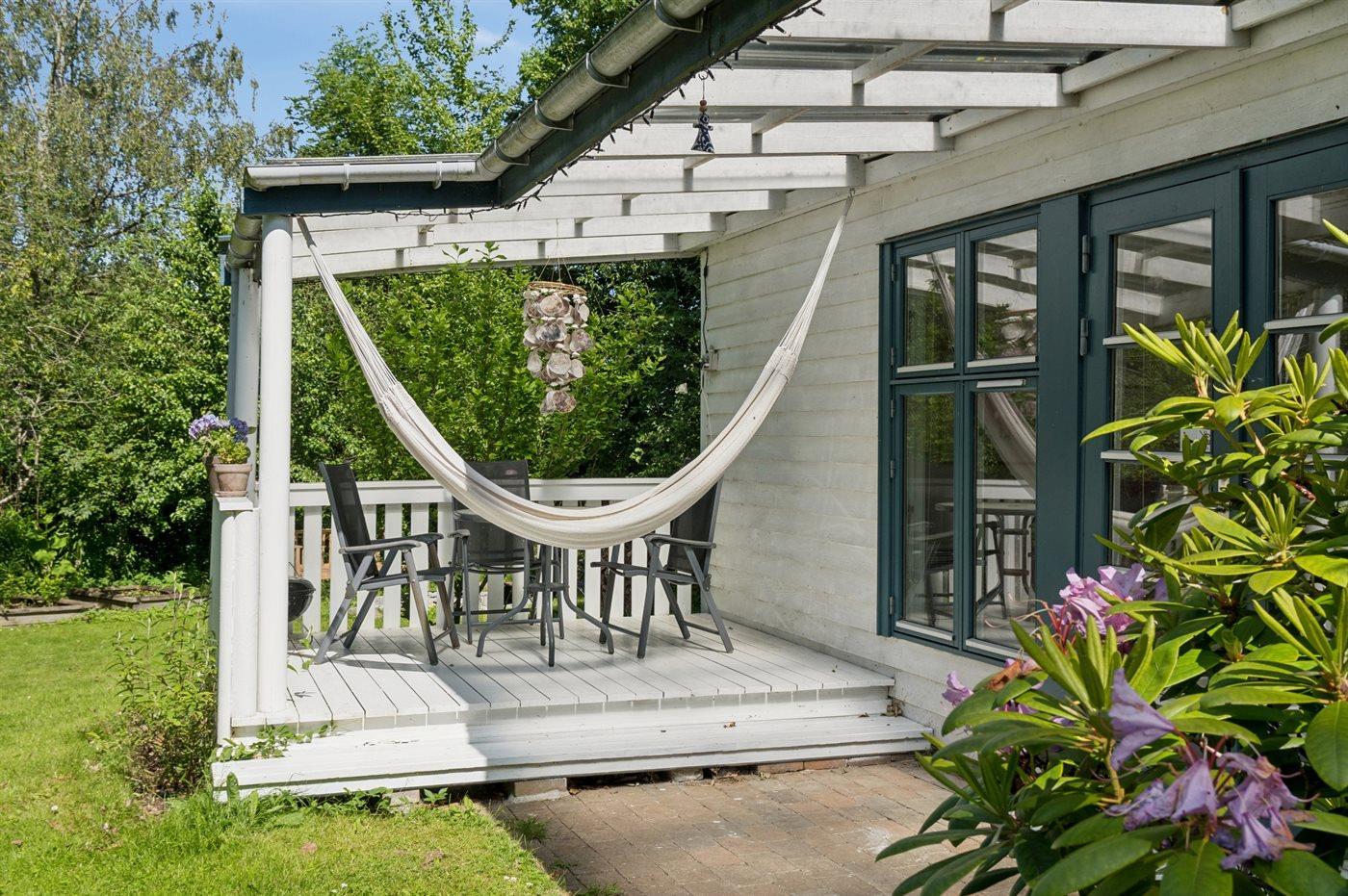 De vakantiewoning is gelegen op een 1284 m² groot aangelegde tuin. Afstand tot de zee 325 m. Dichtstbijzijnde winkel 5700 m. Er is een golfbaan op een afstand van 19400 m. Bij de vakantiewoning hoort 50 m² terras. Daarnaast is er een 12 m² groot overdekt terras. Buitensauna. Barbecue. Parkeerplaats bij het huis.