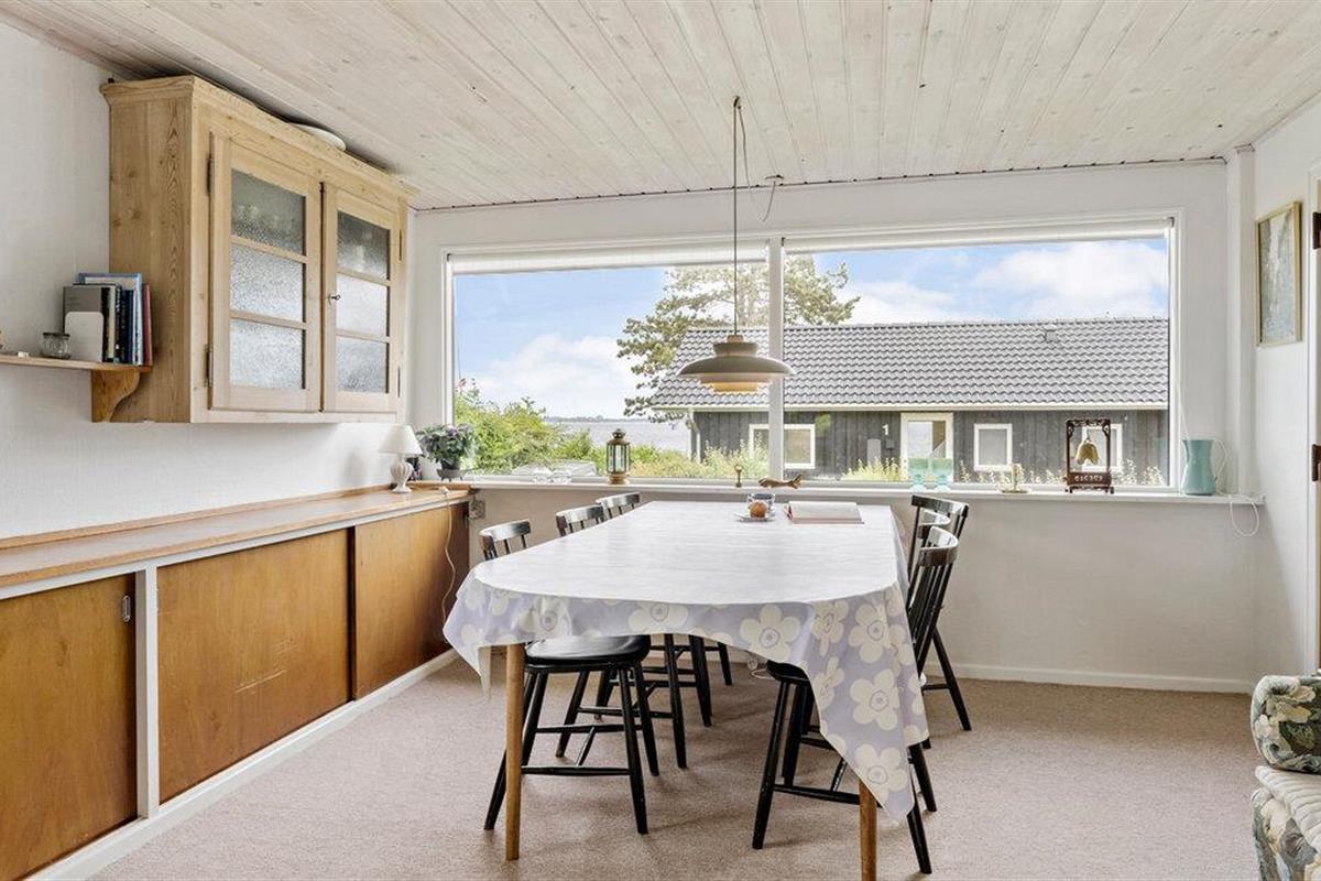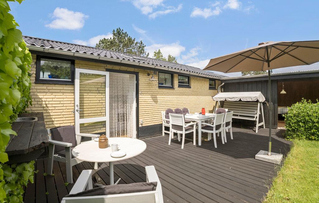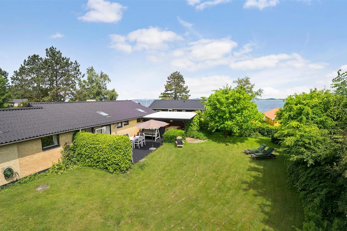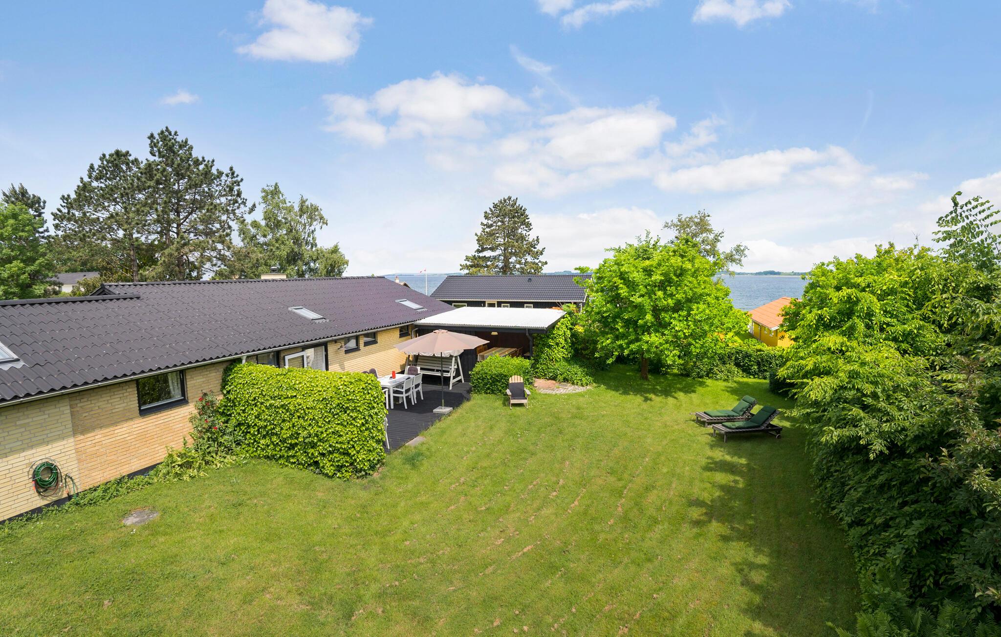 Ontspan in een charmant vakantiehuis aan de rustige Dalby Baai met uitzicht op zee en een groot terras.