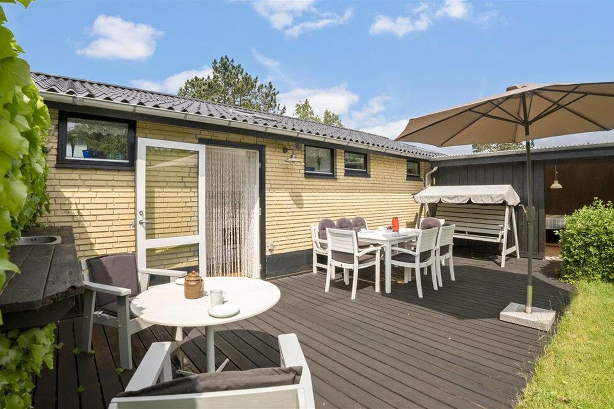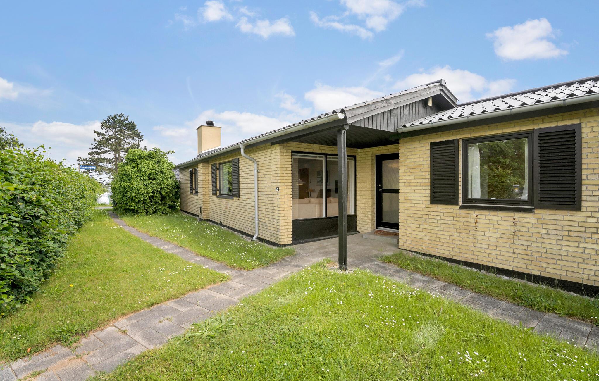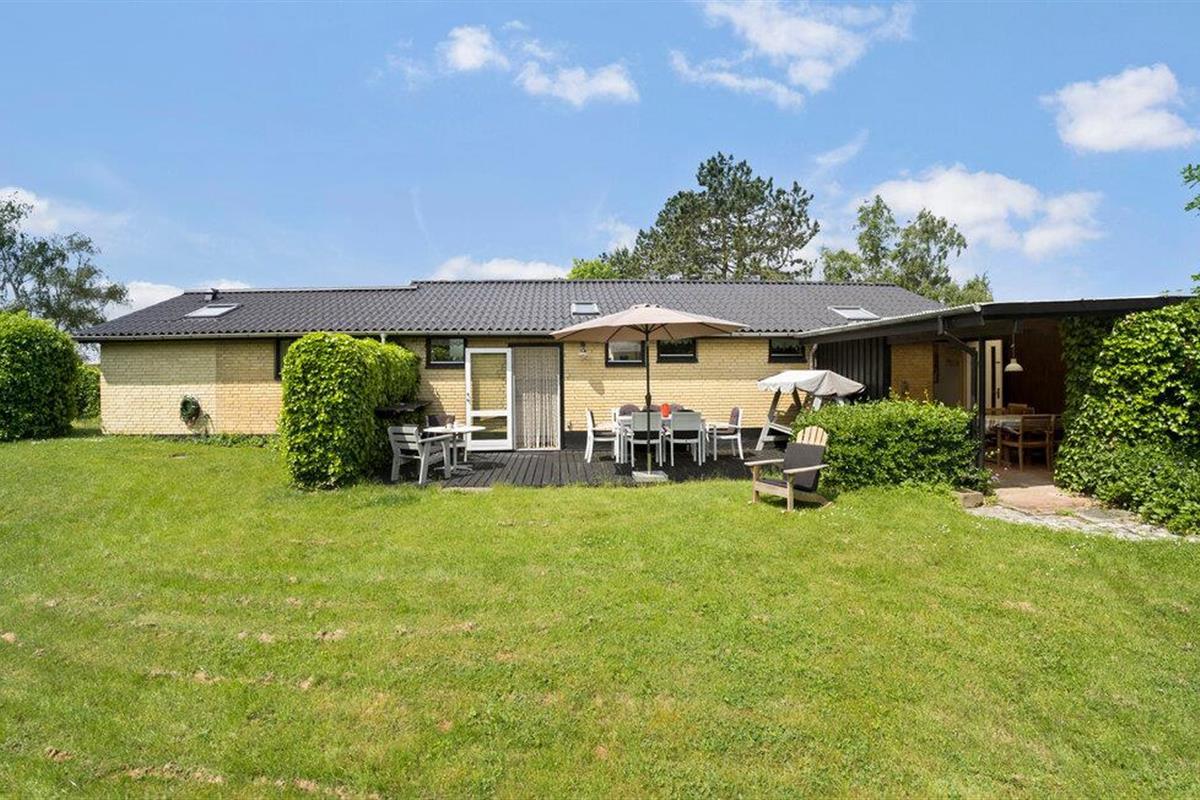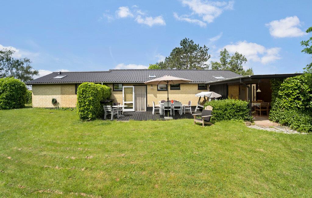 Ontspan in een charmant vakantiehuis aan de rustige Dalby Baai met uitzicht op zee en een groot terras.