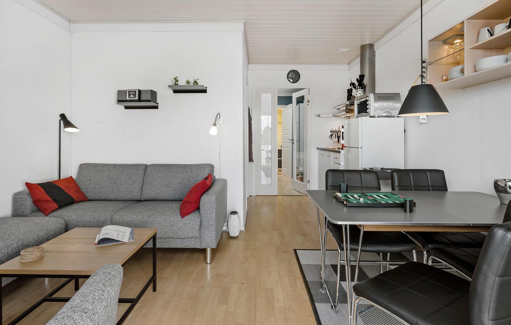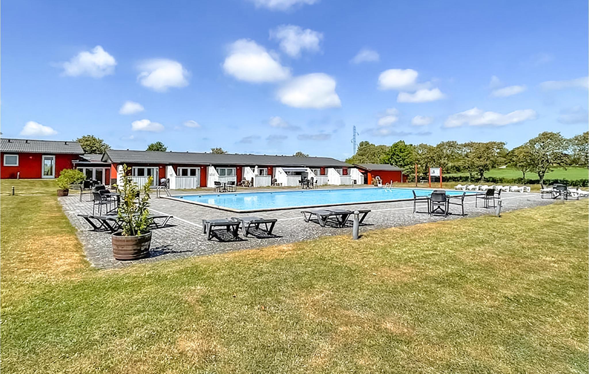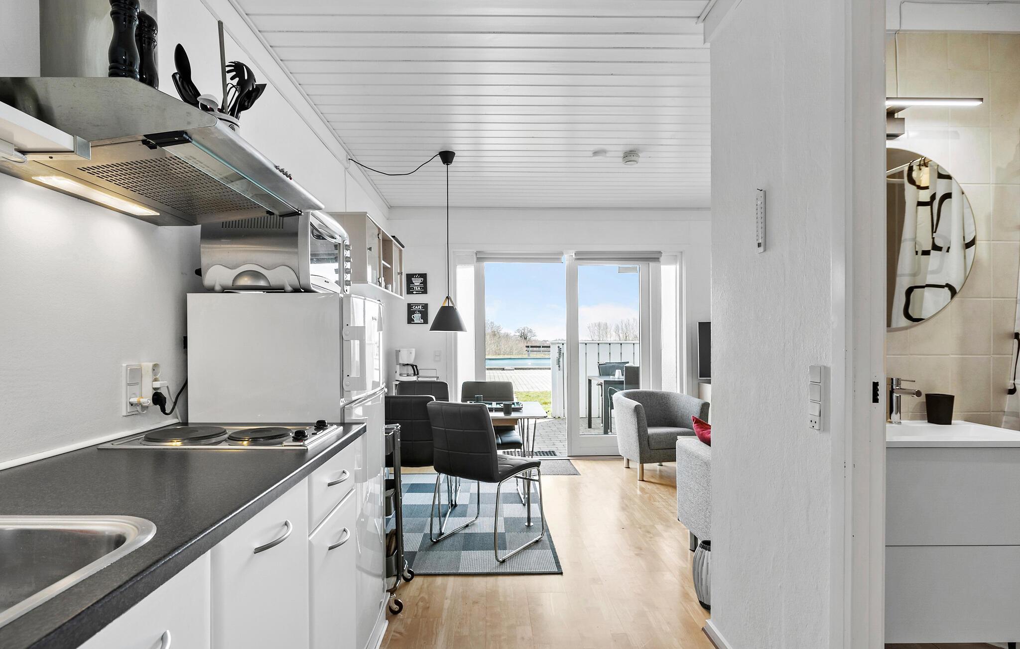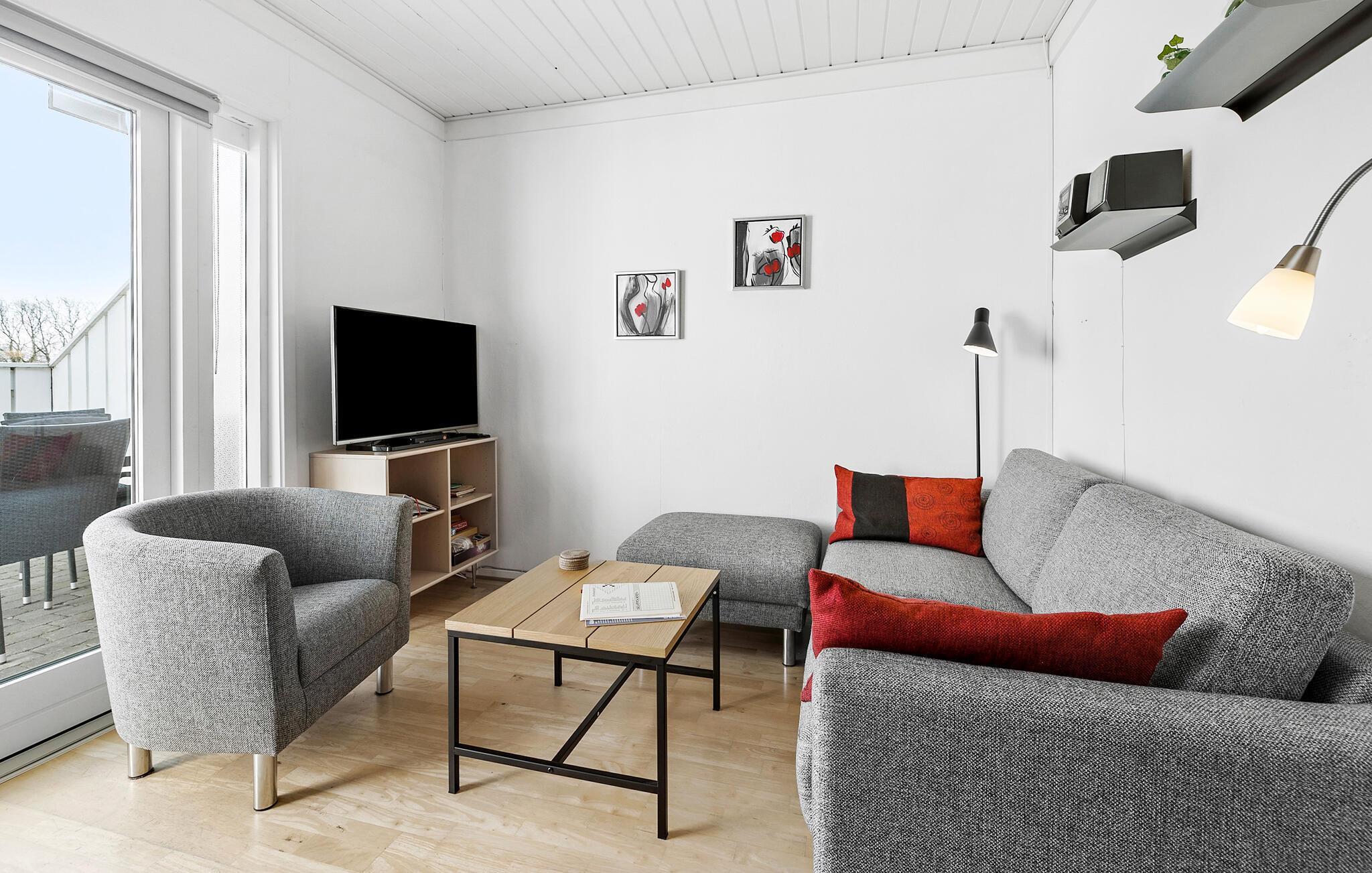 Deze mooie flat met 2 slaapkamers en ruimte voor 4 personen maakt deel uit van het vakantiecomplex Dams på Bakken, dat onder andere een groot buitenzwembad met ondiep gedeelte, een grote trampoline, schommels, zandbak, kampvuurplaats, jeu de boules baan en voetbalveld biedt. De flat heeft een gezellige woonkamer met TV/DVD en radio/CD. De open keuken is uitgerust met een mini-oven, vriezer, elektrisch fornuis (2 platen), afzuigkap en eethoek. De badkamer heeft comfortabele vloerverwarming. Gratis Wi-Fi (snel en onbeperkt) maakt vermaak binnenshuis mogelijk. Op het privéterras met luifel kunt u ontspannen in comfortabel tuinmeubilair en heerlijke vakantiemaaltijden bereiden op de barbecue. Het is slechts een paar meter naar het zwembad, waar u op elk moment een verfrissende duik kunt nemen.