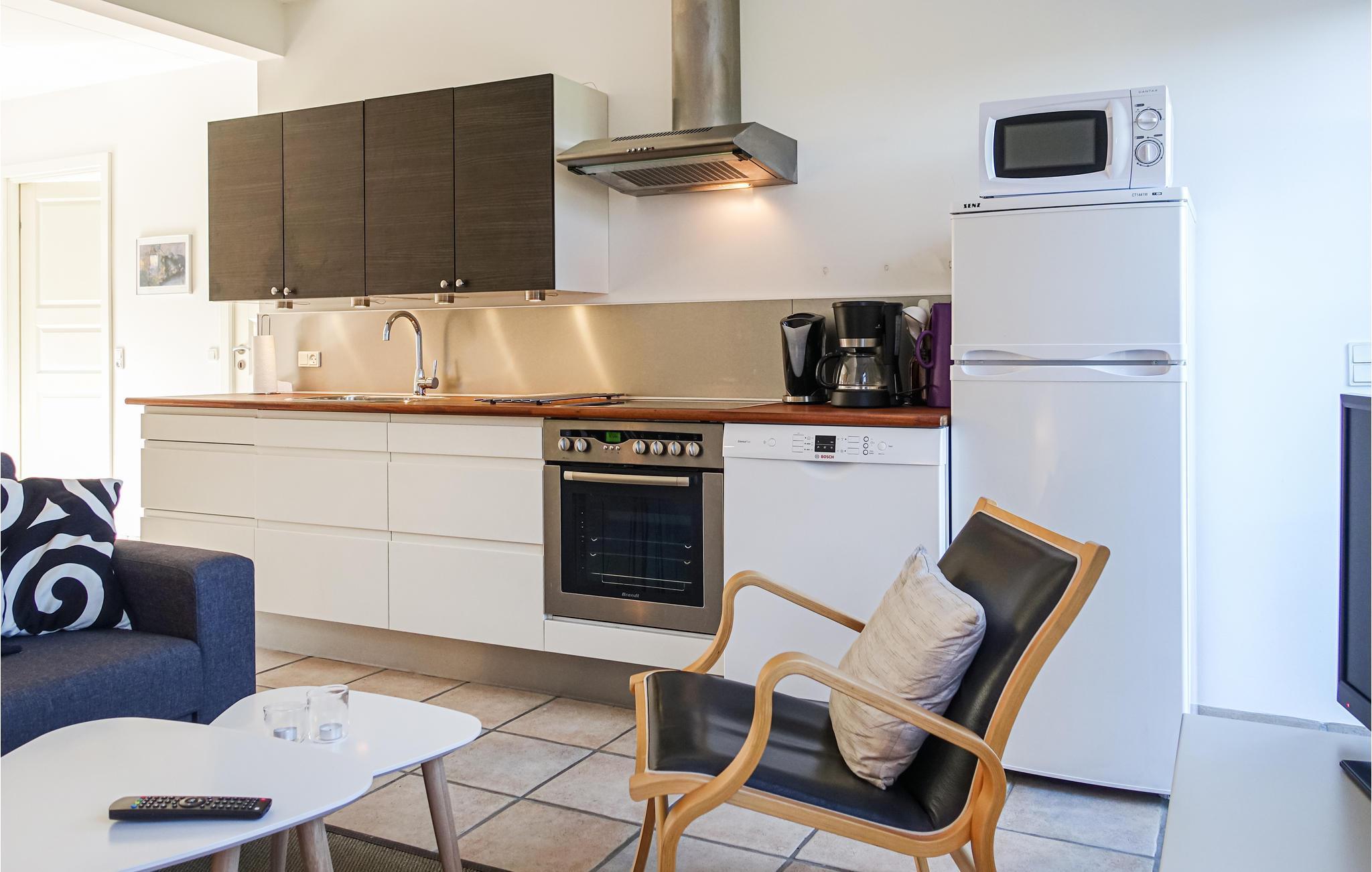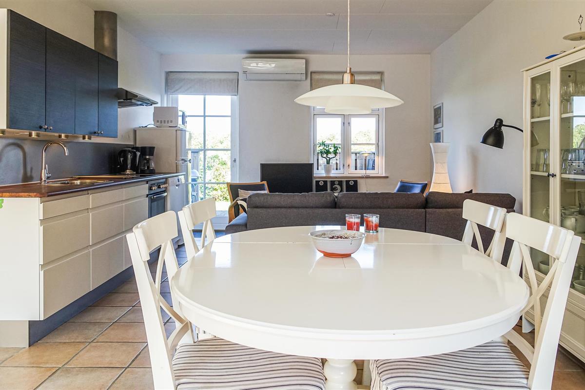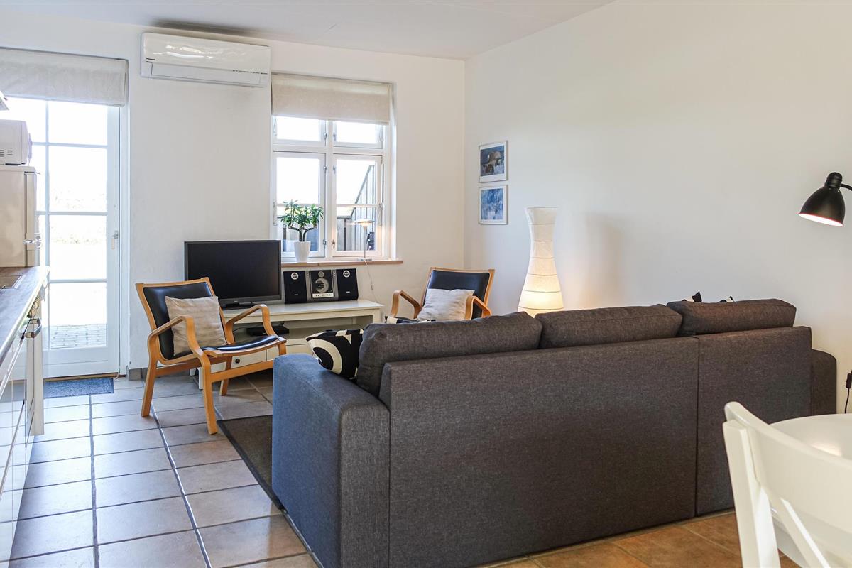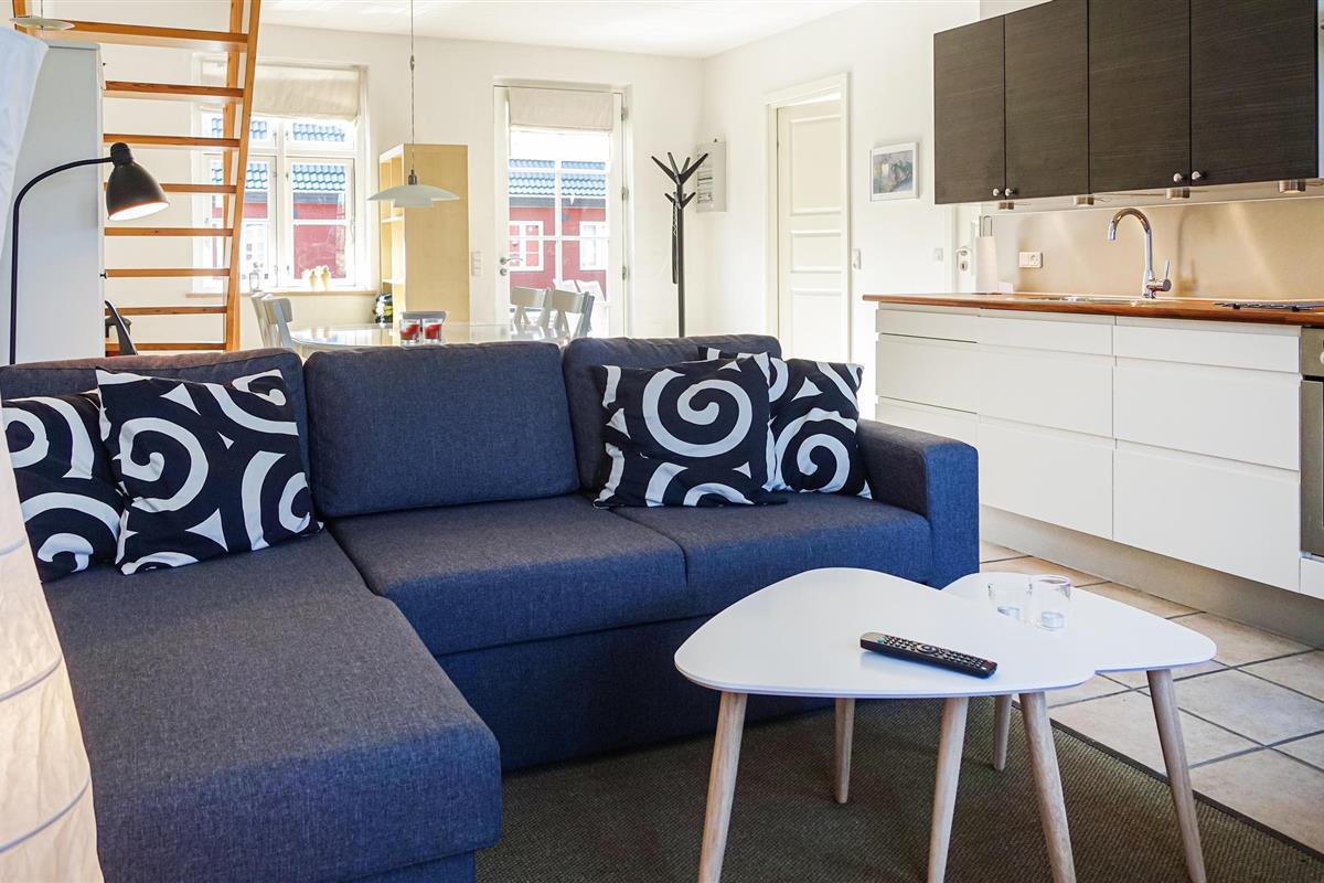 Dit mooie appartement is geschikt voor maximaal 4 gasten dankzij twee slaapkamers en een slaapbank voor twee personen van 140 cm in de woonkamer. Het appartement maakt deel uit van het vakantiecomplex Dams på Bakken, met een groot buitenzwembad met ondiep gedeelte, een grote trampoline, schommels, zandbak, kampvuurplaats, jeu de boulesbaan en voetbalveld. De flat is van hoge kwaliteit en heeft vloerverwarming op de hele begane grond, inclusief de woonkamer en keuken. In de mooie woonkamer is er TV/Chromecast/DVD en radio/CD. De open keuken is uitgerust met een vaatwasser, magnetron, keramische kookplaat, afzuigkap en eethoek. Op de begane grond is er toegang tot twee terrassen: Aan de kant van de binnenplaats is er een houten terras met tuinmeubilair en aan de kant van het zwembad is er een terras met tuinmeubilair en barbecue waar je heerlijke vakantiemaaltijden kunt bereiden. De twee slaapkamers bevinden zich op de 1e verdieping. Er is gratis WLAN in het appartement.
