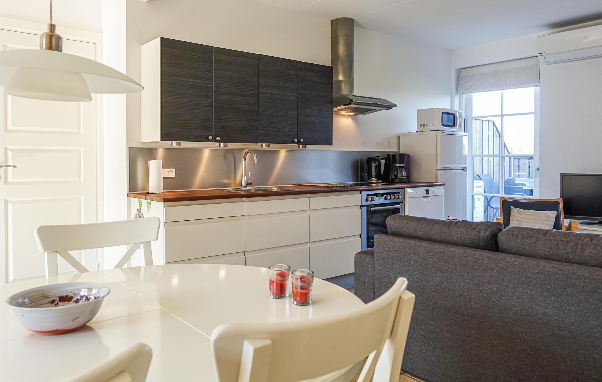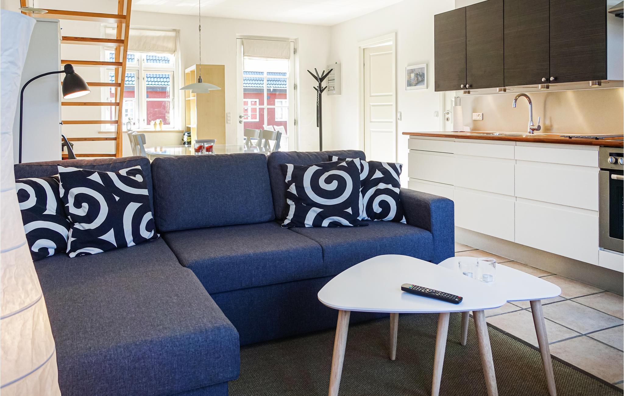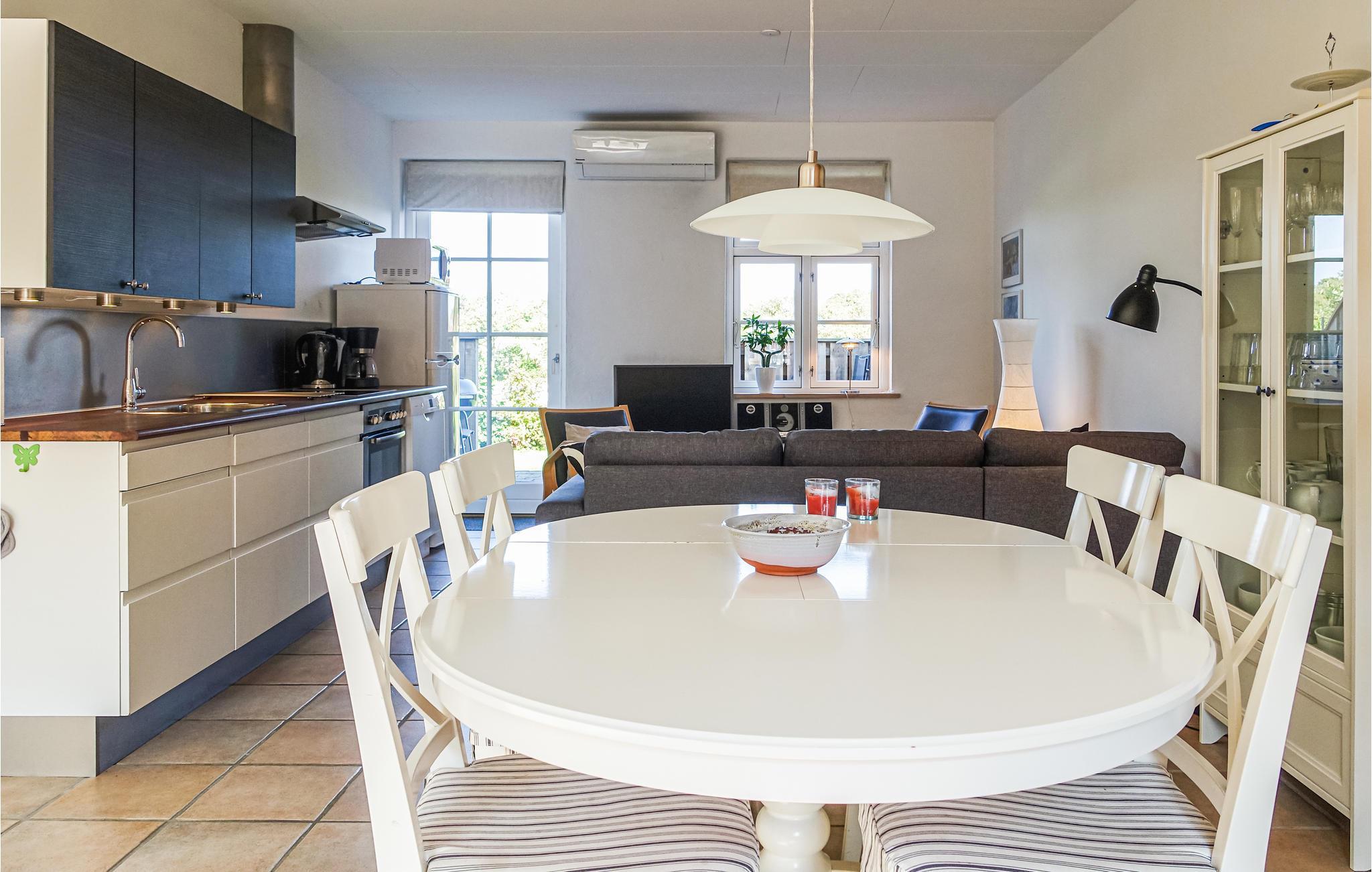 Dit mooie appartement is geschikt voor maximaal 4 gasten dankzij twee slaapkamers en een slaapbank voor twee personen van 140 cm in de woonkamer. Het appartement maakt deel uit van het vakantiecomplex Dams på Bakken, met een groot buitenzwembad met ondiep gedeelte, een grote trampoline, schommels, zandbak, kampvuurplaats, jeu de boulesbaan en voetbalveld. De flat is van hoge kwaliteit en heeft vloerverwarming op de hele begane grond, inclusief de woonkamer en keuken. In de mooie woonkamer is er TV/Chromecast/DVD en radio/CD. De open keuken is uitgerust met een vaatwasser, magnetron, keramische kookplaat, afzuigkap en eethoek. Op de begane grond is er toegang tot twee terrassen: Aan de kant van de binnenplaats is er een houten terras met tuinmeubilair en aan de kant van het zwembad is er een terras met tuinmeubilair en barbecue waar je heerlijke vakantiemaaltijden kunt bereiden. De twee slaapkamers bevinden zich op de 1e verdieping. Er is gratis WLAN in het appartement.
