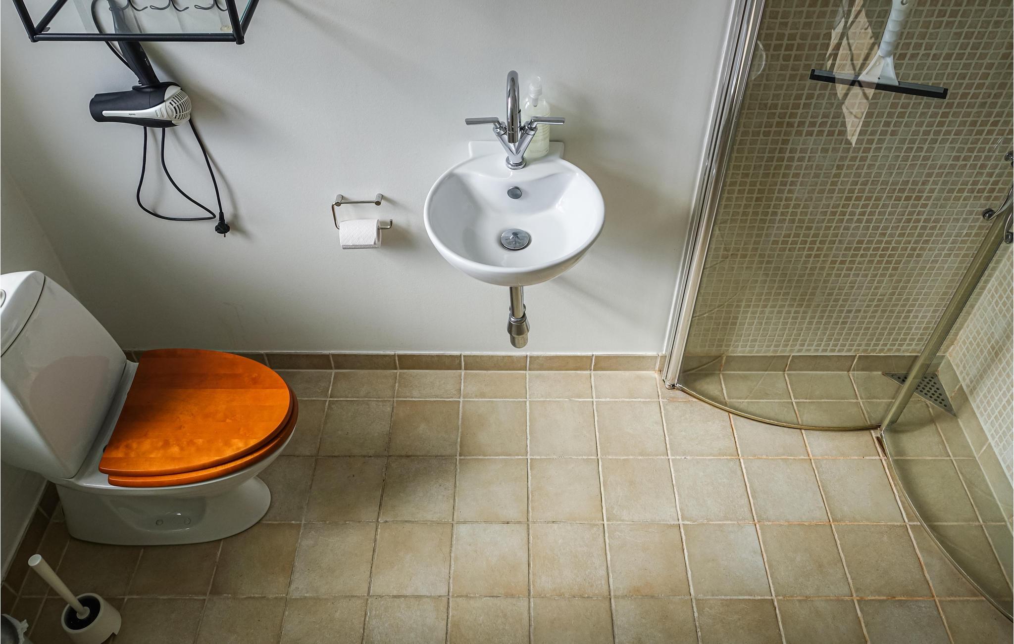 Badkamer (nr. 1) - Toilet: warm en koud water. Douche