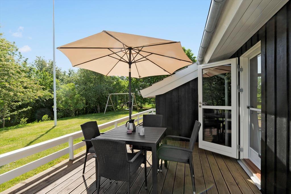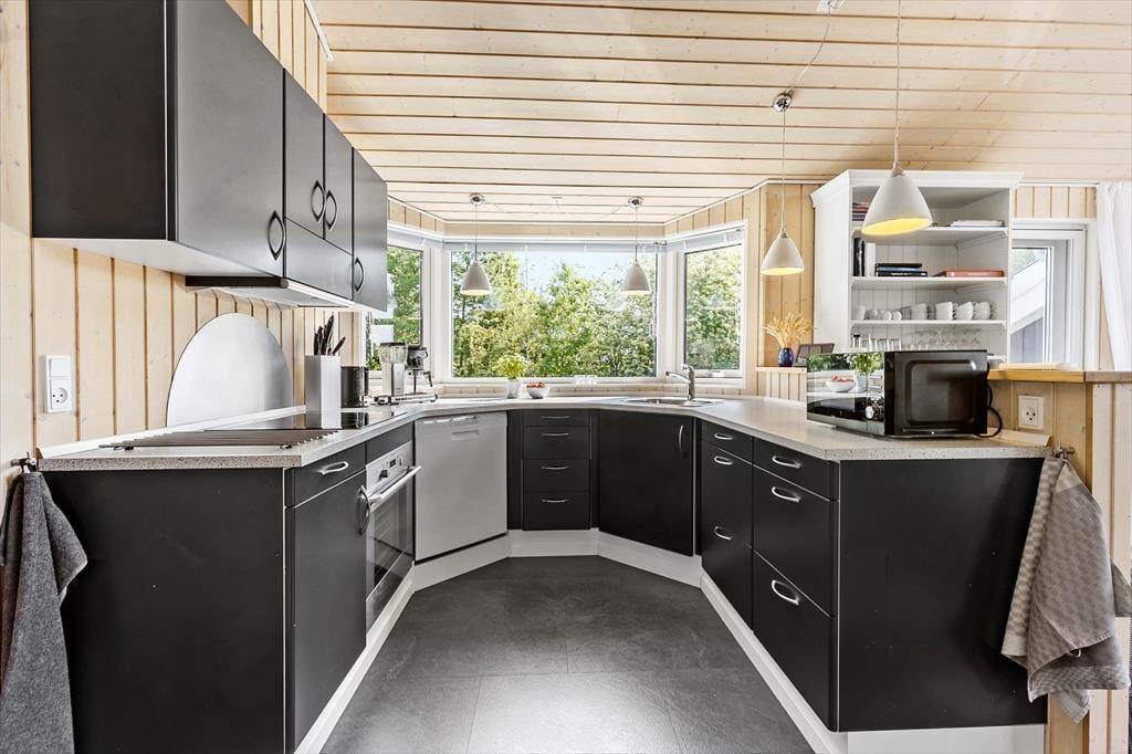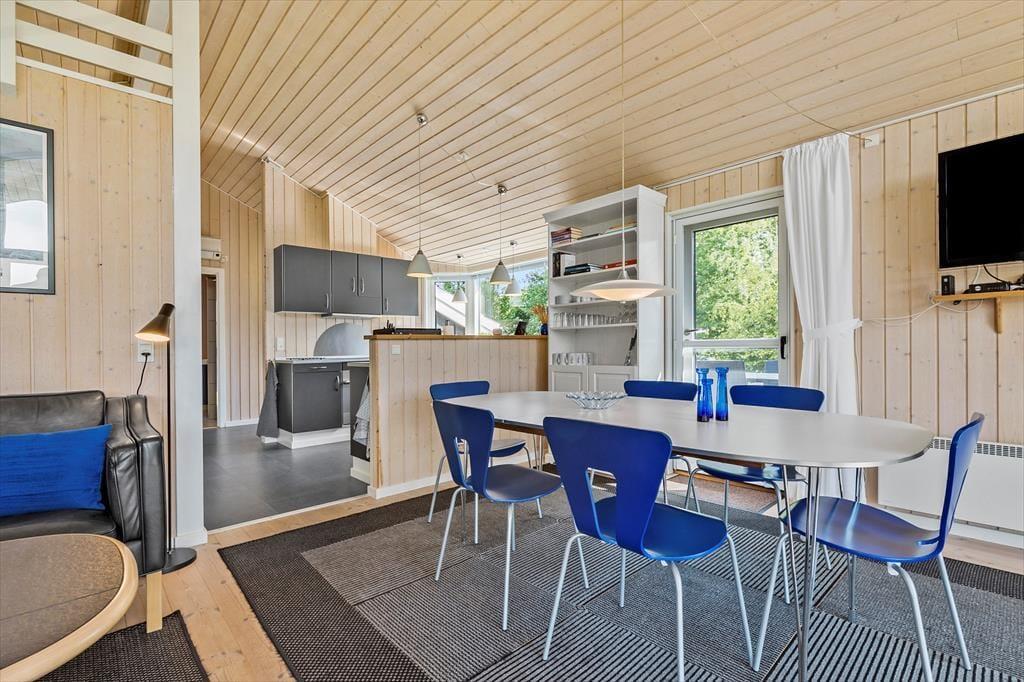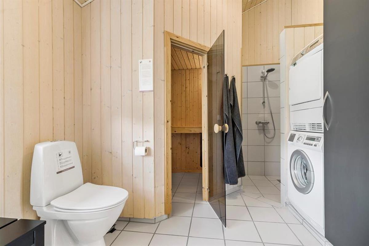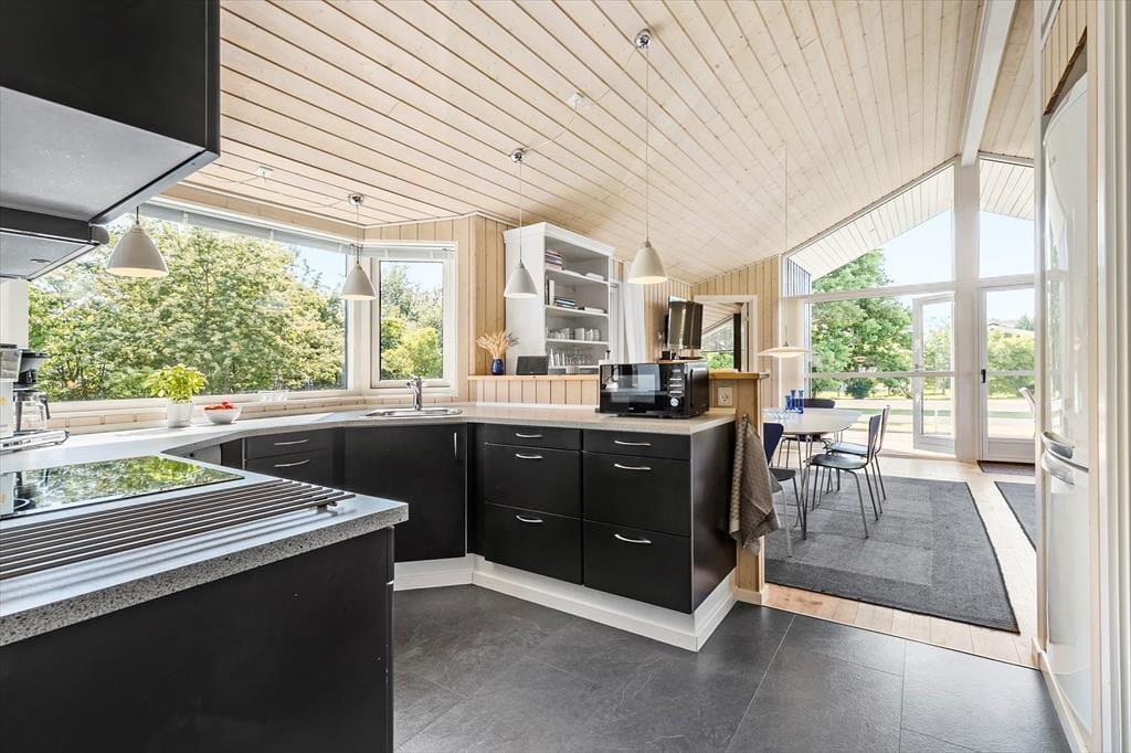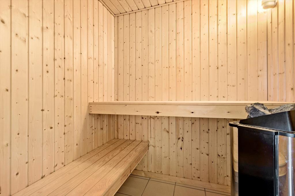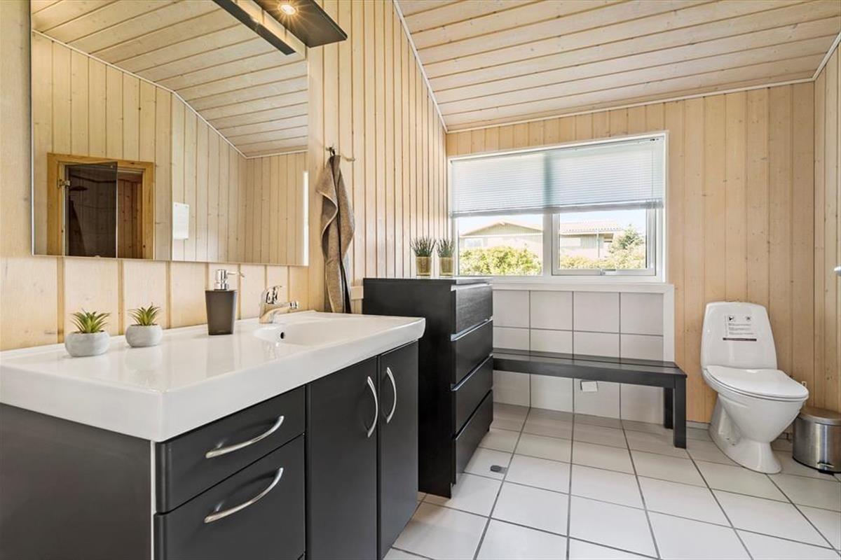 Dein Ferienhaus begrüßt dich mit einem hellen, geräumigen Wohnraum, in dem komfortable Sitzgelegenheiten, ein Fernseher mit dänischen und deutschen Sendern und ein Radio mit einem CD-Player entspannte Stunden versprechen. Der Wohnraum ist offen mit der gut ausgestatteten Küche verbunden, die alles bietet, was du für die Zubereitung der täglichen Urlaubsmahlzeiten benötigst. Zu den zeitgemäßen Annehmlichkeiten in der Küche zählen ein Induktionskochfeld, ein Warmluftofen, ein Geschirrspüler und eine Kühl- und Gefrierkombination. In den drei ansprechenden Schlafräumen können sich alle Mitreisenden nach Herzenslust ausschlafen. Zwei Räume beinhalten jeweils ein Doppelbett. Im dritten Raum stehen zwei Einzelbetten bereit, die bei Bedarf zu einem Doppelbett zusammengeschoben werden können. Zwei moderne Badezimmer mit Dusche und Fußbodenheizung sind ebenfalls vorhanden. Eines der Bäder verfügt über eine Waschmaschine und einen Wäschetrockner und verspricht mit seiner schönen Sauna traumhaft entspannte Momenten nach langen Urlaubstagen. Zu den eher praktischen Details zählen eine Wärmepumpe und Elektroheizkörper.