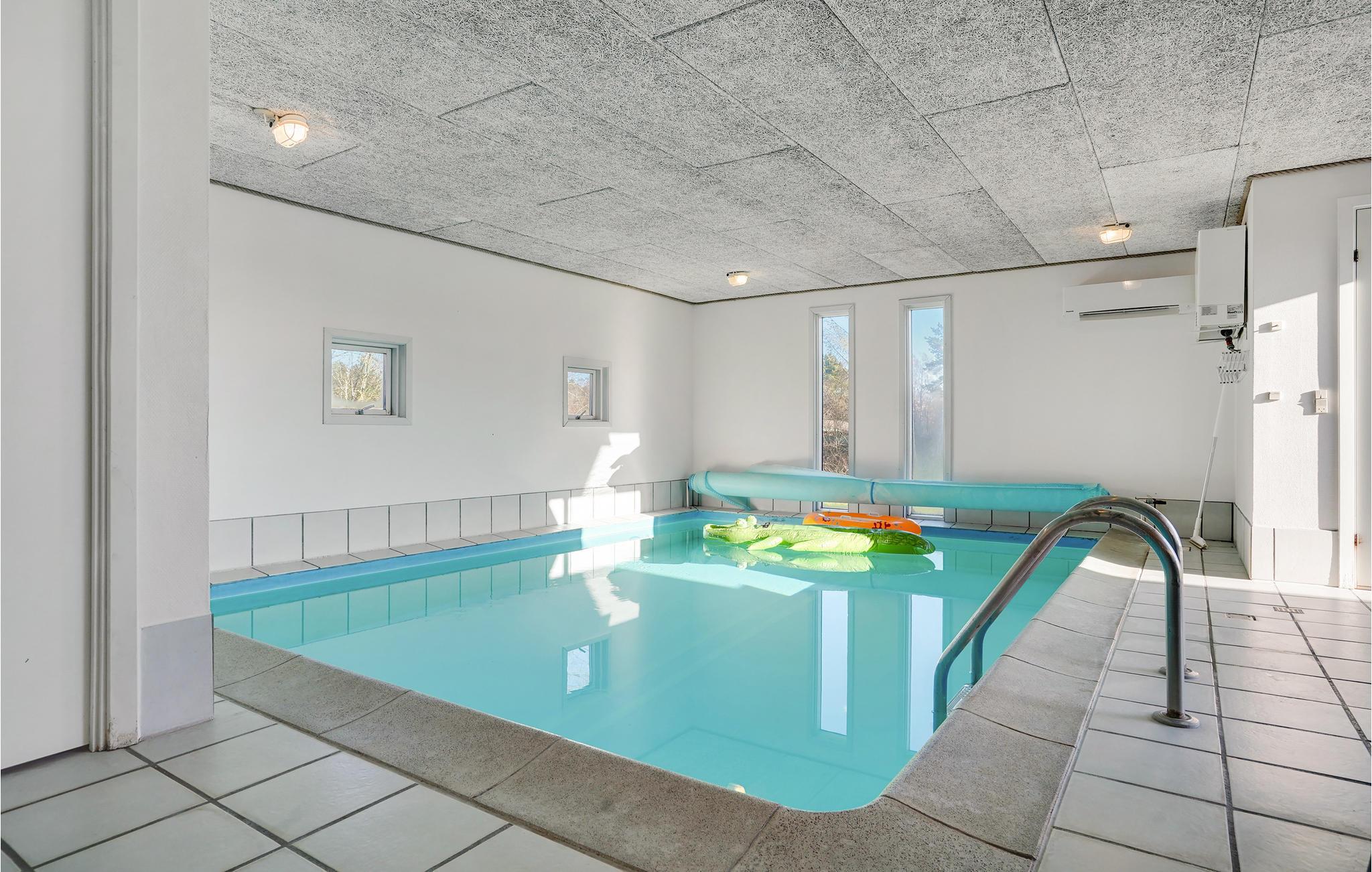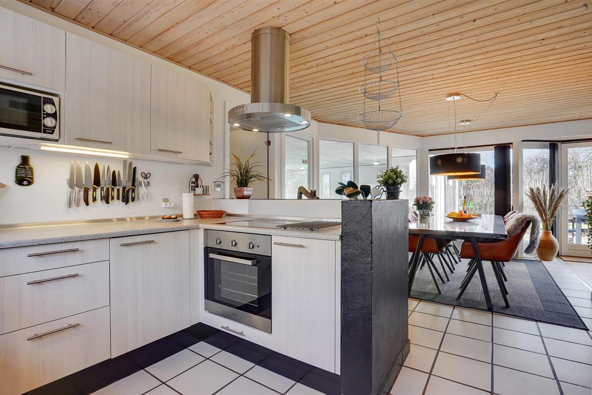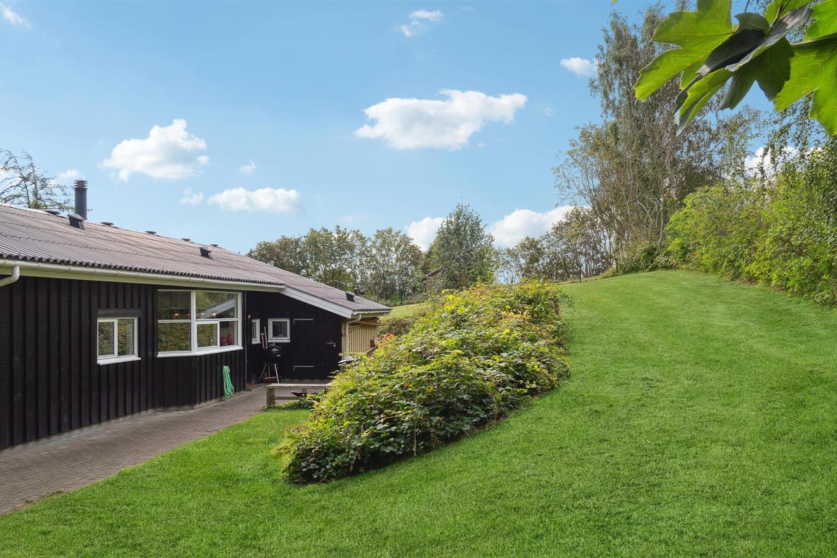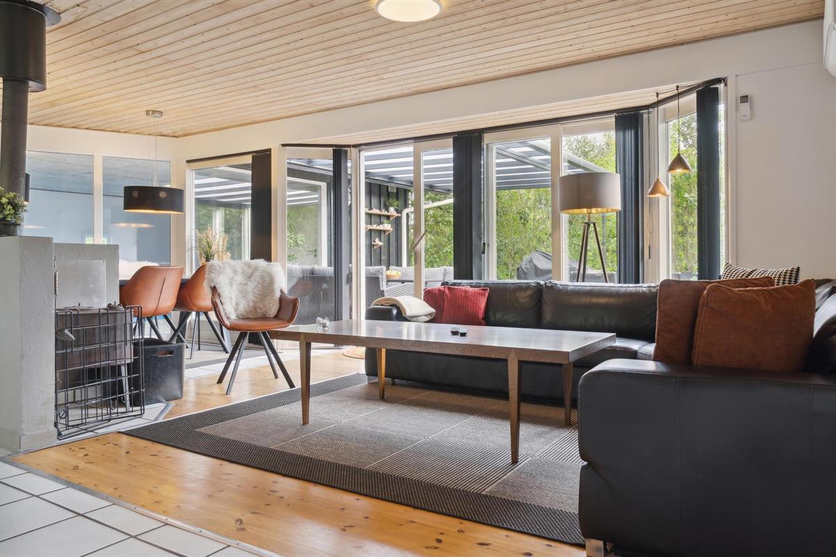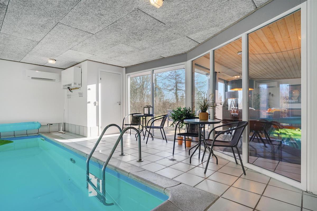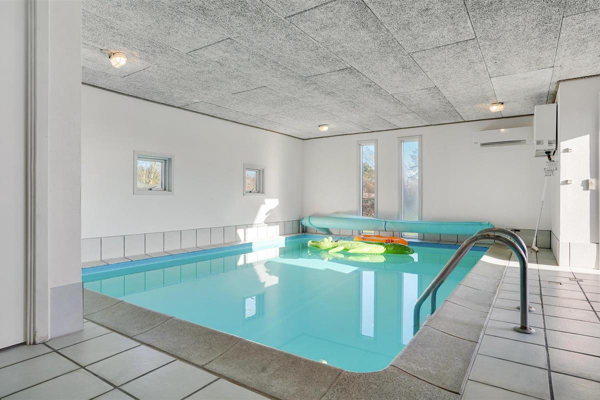 Goed onderhouden en mooi ingericht houten vakantiehuis gelegen in een mooie, heuvelachtige omgeving. Veel activiteitsmogelijkheden in de omgeving, zoals wandelen, vissen, surfen en zwemmen. Verder is het niet ver naar een gezellige jachthaven, winkelmogelijkheden en diverse, grotere plaatsen. Het huis is licht en mooi ingericht met onder andere een zwembadgedeelte waar u kunt ravotten in het 20 m² grote zwembad. Het zwembad wordt verwarmd met een Wørmepumpe. Een groot raam vooraan tussen de woonkamer en het zwembad zorgt voor veel licht en zicht op uw badende kinderen. De woonkamer met houtkachel en flatscreen-tv is verbonden met de goed uitgeruste keuken, die is ingericht met alle huishoudelijke apparaten. Perfect vakantiehuis voor twee gezinnen.