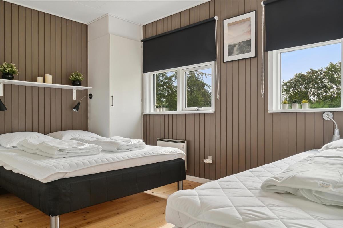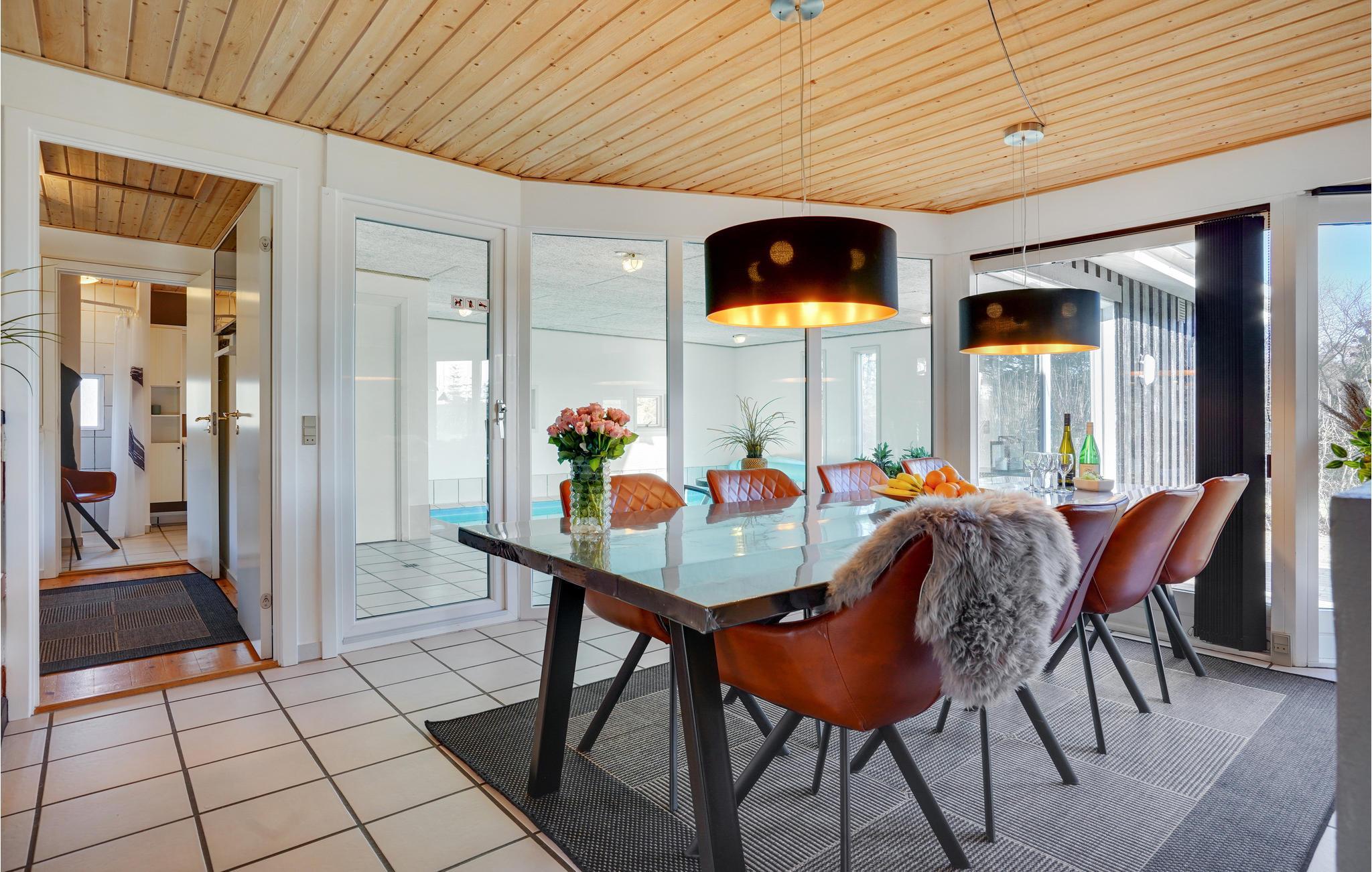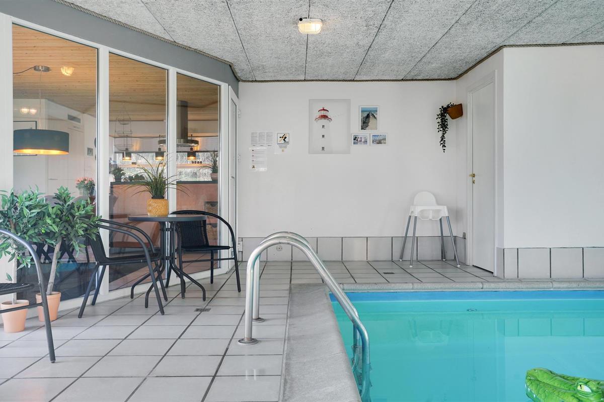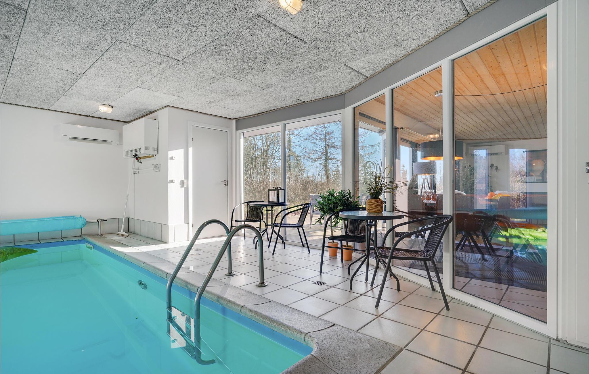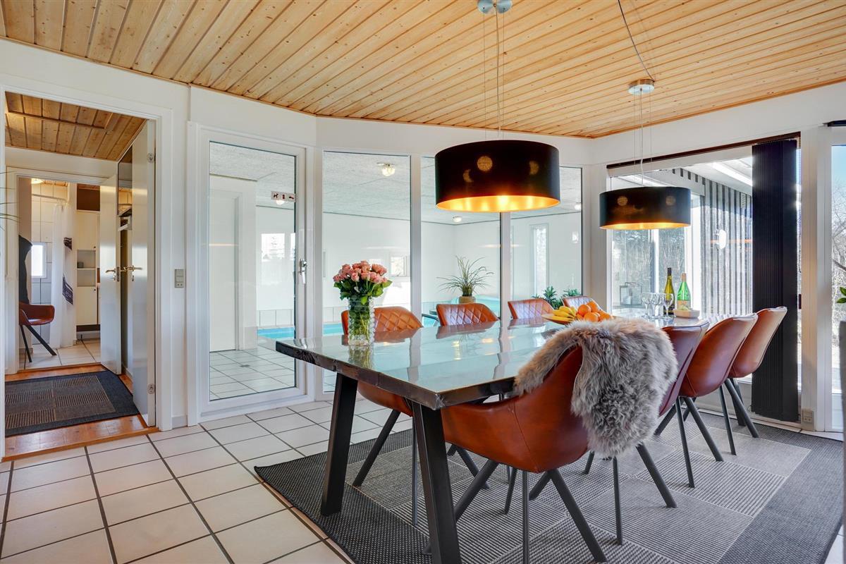 Goed onderhouden en mooi ingericht houten vakantiehuis gelegen in een mooie, heuvelachtige omgeving. Veel activiteitsmogelijkheden in de omgeving, zoals wandelen, vissen, surfen en zwemmen. Verder is het niet ver naar een gezellige jachthaven, winkelmogelijkheden en diverse, grotere plaatsen. Het huis is licht en mooi ingericht met onder andere een zwembadgedeelte waar u kunt ravotten in het 20 m² grote zwembad. Het zwembad wordt verwarmd met een Wørmepumpe. Een groot raam vooraan tussen de woonkamer en het zwembad zorgt voor veel licht en zicht op uw badende kinderen. De woonkamer met houtkachel en flatscreen-tv is verbonden met de goed uitgeruste keuken, die is ingericht met alle huishoudelijke apparaten. Perfect vakantiehuis voor twee gezinnen.