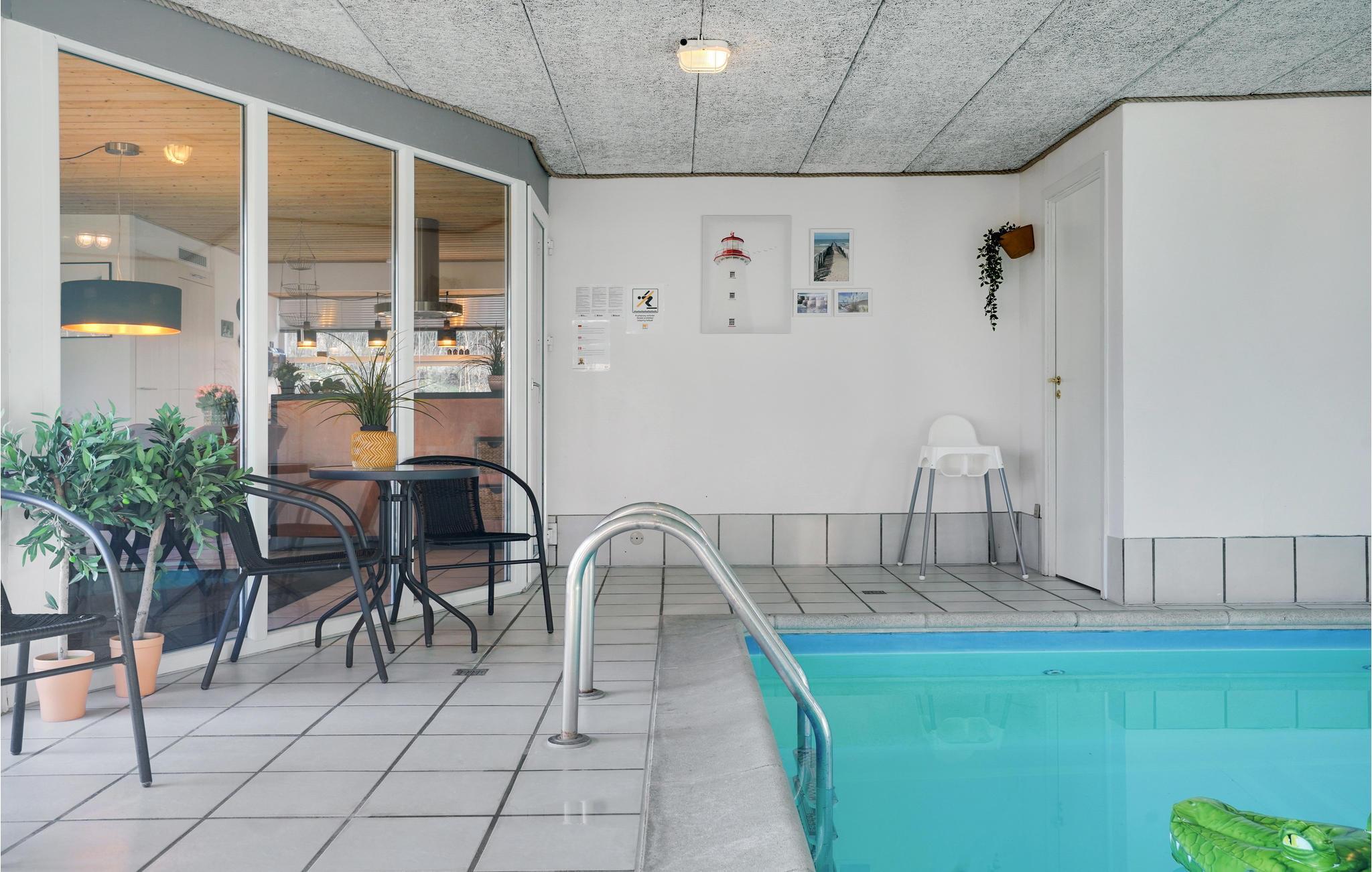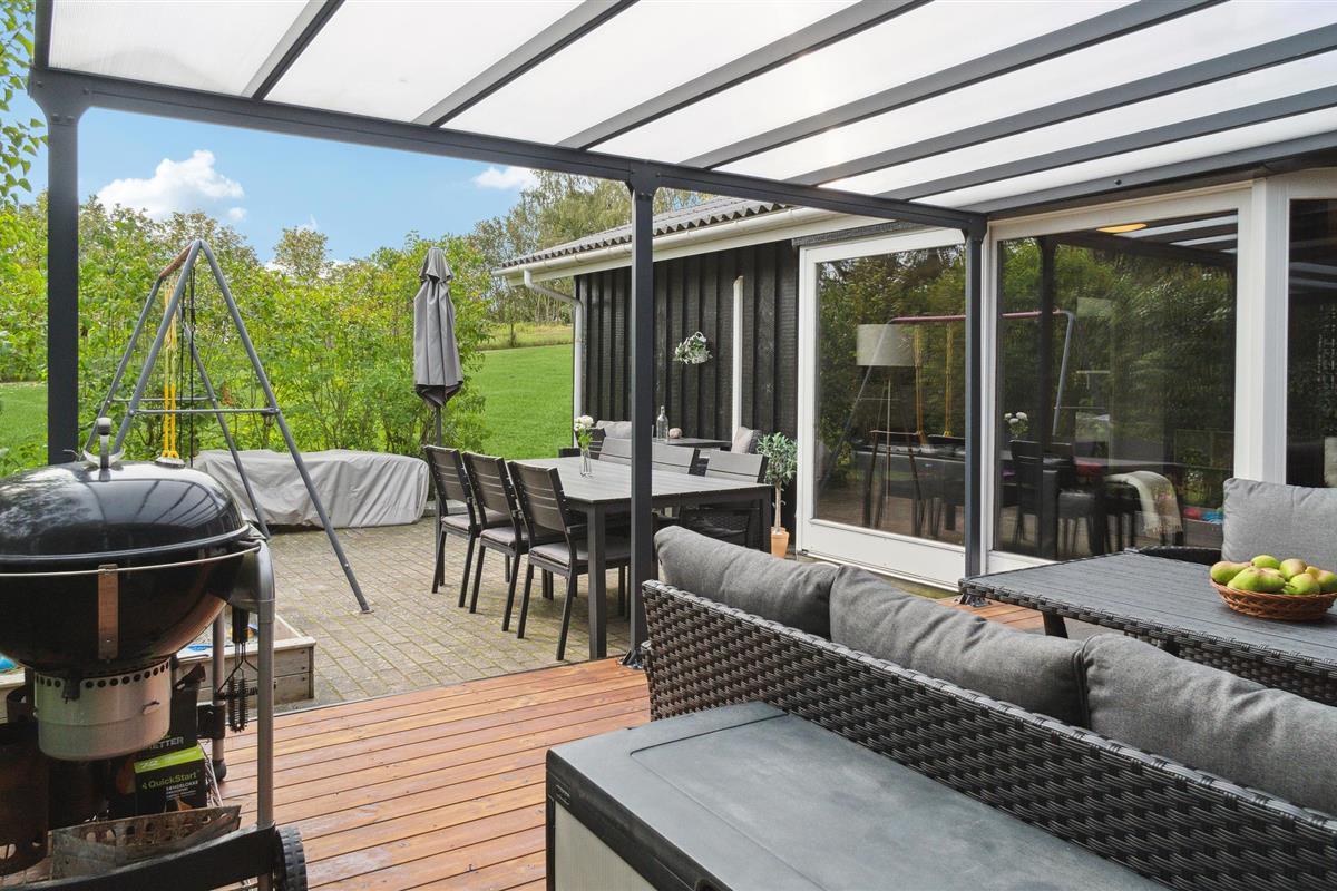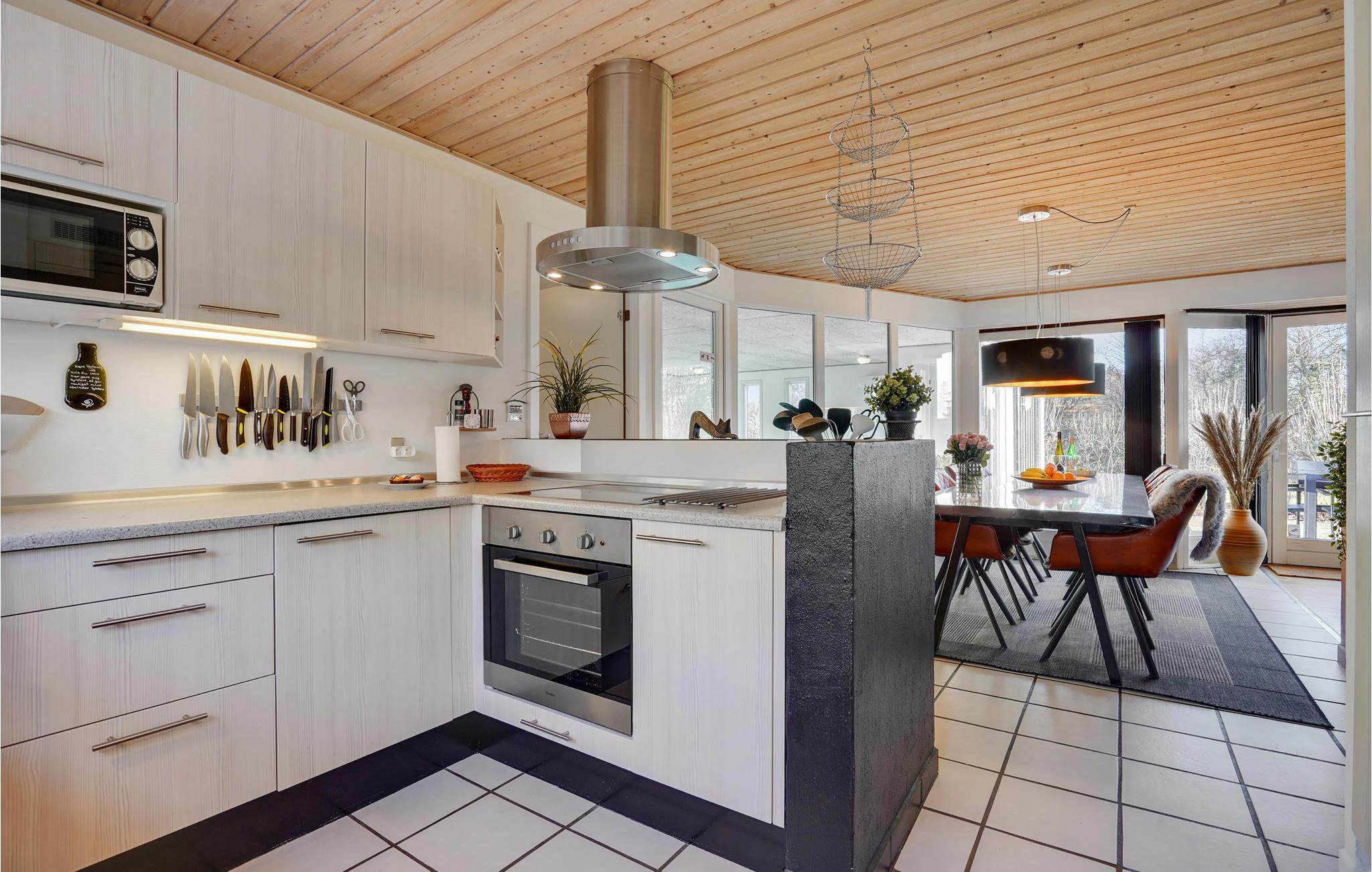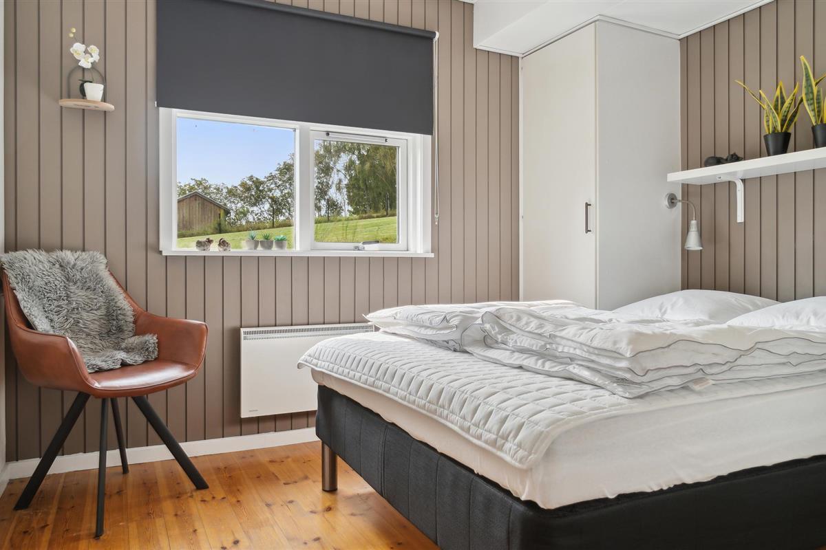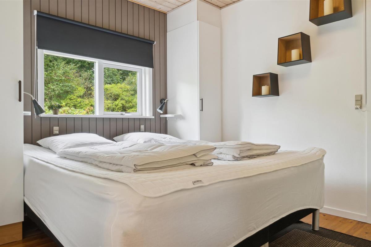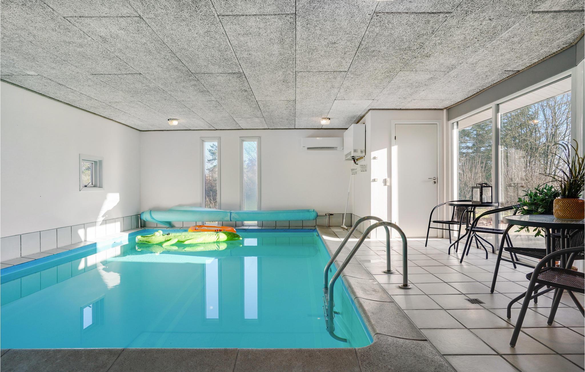 Goed onderhouden en mooi ingericht houten vakantiehuis gelegen in een mooie, heuvelachtige omgeving. Veel activiteitsmogelijkheden in de omgeving, zoals wandelen, vissen, surfen en zwemmen. Verder is het niet ver naar een gezellige jachthaven, winkelmogelijkheden en diverse, grotere plaatsen. Het huis is licht en mooi ingericht met onder andere een zwembadgedeelte waar u kunt ravotten in het 20 m² grote zwembad. Het zwembad wordt verwarmd met een Wørmepumpe. Een groot raam vooraan tussen de woonkamer en het zwembad zorgt voor veel licht en zicht op uw badende kinderen. De woonkamer met houtkachel en flatscreen-tv is verbonden met de goed uitgeruste keuken, die is ingericht met alle huishoudelijke apparaten. Perfect vakantiehuis voor twee gezinnen.