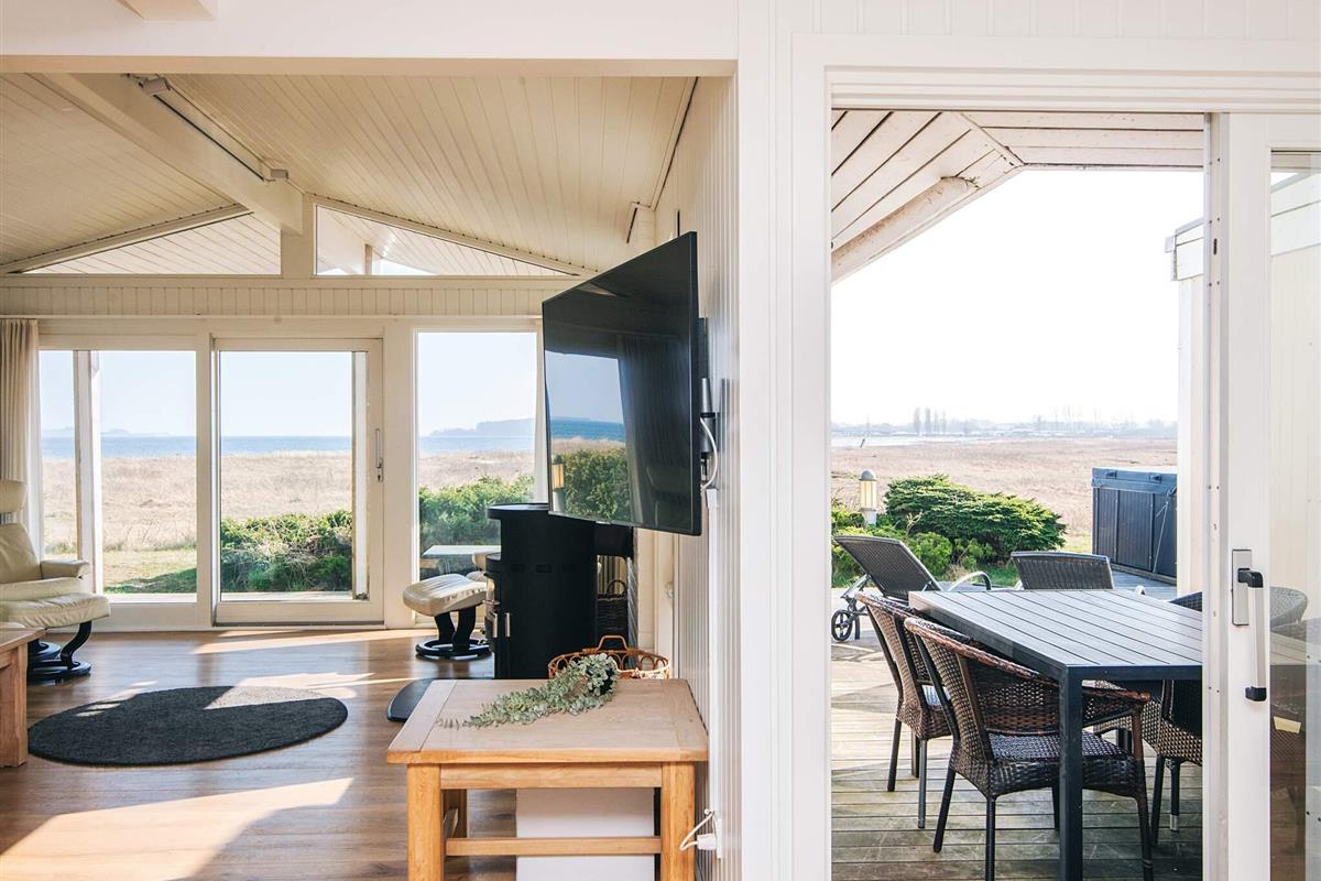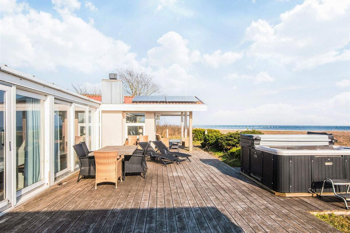 In Diernæs finden Sie dieses Ferienhaus mit Swimmingpool, Außenwhirlpool und Panoramablick auf das Wasser von Haus und Garten sowie erstklassiger Ausstattung. Von vier der geräumigen Schlafzimmer des Hauses wachen Sie jeden Tag mit direktem Blick auf das Wasser auf.