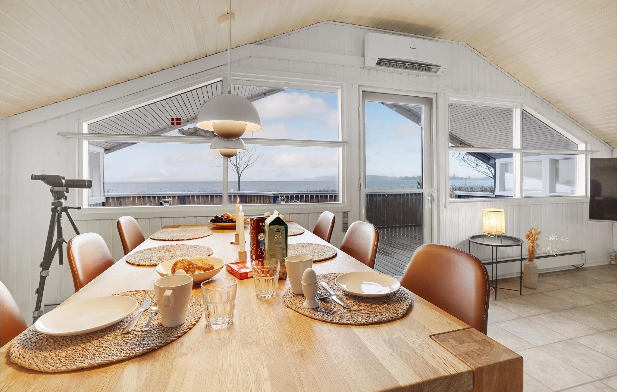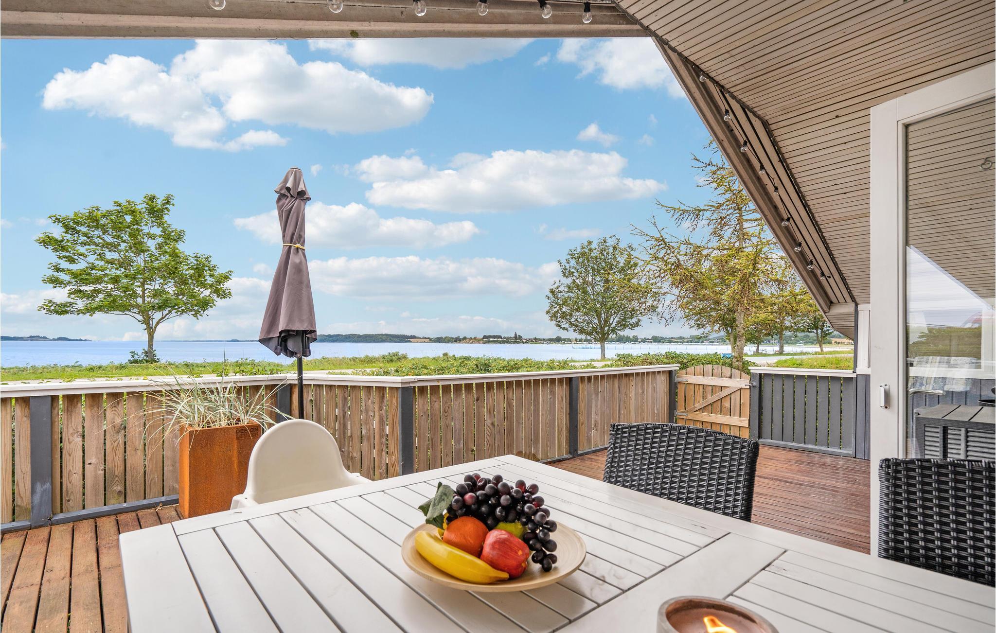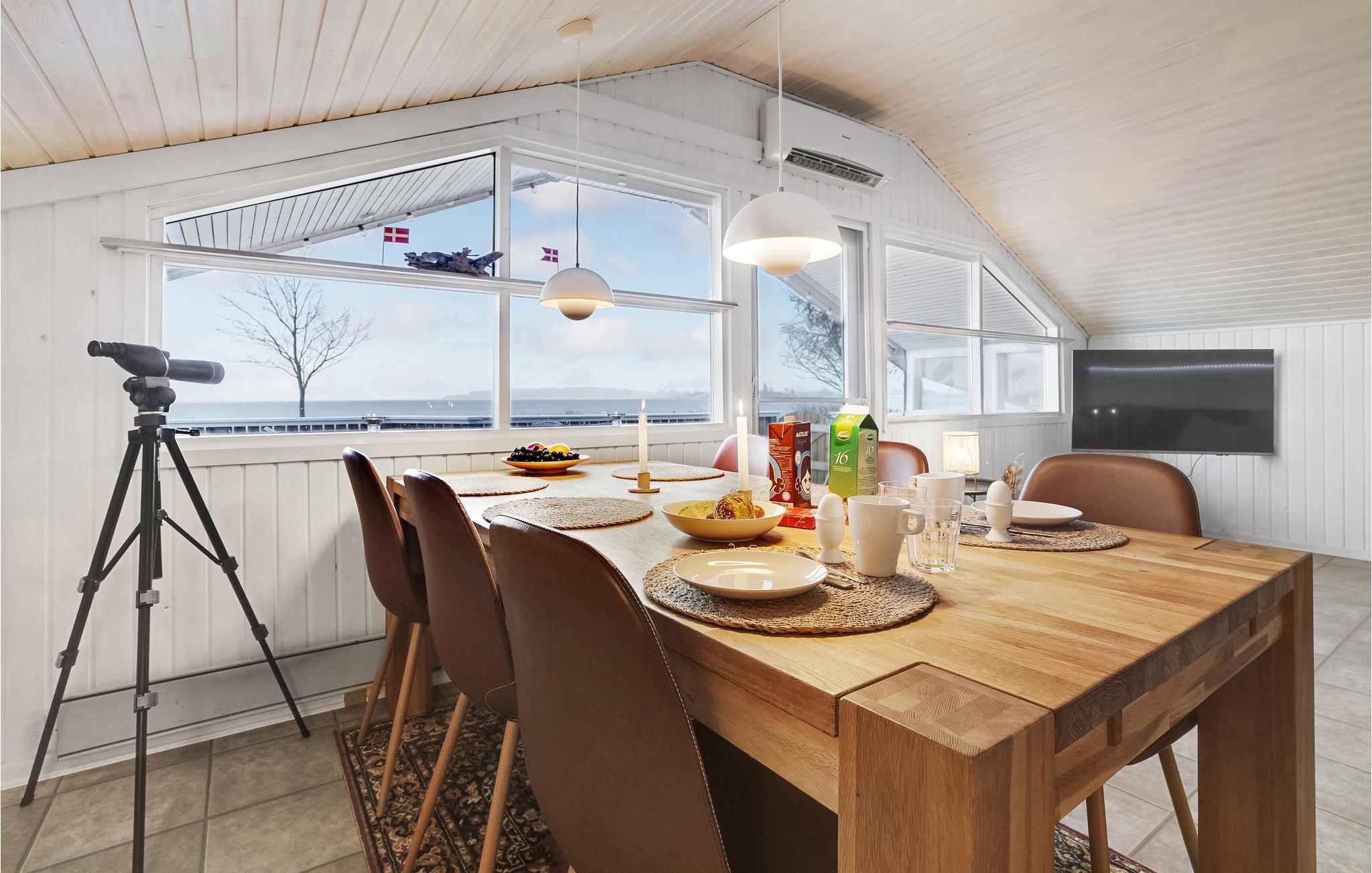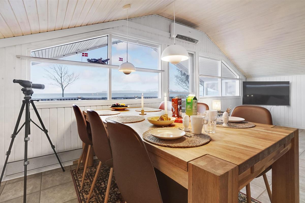 Met een fantastische ligging aan het strand van Diernæs en met een prachtig panoramisch uitzicht op de Kleine Belt heeft u hier de mogelijkheid voor een geweldige en onvergetelijke vakantie. U heeft een vrij uitzicht op de zee en het strand vanaf het gedeeltelijk overdekte terras. Er is geen erg drukke weg tussen het huis en de zee. De woonkamer van het huis is zo hoog dat u vanuit hier ook uitzicht heeft op de zee. De twee niveaus van het huis zijn met elkaar verbonden door zes treden.