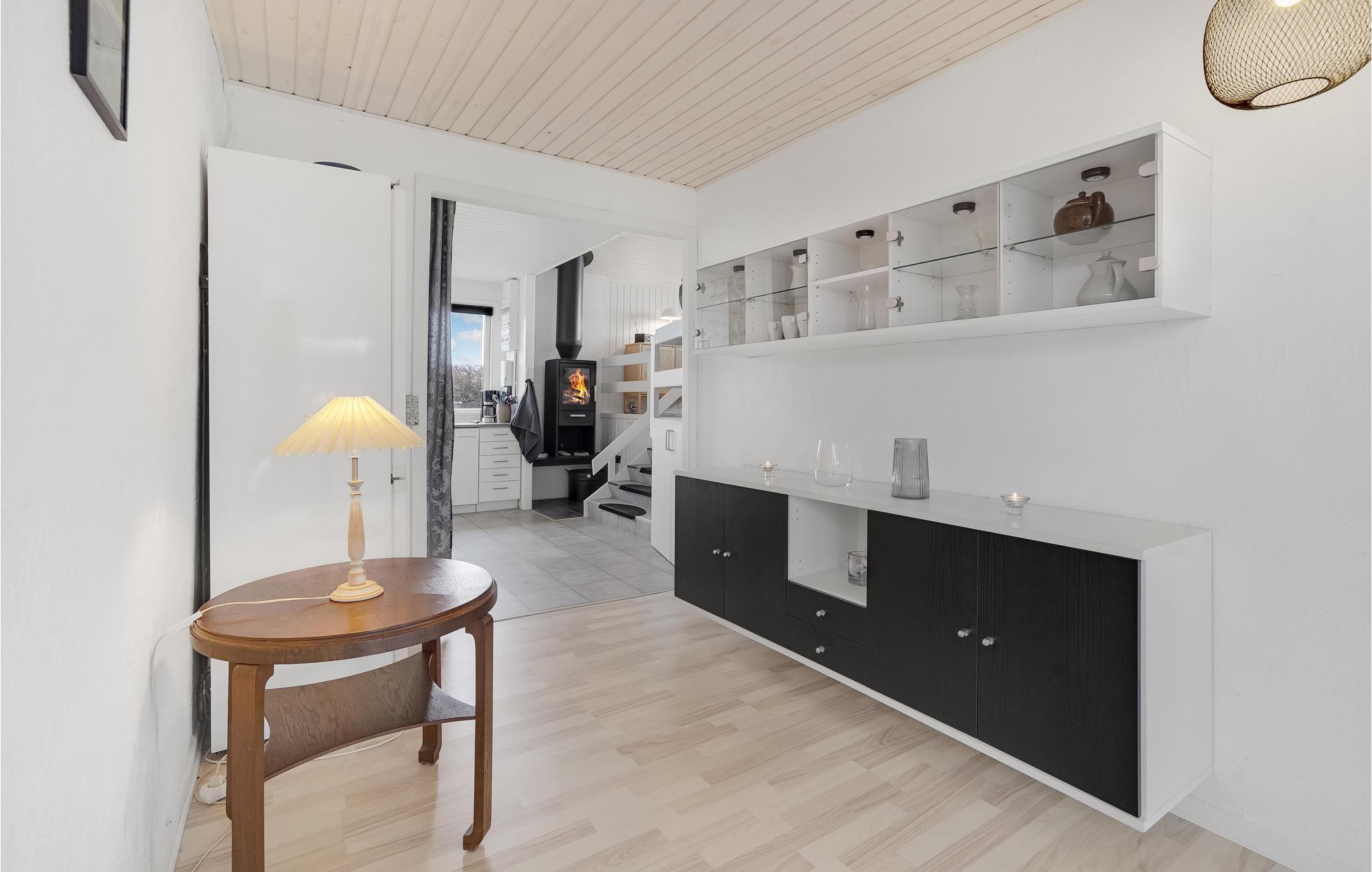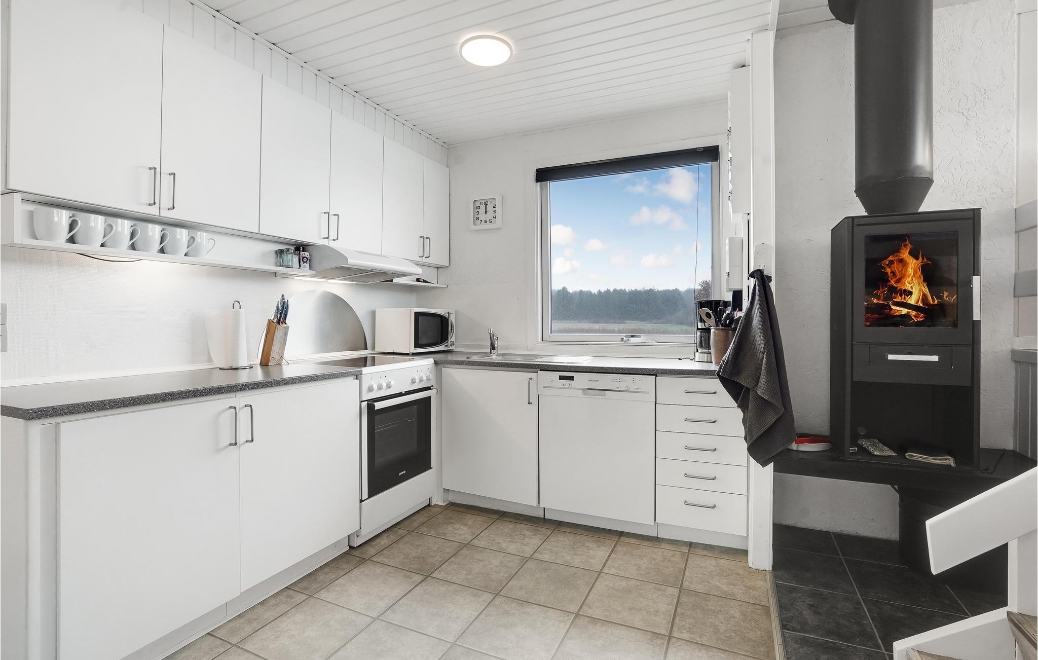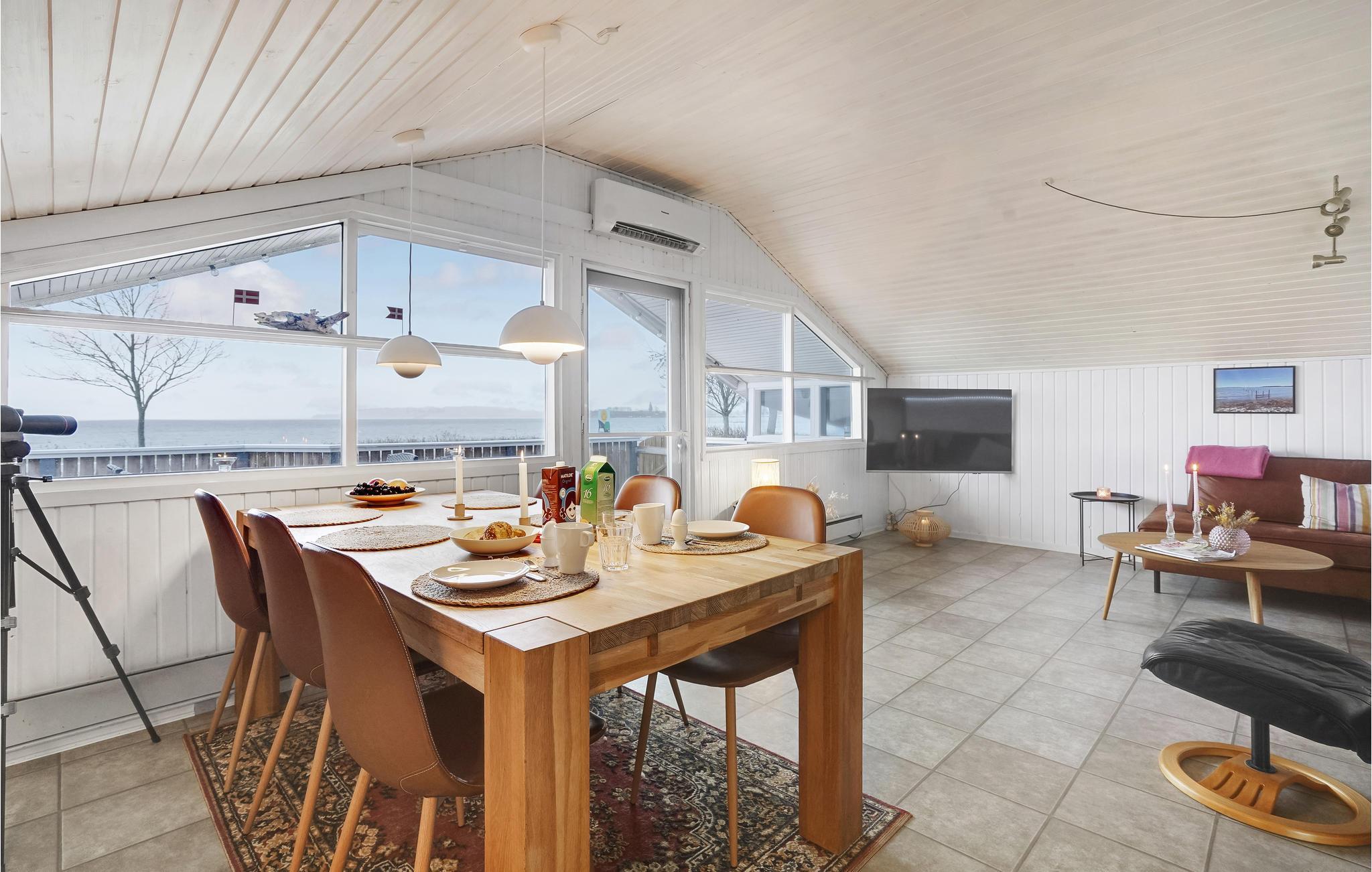 Met een fantastische ligging aan het strand van Diernæs en met een prachtig panoramisch uitzicht op de Kleine Belt heeft u hier de mogelijkheid voor een geweldige en onvergetelijke vakantie. U heeft een vrij uitzicht op de zee en het strand vanaf het gedeeltelijk overdekte terras. Er is geen erg drukke weg tussen het huis en de zee. De woonkamer van het huis is zo hoog dat u vanuit hier ook uitzicht heeft op de zee. De twee niveaus van het huis zijn met elkaar verbonden door zes treden.