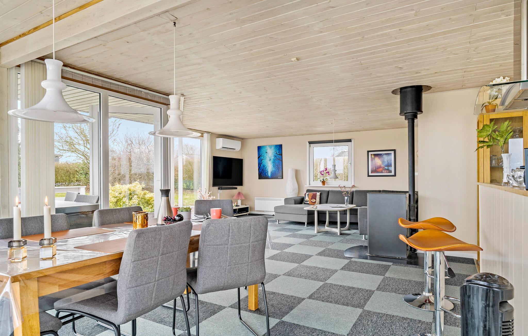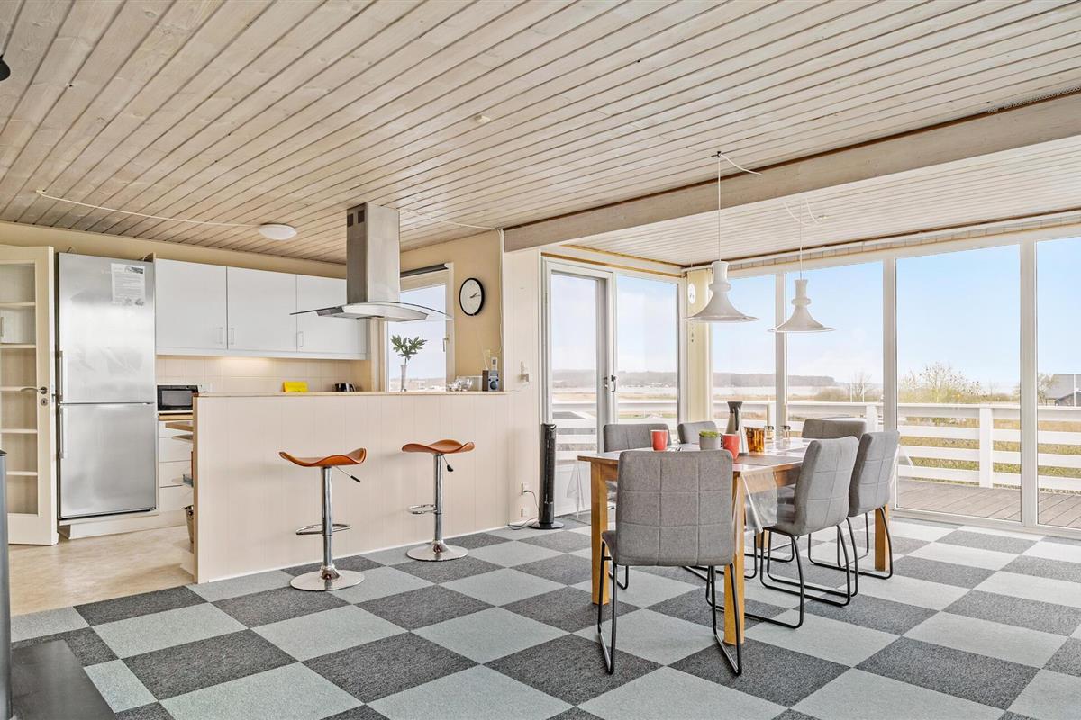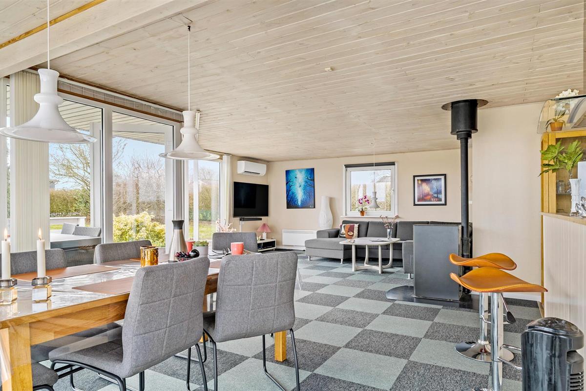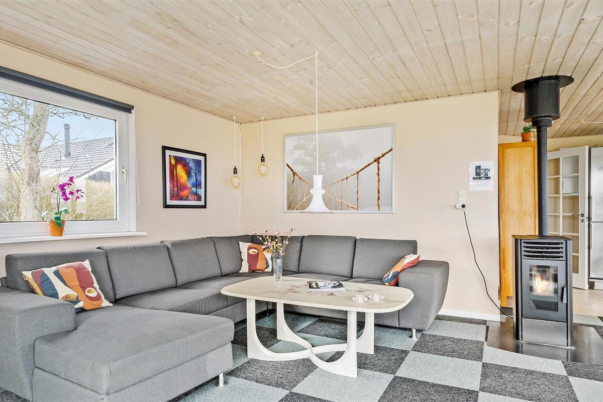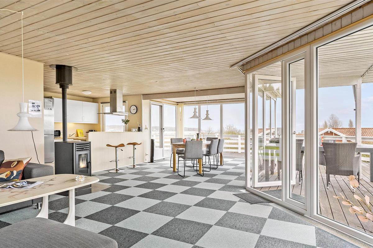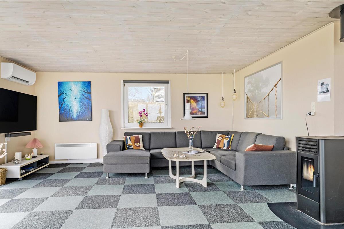 Door de hoge ligging van het vakantiehuis heeft u een prachtig uitzicht richting Vikær Strand. Geniet van het uitzicht op het water vanuit dit mooie vakantiehuis van binnen en het gedeeltelijk overdekte terras. Vanuit de woonkamer/keuken heeft u direct toegang tot het terras en verder tot de tuin. In het huis vindt u ook mooie slaapkamers en een grote badkamer. Ook in de tuin kunt u zich prima vermaken. U kunt ook genieten van een barbecue of twee. De verwarming van het huis is elektrisch, maar de primaire warmtebron is een houtpelletkachel in het woongedeelte (pellets kunnen in het huis worden gekocht). De garage is afgesloten en niet beschikbaar voor uw gebruik. Niet ver van het dorp ligt het grote meer Slivsø, een populaire verzamelplaats voor allerlei soorten vogels, van ijsvogels tot zeearenden.