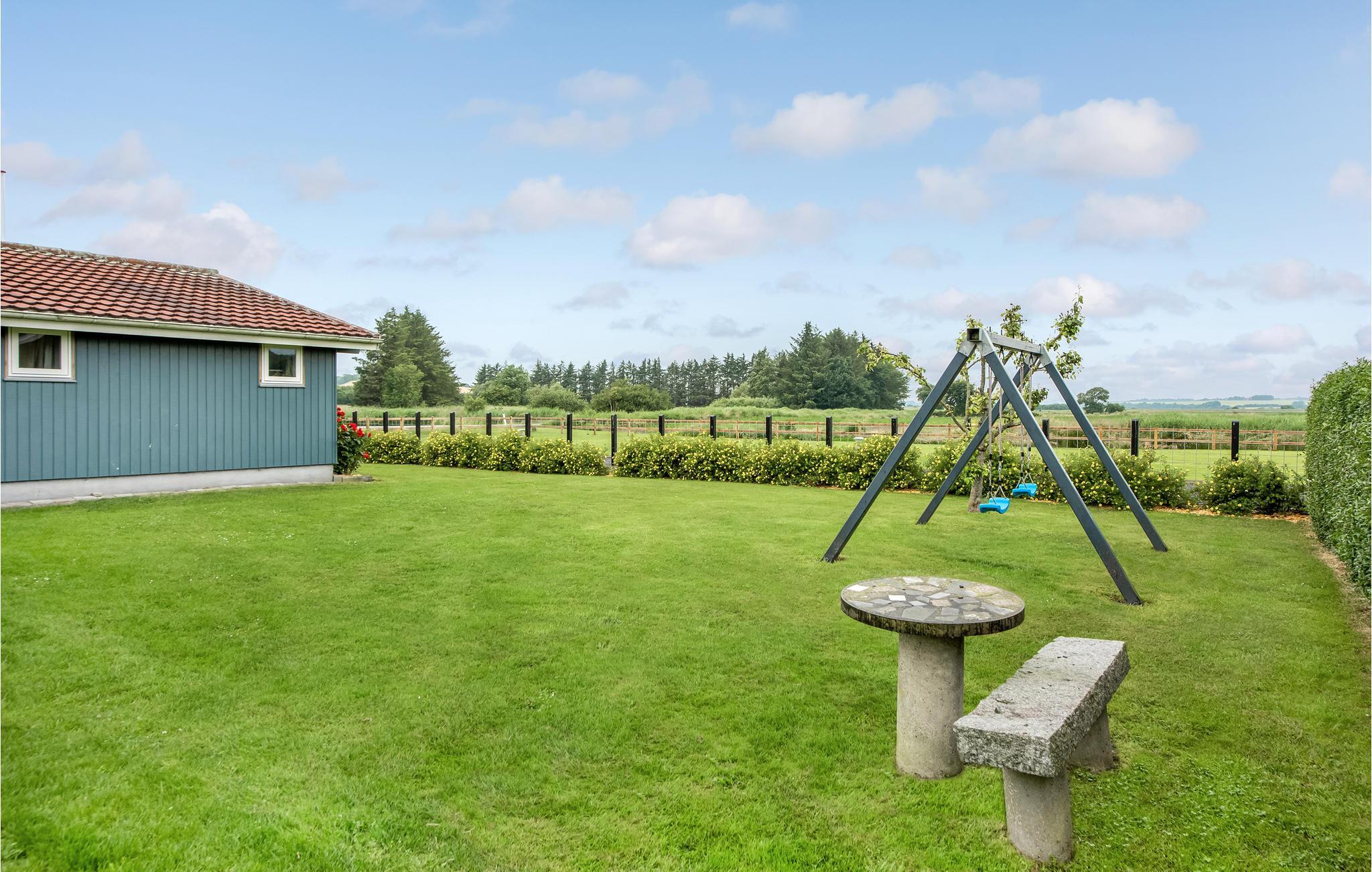 Gezellig vakantiehuis op Diernæs Strand, vlakbij het strand met moderne voorzieningen en tuin voor ontspanning.